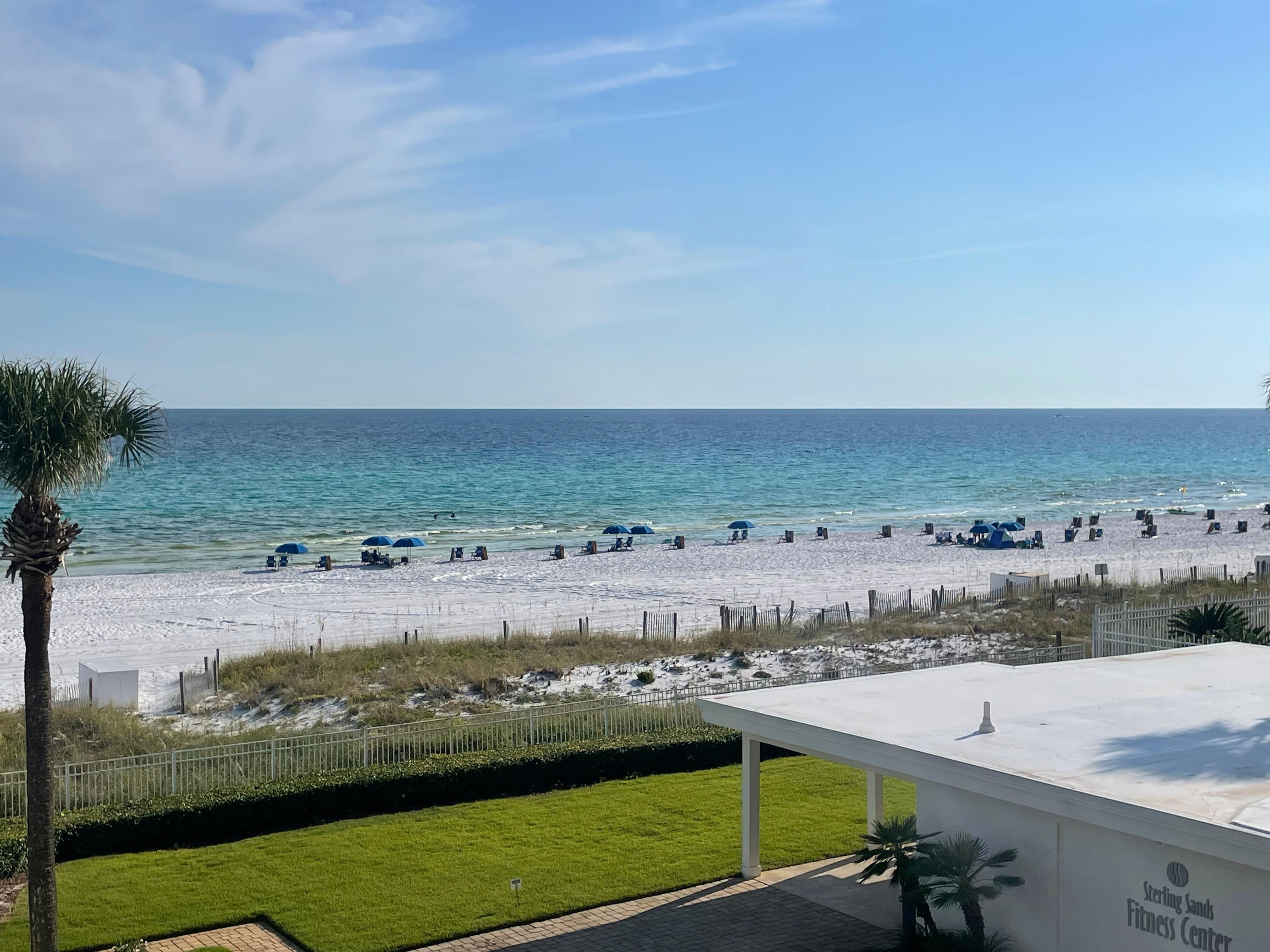 Sterling Sands, Unit 211 is DIRECTLY on the beach and gulf front! Assigned covered parking spot included. Sterling Sands is a stunning, oceanfront property in the heart of Destin, with one of the area’s largest and least crowded beach fronts. There are no streets to cross and the pool is also gulf front so you can enjoy the beautiful, breathtaking views of the gulf while relaxing at the pool. Enjoy the heated outdoor pool, hot tub, gas barbecue grills, and exercise room.