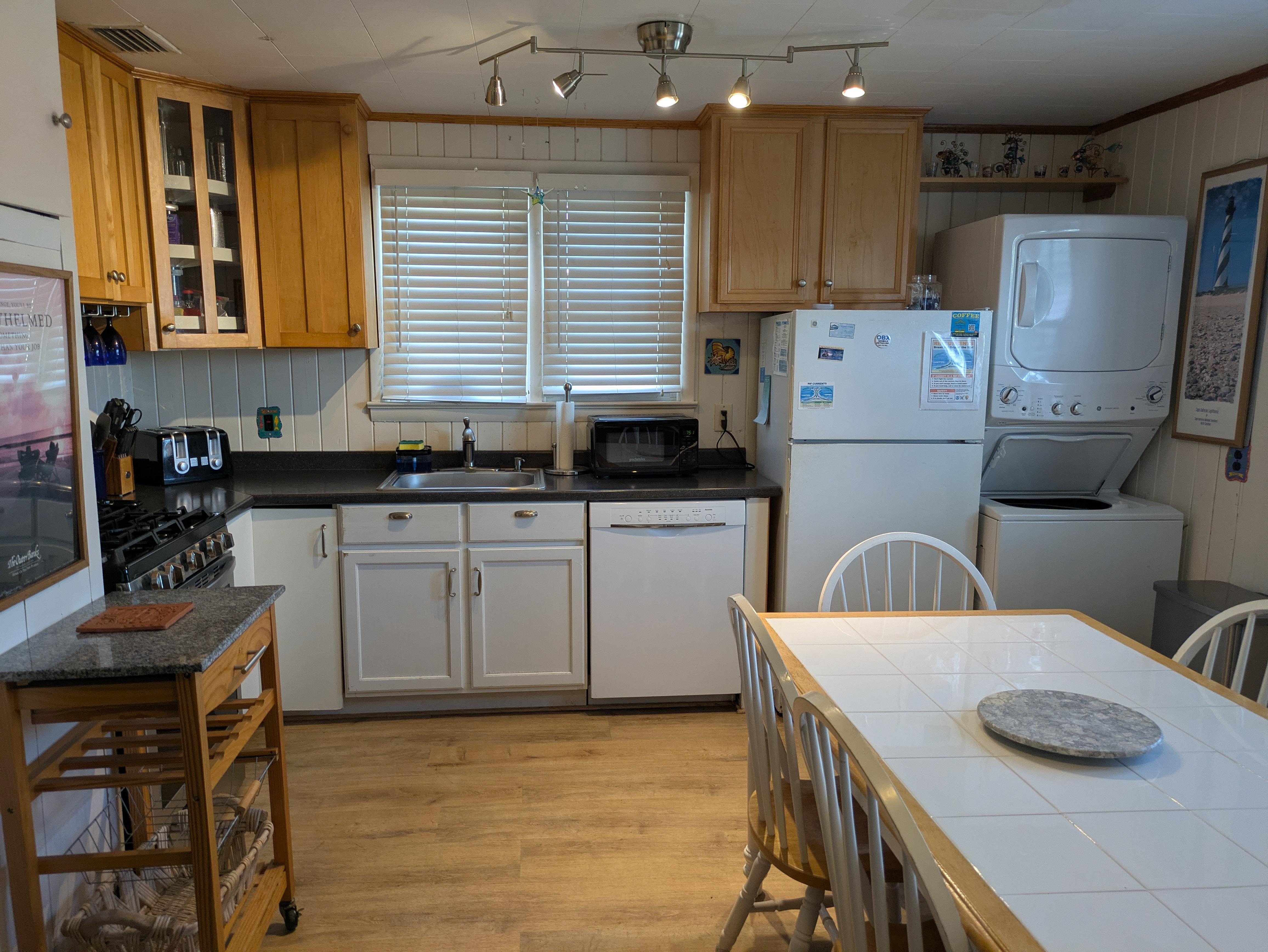 While not on the beach, the location of this house was the next best option. Loved the updated bath and even though there is only one and a half baths inside the home, the outside shower was good for the boys (LOL). The kitchen was well stocked with dishes, appliances, and gadgets. Only item I would add is a fly swatter :)