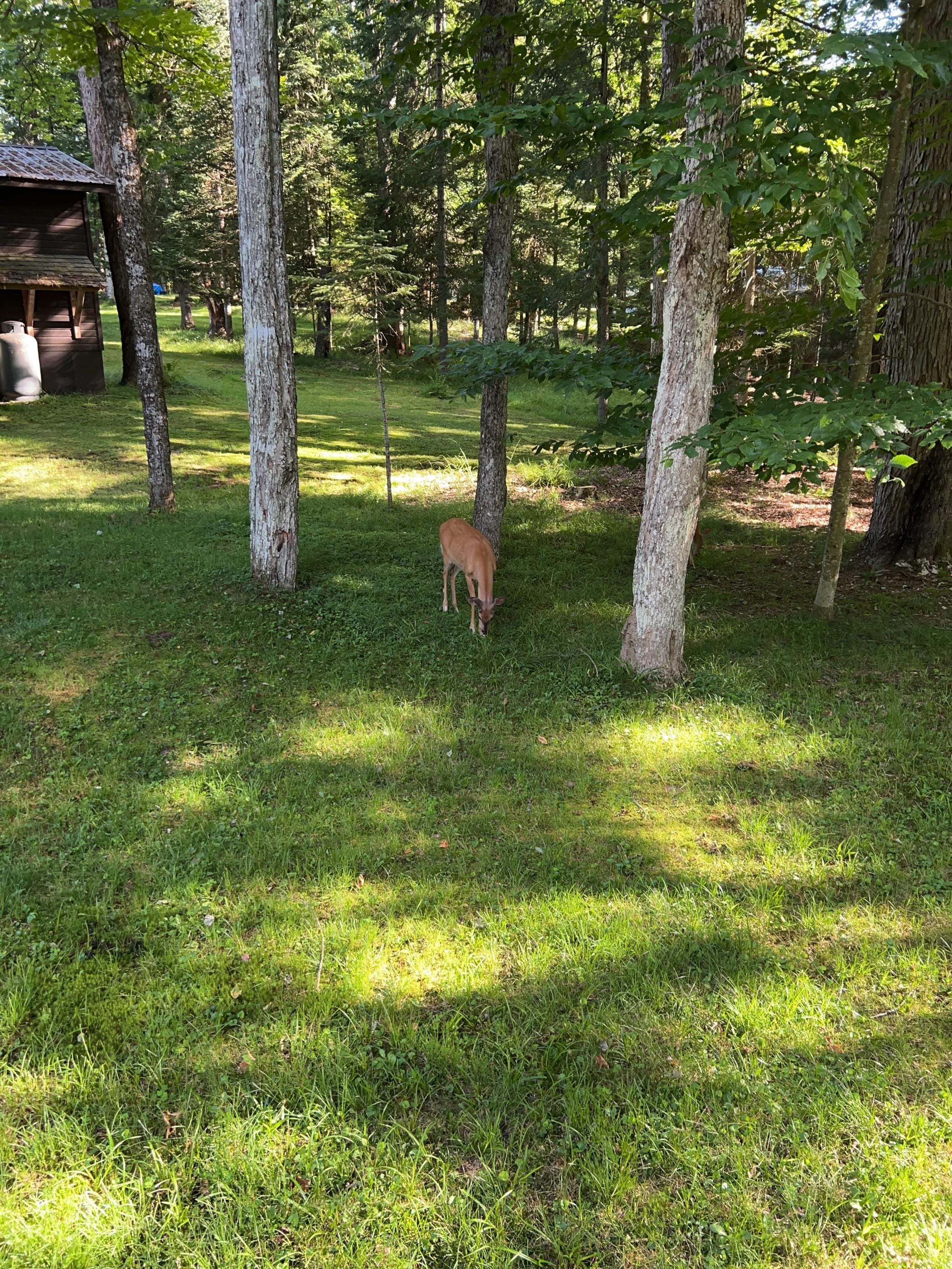 Outdoors: Big back porch with a table for 6. Cushions found in the patio deck box. Gas grill (propane) & wooded views. Parking enough for 2 bigger sized SUVs/trucks.