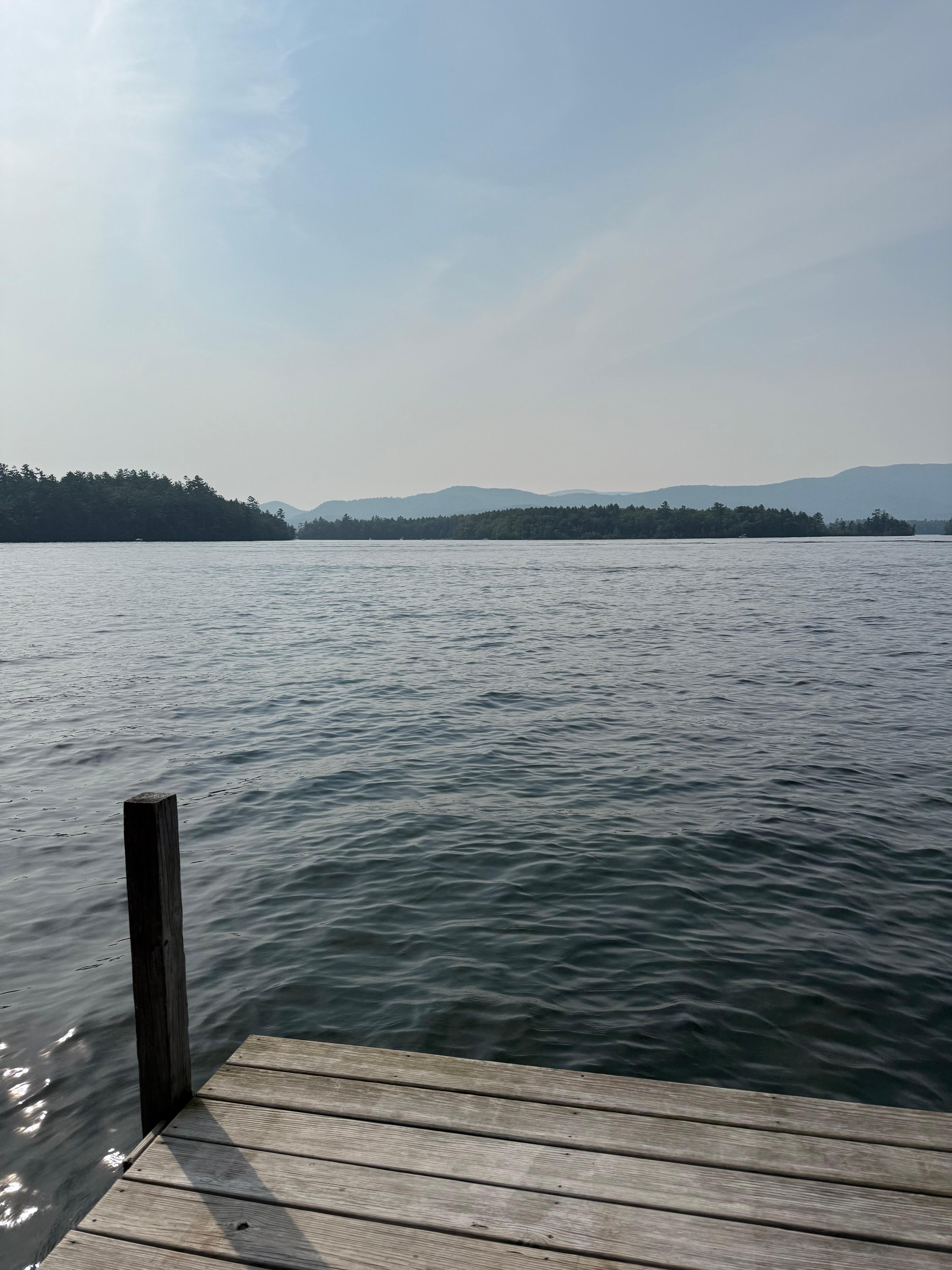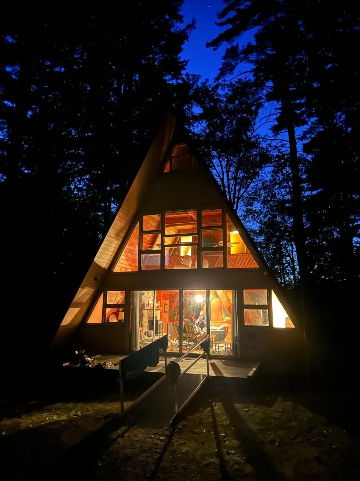 Mid-century A-frame on beautiful big Squam Lake. Located at the tip of Center Harbor Neck facing Rattlesnake. Lovely location for a quiet vacation in the woods, with both great morning light and stunning sunsets. Clear water with a sandy bottom and no leaf cover. Conservation land on each side. Two bedrooms up, daybeds on main. Full bath on each floor. Wi-fi installed 2020. Outdoor parking for 2-4 cars. 24' wooden dock with ladder and small beach area for walk-in to lake or to launch canoe/kayak/etc. Canoe and kayak available for use. Toaster oven, microwave, coffee maker, wood stove, full size range and fridge. Ceiling fans. This is a family summer "camp"' or cottage, full of charm and character. Fall asleep to the loons calling on the lake. Enjoy the breezes from the lake and the whisper of the woods. We are "at the end of the road", so come and enjoy the peace and quiet!
