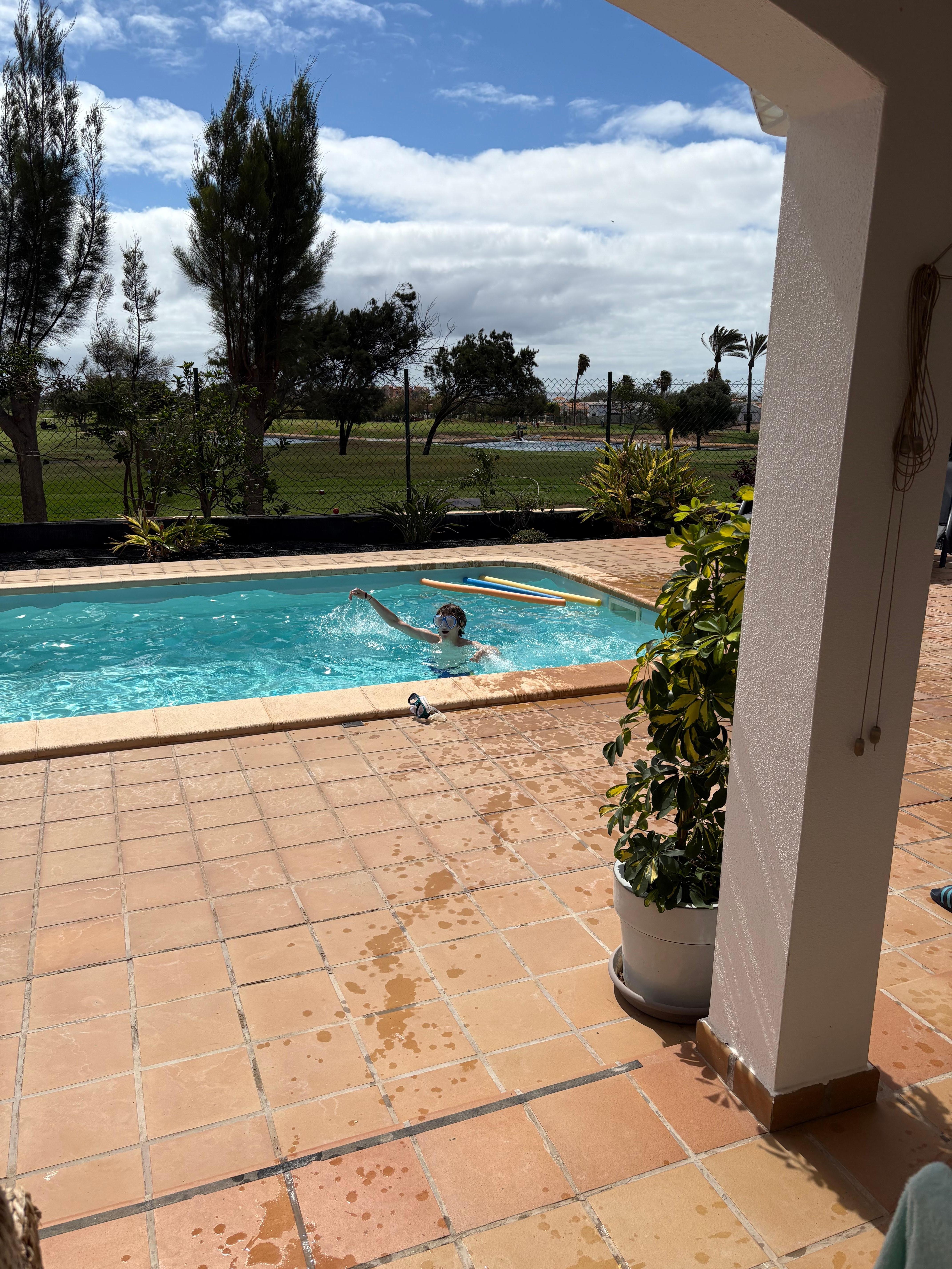 Villa Julaga is located ten minutes by car from the airport of Fuerteventura, located in an urbanization of villas that share a privileged situation in the same golf course of Caleta de Fuste (Fuerteventura Golf Club) with the luxury hotel 5 * Elba Palace Golf. A few minutes walking is the leisure area with a shopping center that has many shops, restaurants, large supermarket and parking. Next to it, several luxury hotels like SHERATON or ELBA. The beach, with golden sand, is located next to this commercial area that has a beautiful walk through which you can walk to the residential and entertainment area El Castillo with many restaurants and places for sports activities such as sailing on a catamaran, bathing with sea lions, jet skiing, water skiing, wind surfing, etc. This magnificent villa is located in a strategic position to know the island, halfway between the North and South areas that is worth visiting.