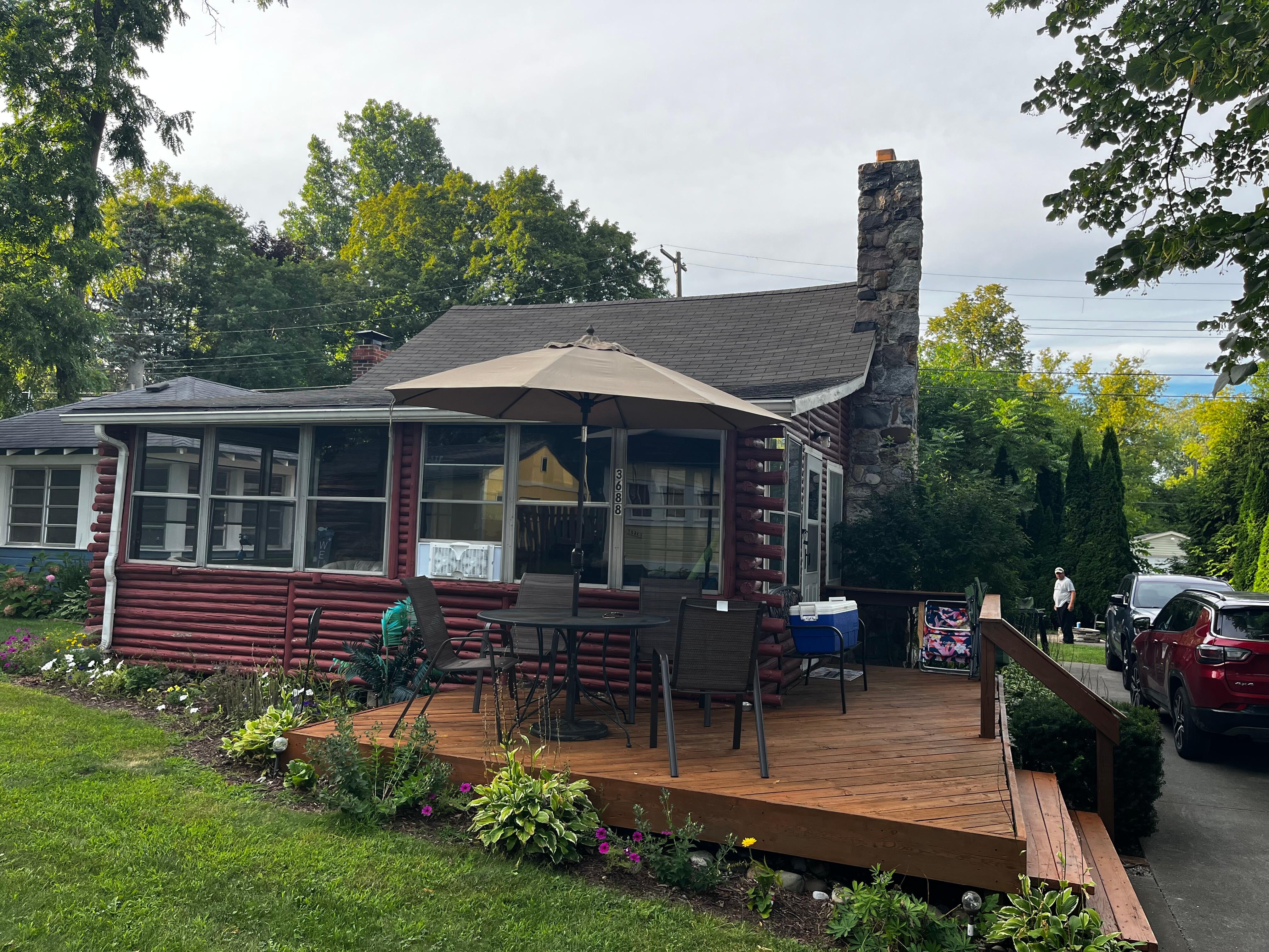 Air Conditioning and heat were added May 2022. Cozy log cabin inside and out and is on a private tree lined lane that leads to a wonderful beach on Lake Huron. It is a short 200 ft. stroll to get there. Fireplace to cozy up while watching your favorite movie. Full kitchen. Front deck with patio furniture to have coffee and read paper. Back deck has a gas BBQ grill to prepare family dinners. Large stone fireplace.