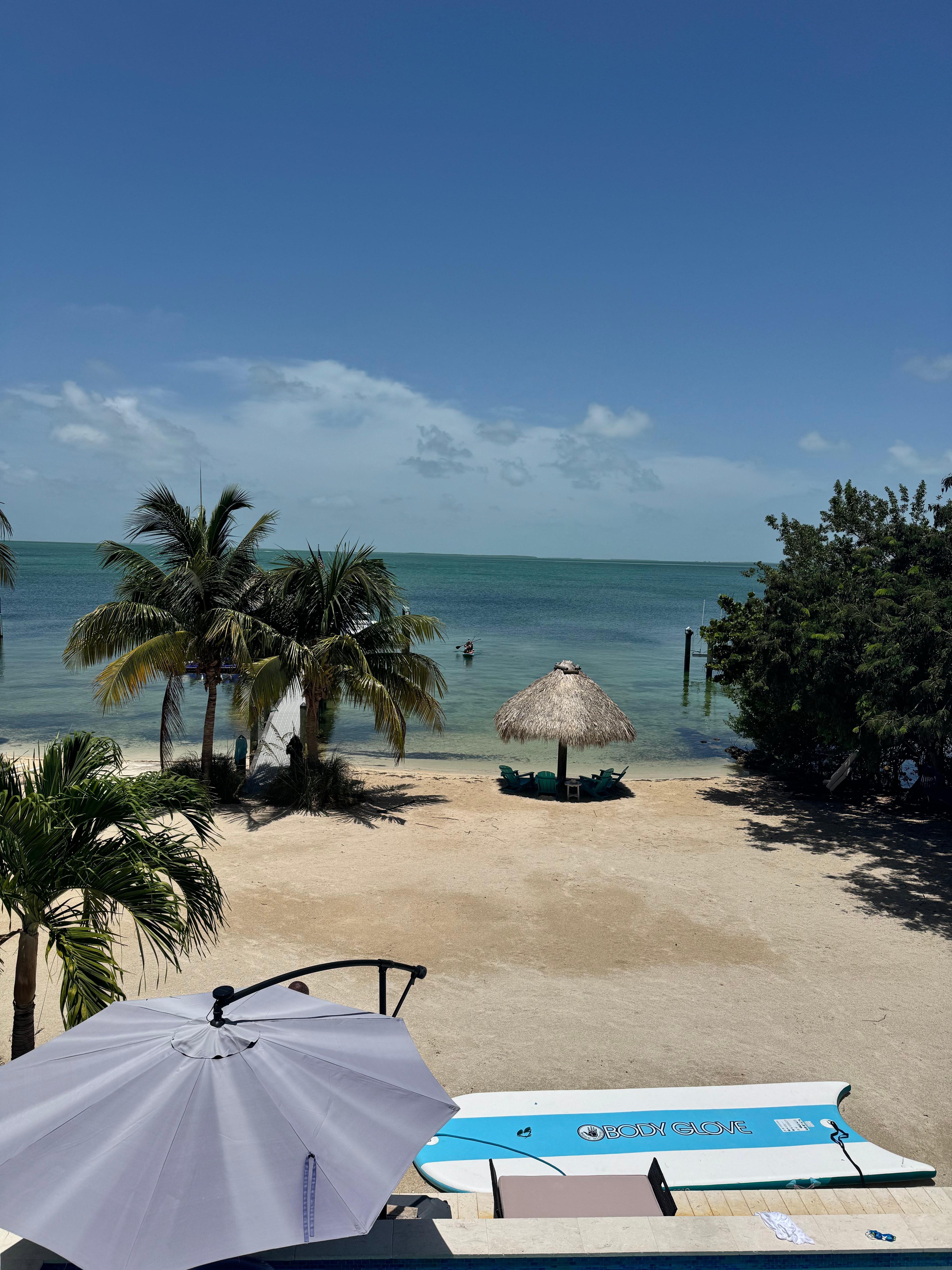 The home is located at mile marker 88.9 bayside in Islamorada. It's one of eight houses located on a mile long private driveway off US 1. It features a lush tropical hardwood hammock in the front of house with hundreds of orchids and rare tropical plants. A private white sandy beach with unobstructed open bay sunset views is the entire backyard. The Master Bedroom has a King size Canopy bed and bay view. The Master bath has a large jacuzzi tub for two overlooking the hammock and a large digital temperature controlled shower. Private throne room with newest Toto bidet/commode combo . Master has tropical ceiling fans and separate AC zone. Large TV with sound bar and subwoofer. Office Desk with multiple HDMI monitors and hp printer online. Guest room #2 has a queen size bed and private bath with hammock view and attached full bathroom. Large TV, AMP, sound bar and cable/amazon/Netflix all set up. Both are located on the 2nd floor. The other 3 Guest rooms are located on the 1st floor and all have queen size beds, hanging clothes closets, dressers, TV's/AMPS, HDMI hookups and blow-dryers. Two have pool/beach/bay views and one has a tropical hardwood hammock view. All are very cozy, peaceful and quiet. Also on the first floor there is a grand piano in the informal living room with a pull out sofa and coffee service bar. Tropical beach house décor throughout and first floor has imported shell and reef natural tile floor. The kitchen, dining and great room are on the 2nd floor and feature dark hardwood floors, tropical beach decorations and large palm leaf ceiling fans. The dining room has a large Stanley Coastal table seating 10-12 with a perfect view of the bay. There are pocket sliding glass doors on opposite sides of the house that open up completely to let the tropical breezes flow through the house. The living room is equipped with 5.1 high end audio with a 75" TV. The kitchen sink looks out an over-sized window to the bay and is stocked with beautiful dishes, touch on faucet, coffee maker with filters, toaster oven, small appliances and all things necessary to make any celebration easy and special. There is a center island with seating for four. Newest Samsung steam oven/microwave combo, and all other appliances are new and the stove top is inductive for ultra-fast and controlled cooking. The laundry room is on the 2nd floor with ultra-capacity washer and dryer. Outside: We are one of five bayside homes that has its own sandy beach in all of Islamorada. We have a private dock and a private boat ramp. Wade out into the crystal-clear bay waters and lounge on the 8 sturdy turquoise Adirondack chairs beachside and two on the dock. We have a private golf putting green/driving range, bocci ball sell, full size volley ball/badminton court, dodgeballs, frisbees, ping pong table and official darts! Brand new heated/chilled pool next to an outdoor gazebo with built in kitchen, wine and beer cooler, ice maker, full dining table and L shaped couch in front of real gas fireplace. High end audio and TV with all sources ready. Surprise speaker in the pool! Outdoor full bathroom with tropical hardwood countertop and one of a kind octopus sink and octopus tentacle handles on teak door. Customize the gazebo lighting with remote control. Propane and solar tiki torches flicker over the pool and beach for a romantic and tropical look. All the beach and pool toys your family needs are included. There is a large gas grill and big green egg for cooking and outdoor dining table for bay-side entertaining. Second grill on upstairs deck also available. Lounge on the hammock, hang out around the firepit and the circular lounge furniture on the beach. Around the front of the house is a artificial grass yard, and circular driveways. Take the bikes or walk through the dense private tropical hardwood hammock lanes. Check out the 120+ orchids growing on every tree, something is always blooming! This is the perfect home for private family vacations, family reunions or holidays away from home. Security cameras are OUTDOOR only and no audio is monitored.