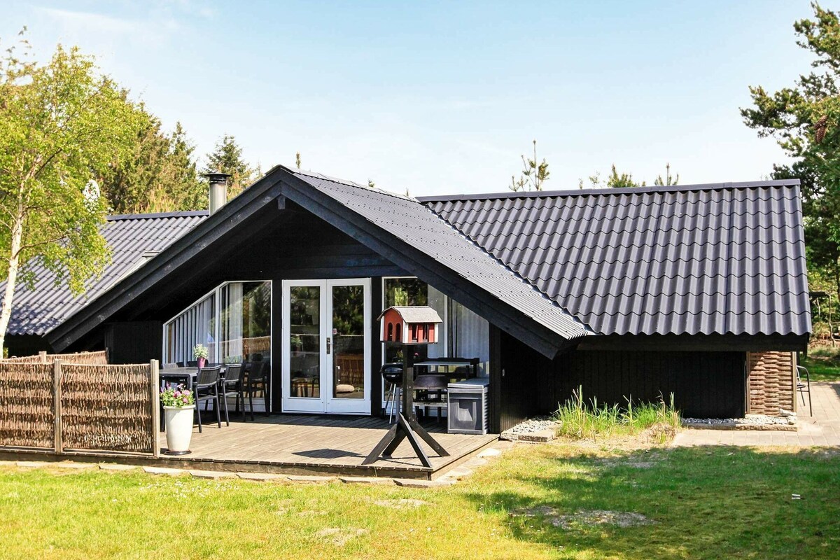 Well-kept holiday cottage in Saltum Strand with tasteful, personal furnishings located on a large, secluded natural plot in scenic surroundings. Open concept kitchen and living room, 3 bedrooms and a bathroom. The dining area has a skylight which helps makes this area bright and appealing. The wood-burning stove and air-to-air heat pump help ensure low energy costs. The terrace has both a grill and a portable bonfire. Level natural plot surrounded by plantings. Both swings, sandpit and slide for the children. No letting to youth groups.A refundable deposit might be charged closer to your check-in date. The security deposit ensures a smooth stay and covers any additional services or consumption charges.This deposit covers utilities consumed during your stay and any additional services that may be taken.The final amount will be adjusted based on actual meter readings, actual usage of extra services, and any remaining balance will be refunded within 21 days after checkout.This deposit simply acts as a prepayment for charges that you would anyways pay for, ensuring a seamless stay and check-out experience.