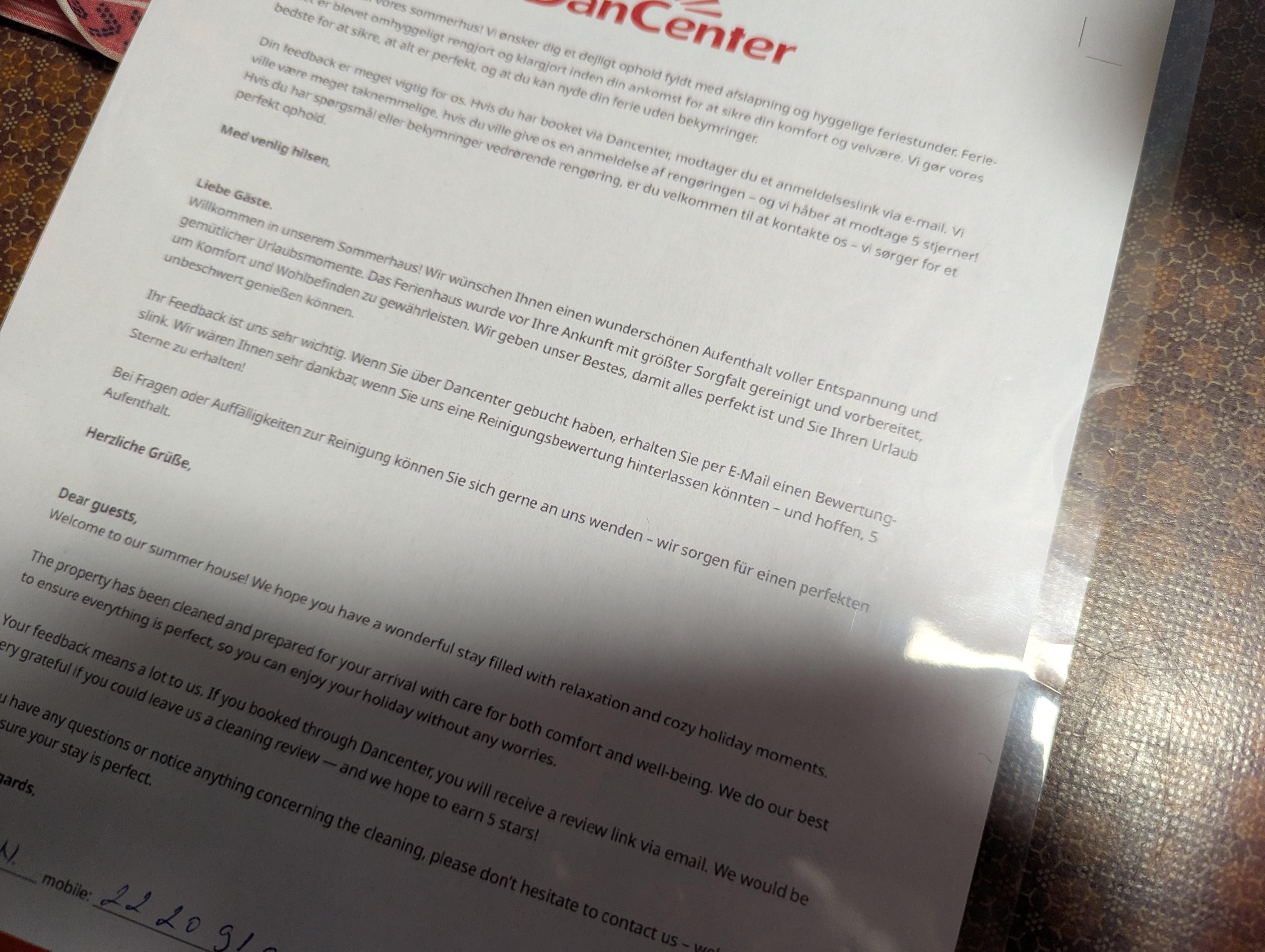 Final Cleaning: DKK 1079.00, or all cleaning needs to be done by yourself