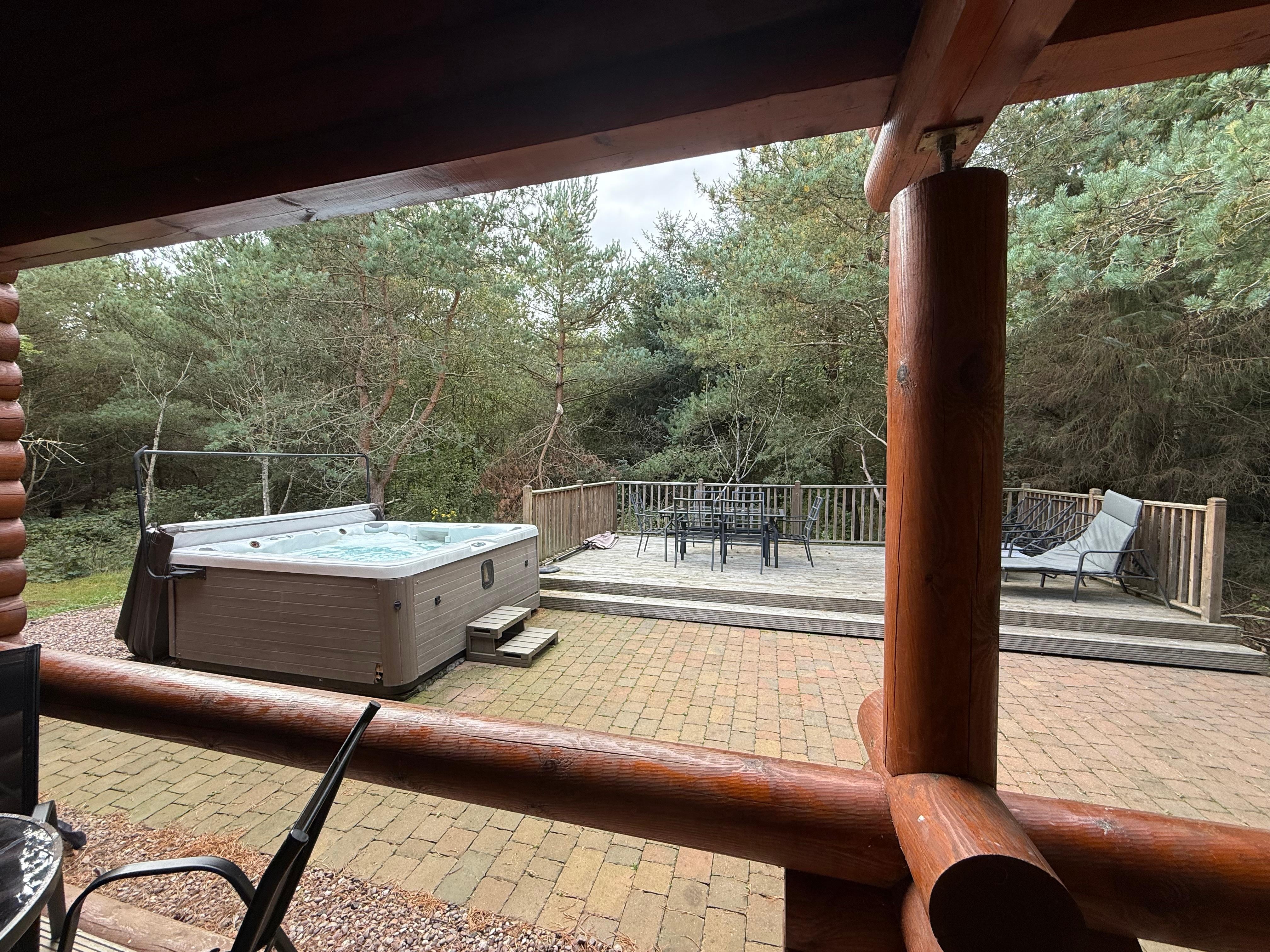 The veranda at the back has a seating to enjoy the peace and tranquillity of sunsets and starry nights. Why not have a stroll around the small lake then head back to relax in your own private hot tub.