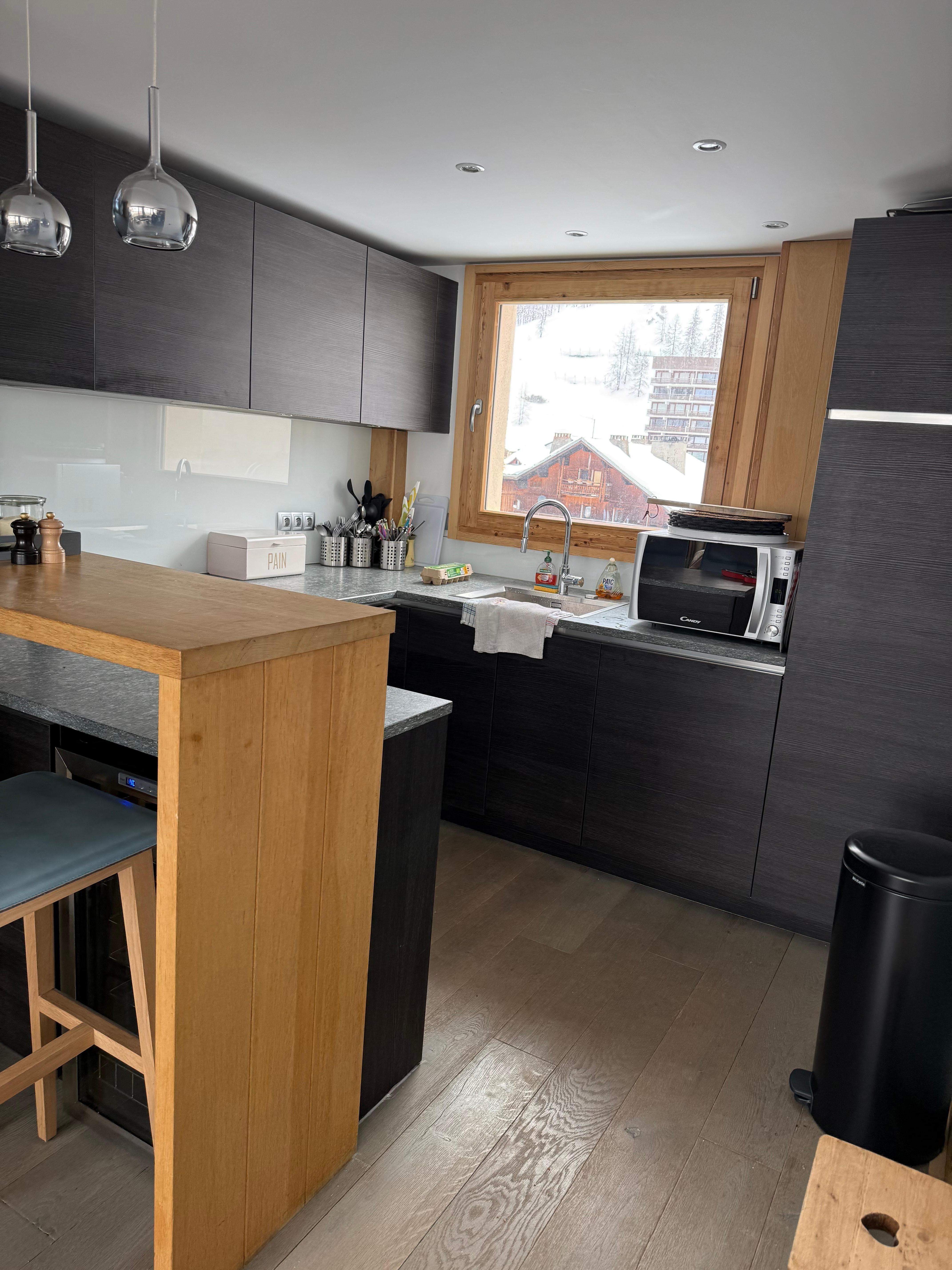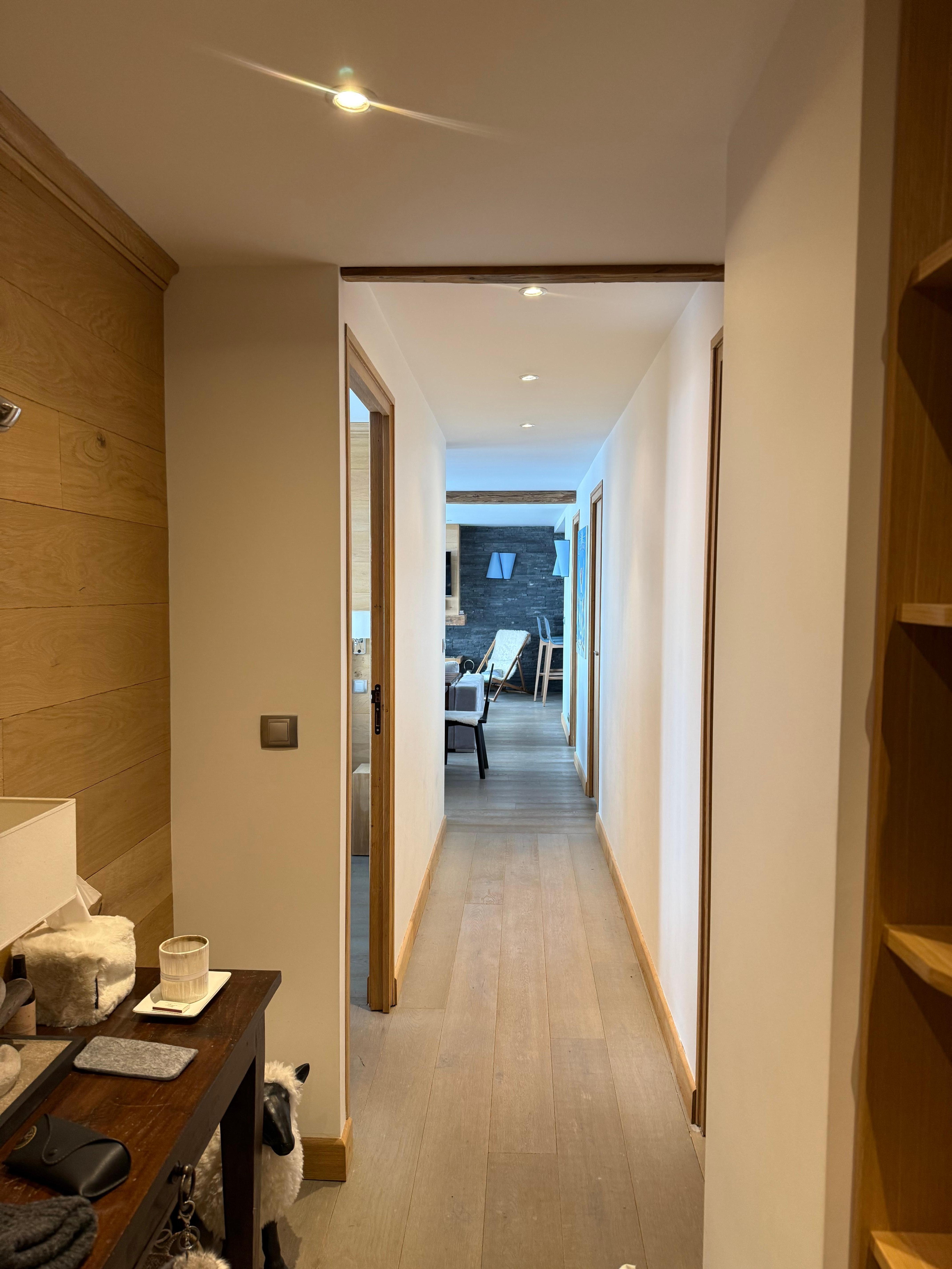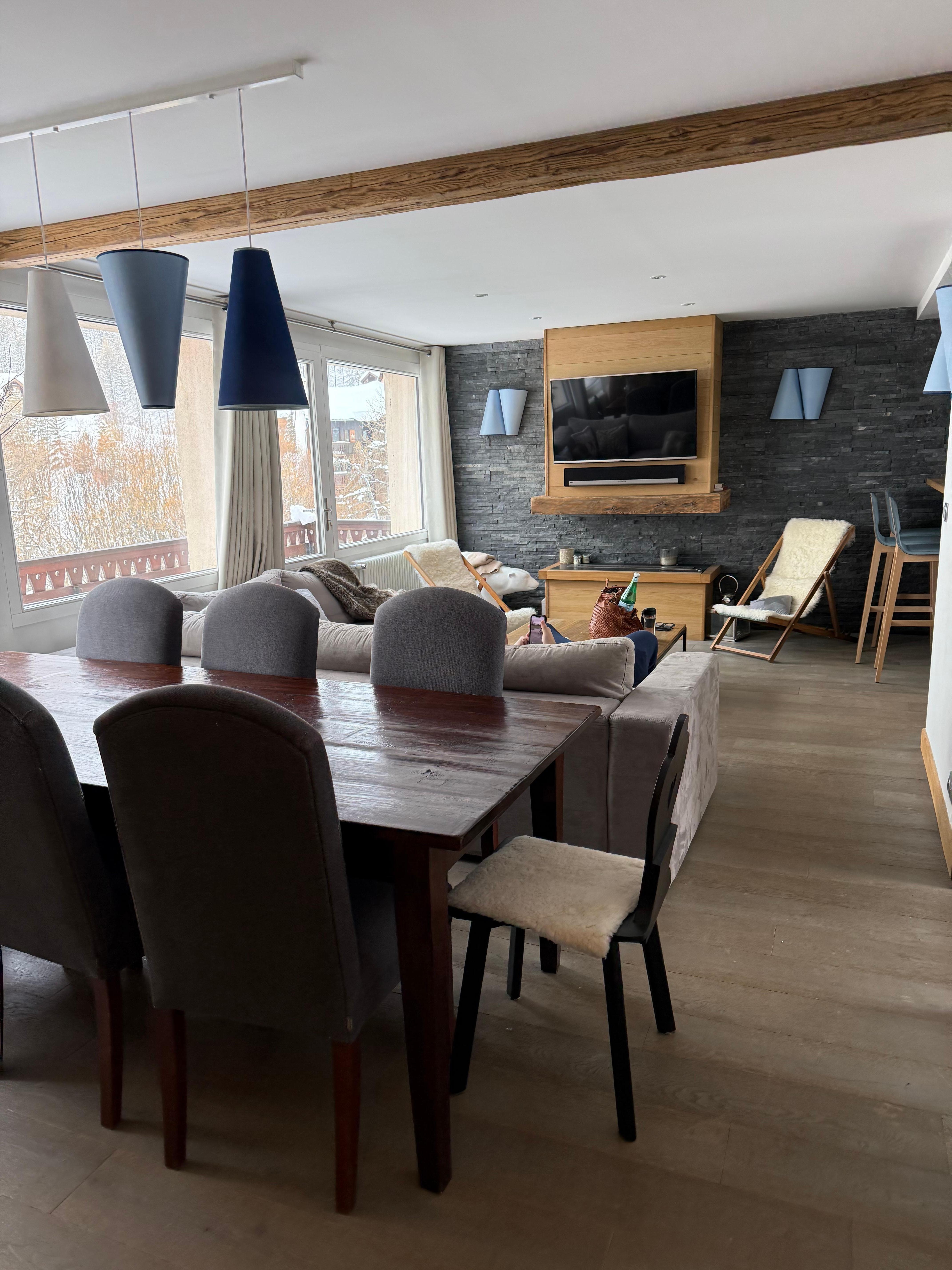 The apartment has undergone a complete renovation and benefits from a contemporary and high-end mountain decoration.