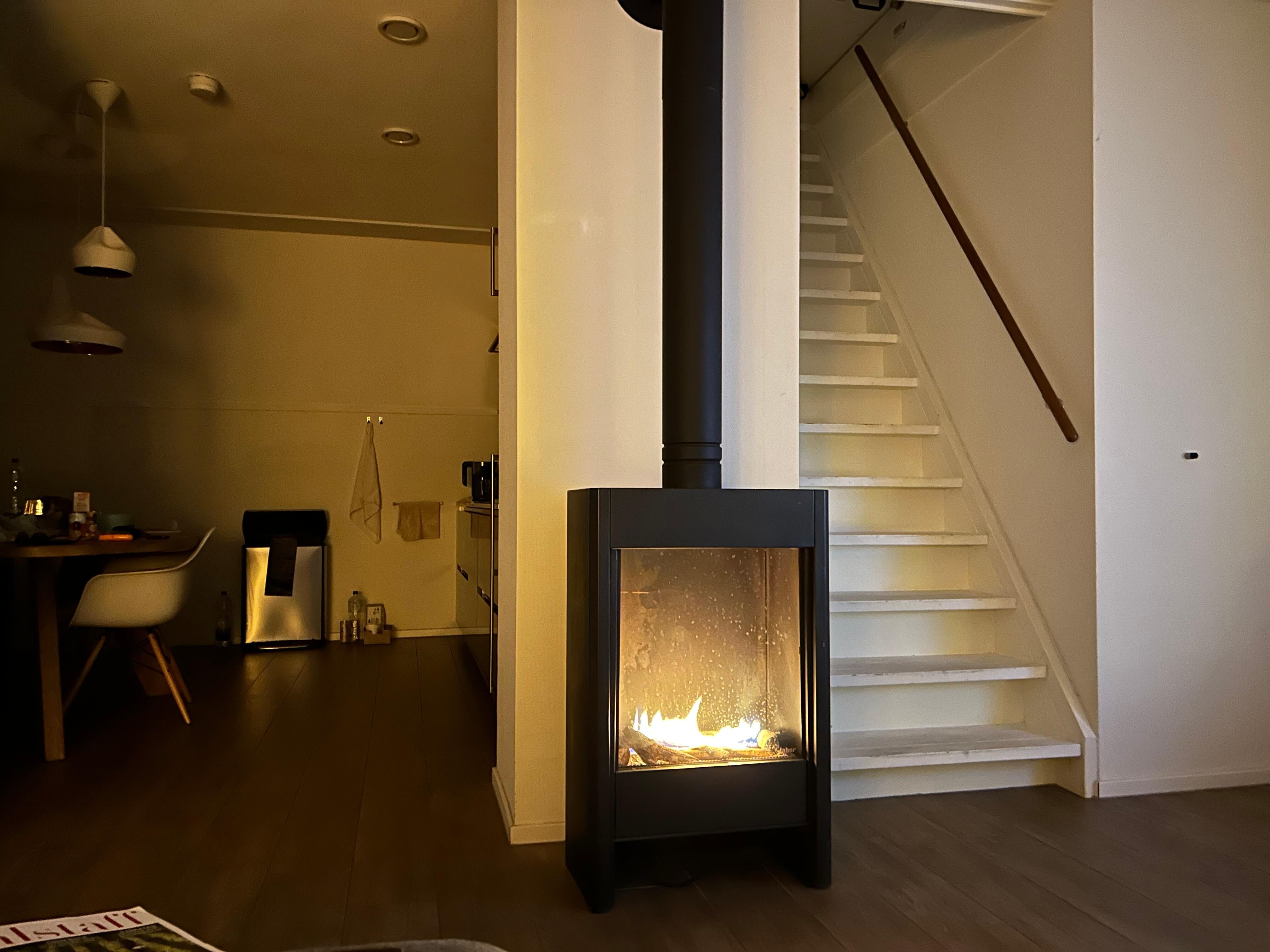 Layout: On the 1st floor: (hallway(toilet), Living room(TV, seating area, gas fireplace), Kitchen(dining table, cooker(gas), coffee machine, combination microwave, dishwasher, fridge-freezer), bedroom(double bed, TV, balcony), bedroom(double bed), bedroom(2x single bed), bathroom(shower, sun shower, washbasin, toilet))