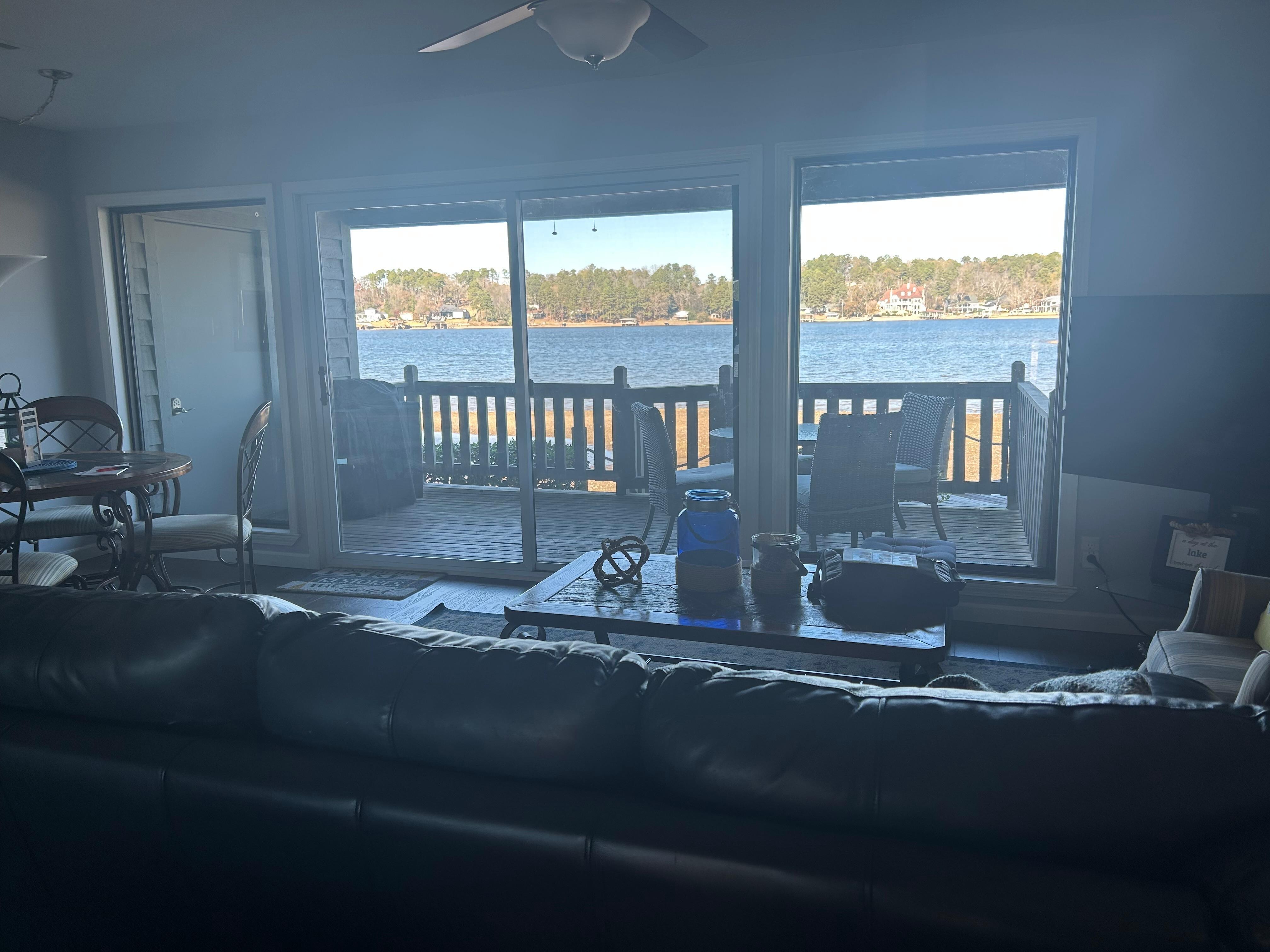 1 bedroom, 1 bath lakefront condo. Downstairs. No stairs to enter. Note: There are no window coverings in the den area so that guests can enjoy the panoramic view of the lake. It has one queen size bed. Deck has a comfortable table, chairs, and a electric grill to enjoy and dine over the lake view. This condo is in the building located close to the swimming pool. ***NON-SMOKING (NO SMOKING IN CONDO OR ON PORCH)***NO PETS ALLOWED***Due to the pet allergies of the owner while staying in their unit, support animals are not allowed. NO GAS OR CHARCOAL GRILLS ALLOWED. CHECK IN IS AT 4:00 p.m. and CHECK OUT IS AT 11:00 a.m.. Security surveillance devices are onsite and monitor the outside areas of the front and back doors only.