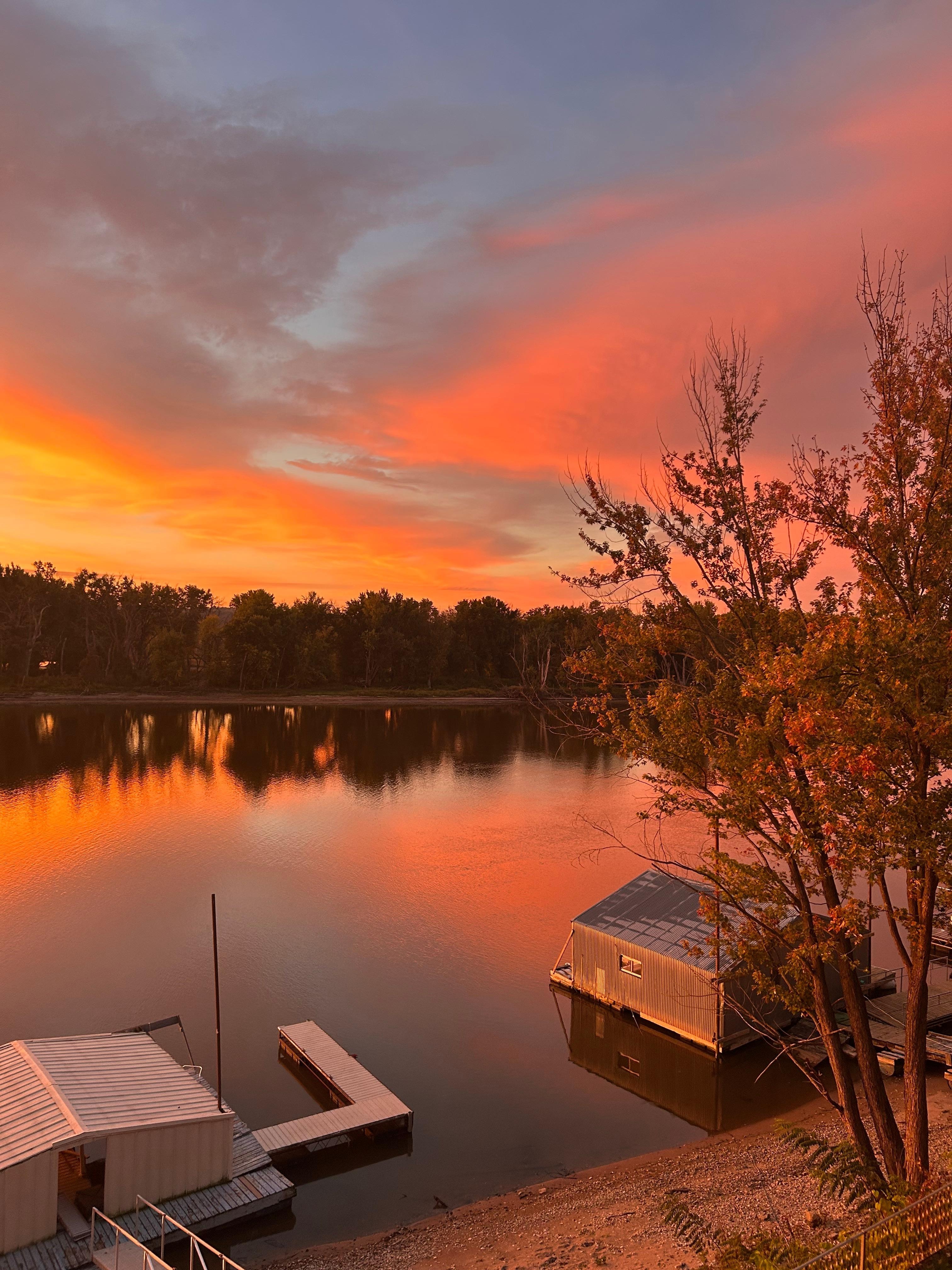 Access to the river via stairs offers two outdoor spots for boat parking and fishing (Iowa license required). Our large grass lot allows for parking of trailers and vehicles across the road during your stay.
