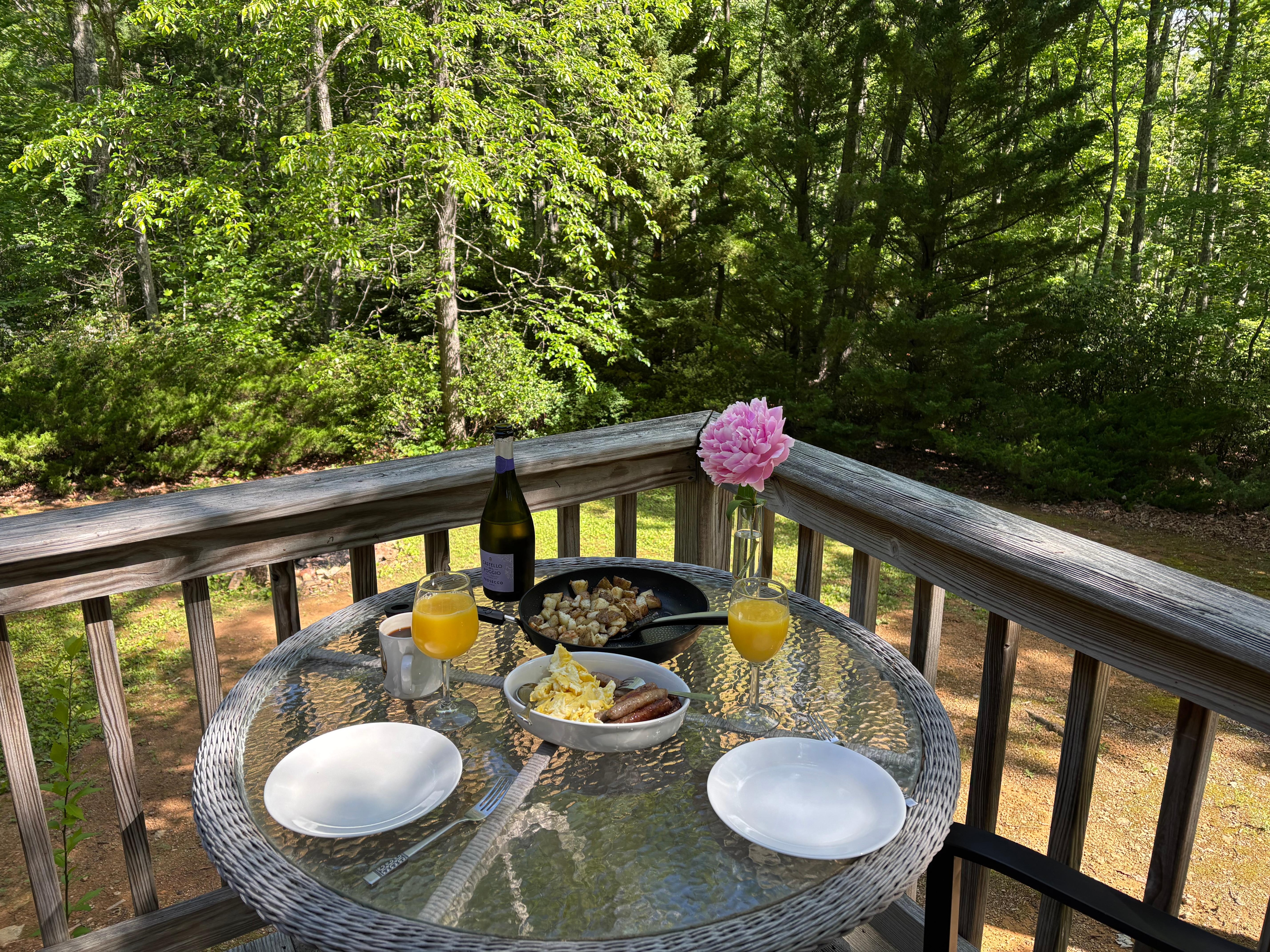 Perfect! Likely an older cabin, but appears to have been remodeled in the last few years or so. Very nice, very clean, very well equipped. Everything we could want! Except coffee. Bummer.Just kidding. Bring your own! It's not that hard!The place is beautiful and well appointed.The ONLY downside was that there does not appear to be any way to secure both doors from the inside. That bothered us a bit. There are gadgets for making hotel rooms secure which would take care of it, though.The host was great! He emailed good directions and a good map. There is a notebook in the cabin with tons of information about the cabin, and about nearby attractions. Really thorough!The listing does mention mountain views, but that might depend on your definition of, "mountain views". The trees are so thick that you can only get a glimpse of the nearby hills, in one direction (see photo). It's BEAUTIFUL!"Secluded" is right on the money. Yes, there are houses in the area, but you can't see any of them. While outside, I heard a neighbor down the hill yell something, and a short bit of conversation from up the hill, but that was IT. Other than a bird call or two, and the sound of the wind in the trees, it was silent. You could skinny dip in a bucket on the deck and nobody would know. I don't know why you'd want to do that, but you could. :D The roads are not good for winter use! Watch the weather. Don't try it in a lowered car!
