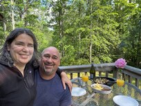 Ridge has rocking chairs on the covered porch, with views of the mountains to the west of the cabin.  There is also a hammock in the trees for your relaxation and reading of many of the books furnished in the cabin.