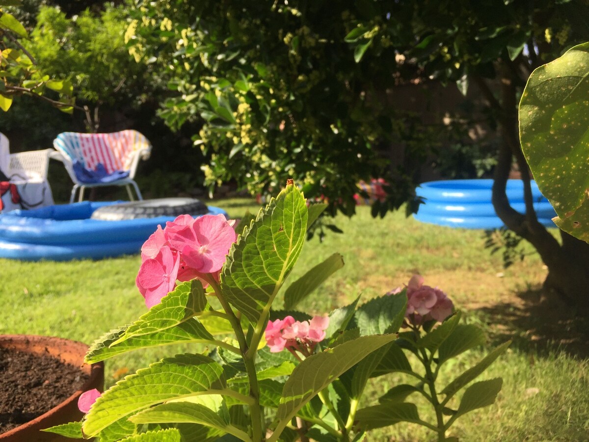 Our garden offers a relaxing and magical atmosphere between flowers and fruit trees. Many beautiful beaches can be reached in 25 minutes by car from our house.