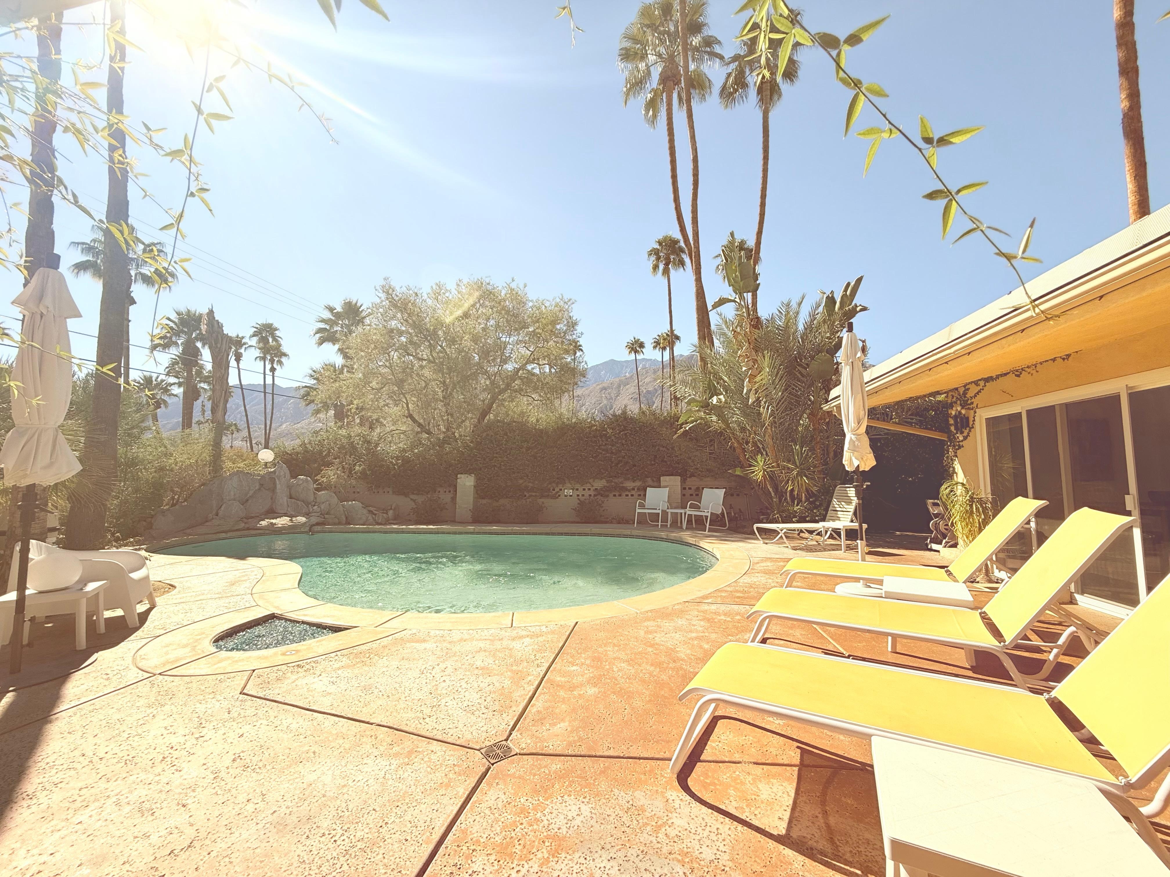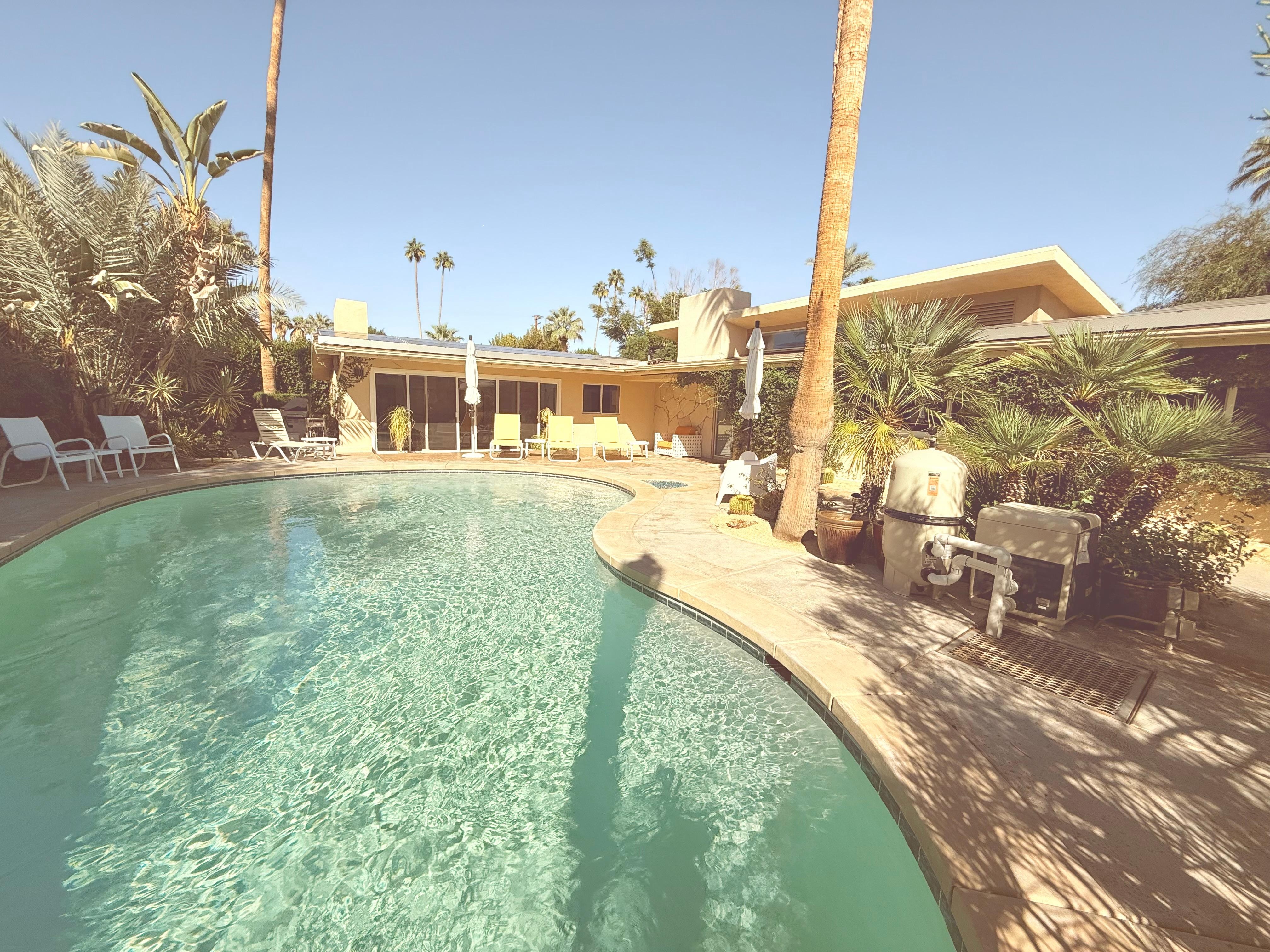 Located within the popular neighborhood of Tahquitz River Estates, this 1940’s home developed by renown mid-century architect and engineer Paul Trousdale offers one of the best views in this highly desirable neighborhood on the south side of Palm Springs. This home has plenty of gracious living space both inside and out with 4 bedrooms, 3.5 bathrooms, a double sized living room, and a grand dining area with fireplace. Trousdale designed homes are notable for maximizing the views from the front exterior space and this one does not disappoint. The pool, surrounded by beautifully landscaped grounds and poolside fire pit, is situated for amazing views of Mount San Jacinto. Barbeque outside or take advantage of the designer kitchen with updated appliances and amenities.