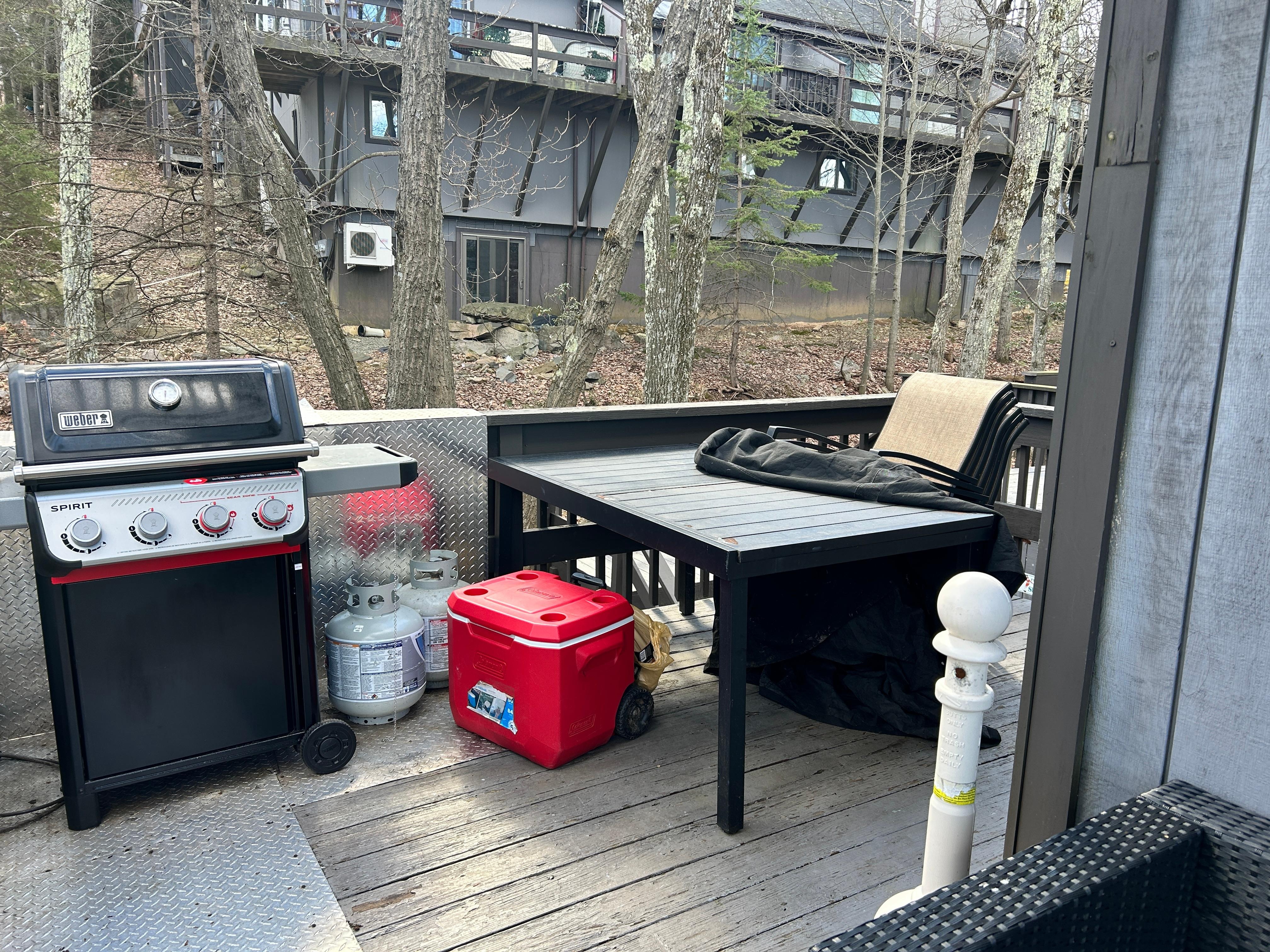 Living room has a 75 inch smart TV , cable channel DVD player to seat and enjoy a movie night or watch your pictures taken during your fun day. .A second Balcony/ Private Deck is right out of the living room where you can enjoy your late night Grill and Dinner looking out to the top of the Camelback Mountain and Winter Slopes. There is a dining table with 6 chairs.
