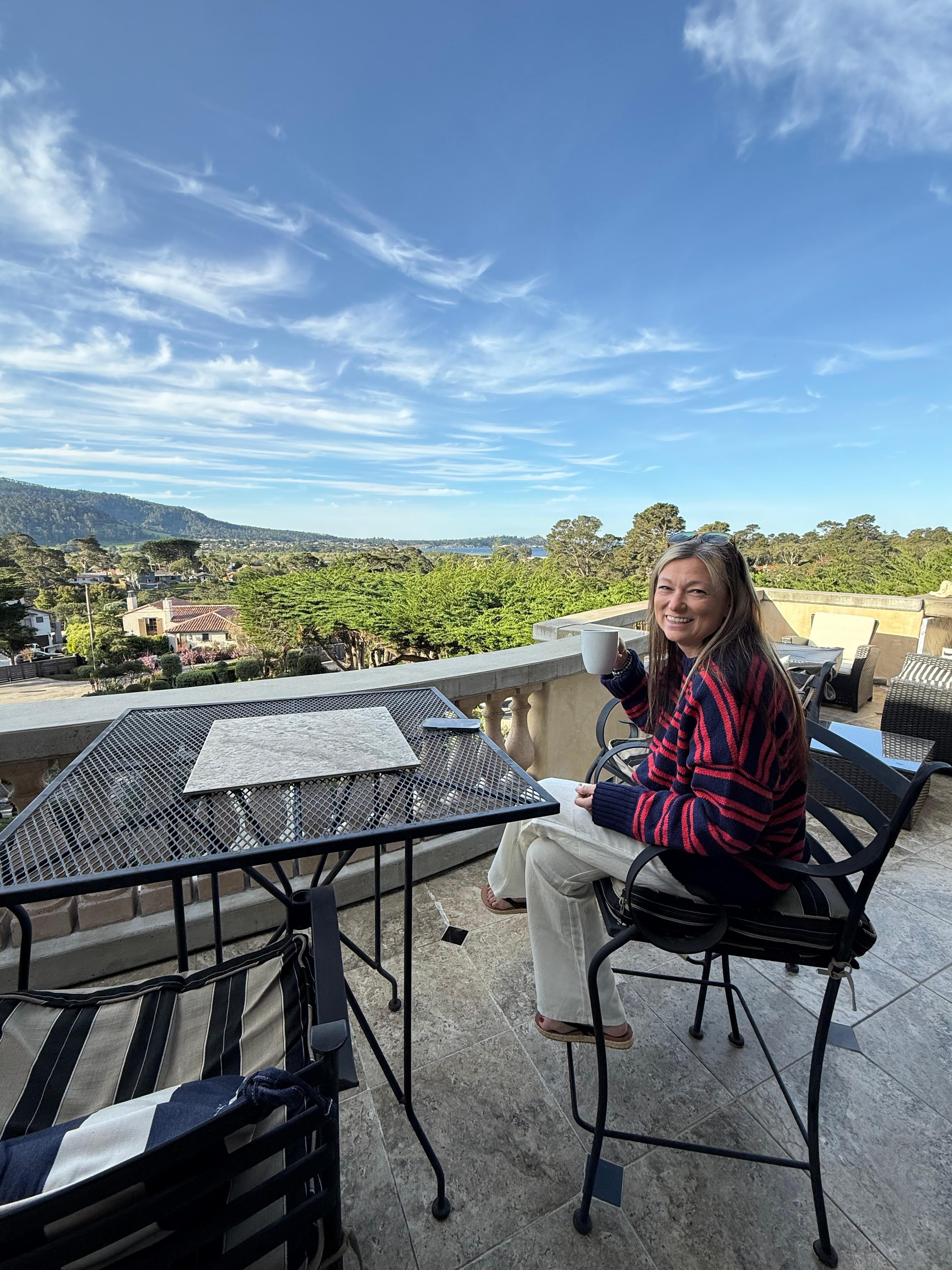 The villa is even more beautiful than it appears in the photos. With a view of the water, the mountains, and the Mission, it’s just breathtaking. You can sit outside on the expansive balcony and just watch the sights and see the light change the views. The villa is also gorgeous and beyond well appointed. Vaughn and Pat have thought of everything. From a fridge that had some basics in it like milk, half and half, butter, juice, cheese, wine, water and other items to a tremendously well stocked coffee station, it was above and beyond. Vaughn and Pat are also very friendly and were responsive to all of our needs and questions. They are truly a pleasure. The villa is also in a fabulous location. You are just a little over a half a mile from the heart of Carmel and while the walk to town is a little hilly, it’s gorgeous with much of the walk done on well groomed trails. If you choose not to walk, Ubers are plentiful, quick and cheap so once you’re at the villa, you only need to drive if you want to explore up or down the coast. My wife and I will definitely be visiting again, and highly recommend the property for your trip.