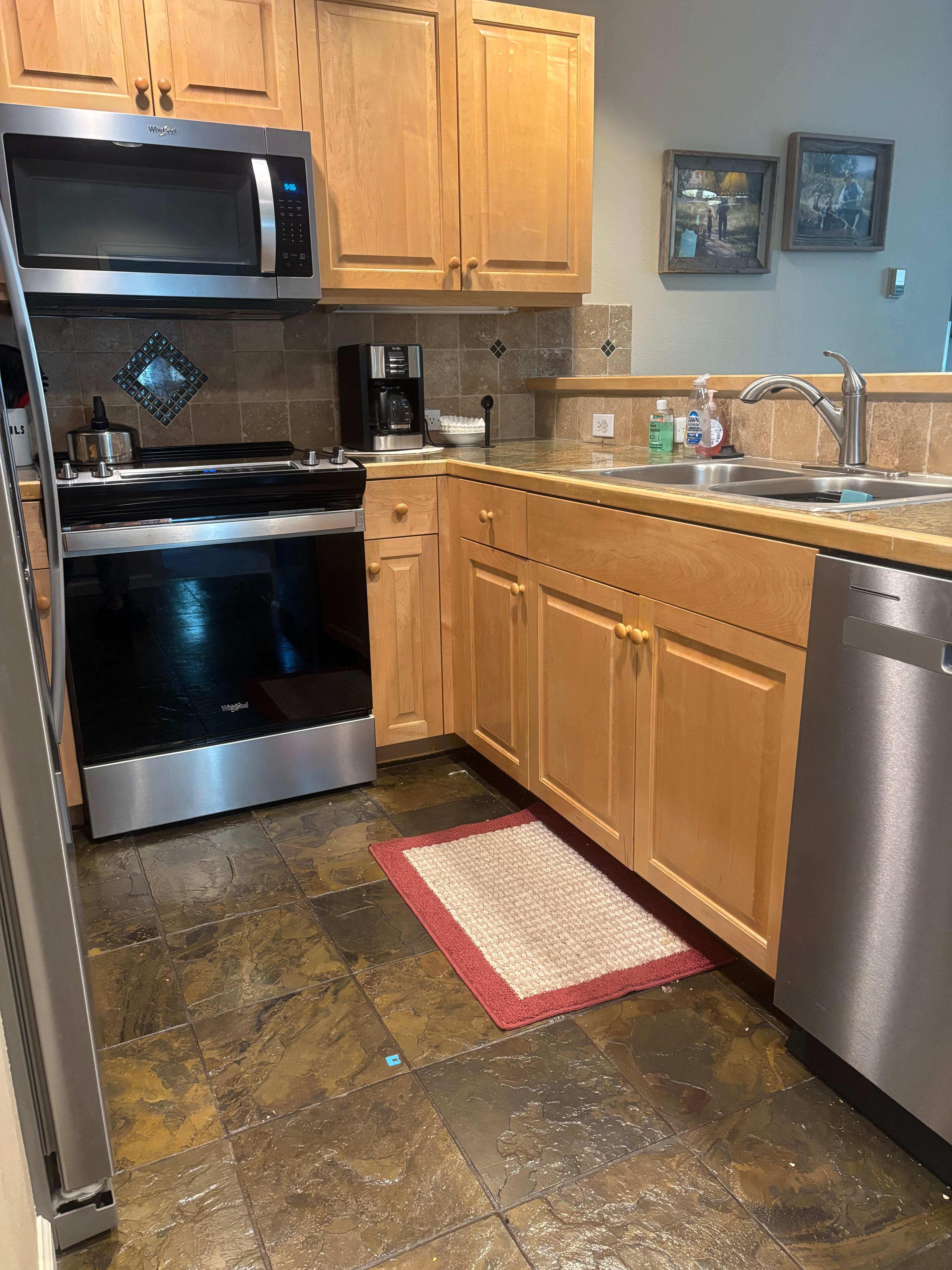 With a scenic creek-side walking path to Gondola Square. THIS CONDO IS AN EASY WALK TO THE MOUNTAIN. The Terraces at Eagle Ridge provides the finest amenities. Including a shuttle service to and from the mountain. Although it is a very short walk. There is underground parking for our guests for one car. This keeps you from worrying about keeping the snow off your car. You can relax in our heated outdoor pool and hot tub, or wander the Burgess Creek walking path to one of the many restaurants and stores. For your convenience there is a grocery store just a few short steps from the condo. The Wild Plum Grocery Store and liquor store is less than 50 yds from our unit.