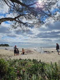 Upstairs features the spacious master suite with own en-suite, while the three minor bedrooms are downstairs, two of which comprises two king single beds, while the third boasts a queen bed, they all share the main bathroom. The laundry is fully equipped with a washer & dryer if you feel the need to do some washing while you're on holidays.