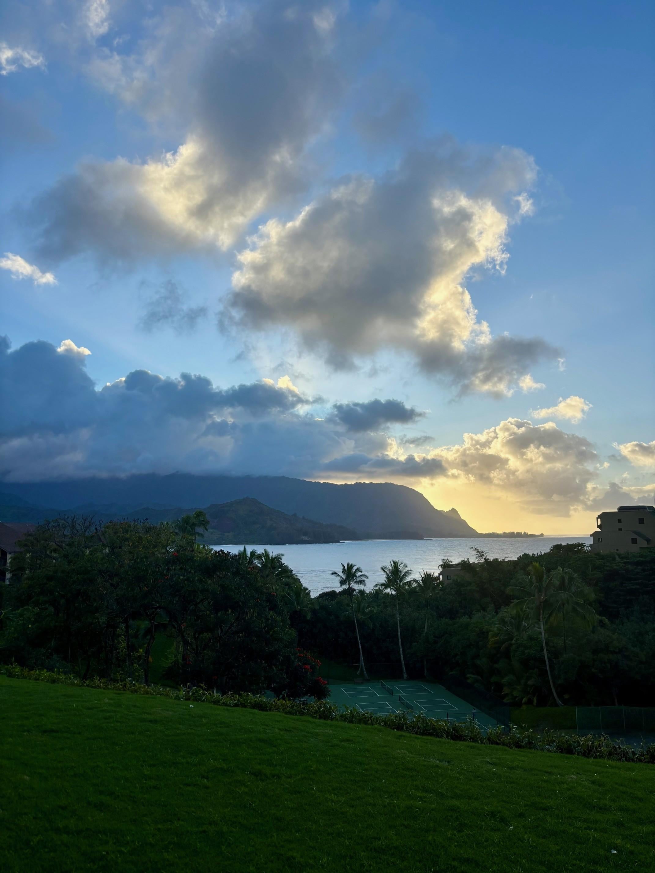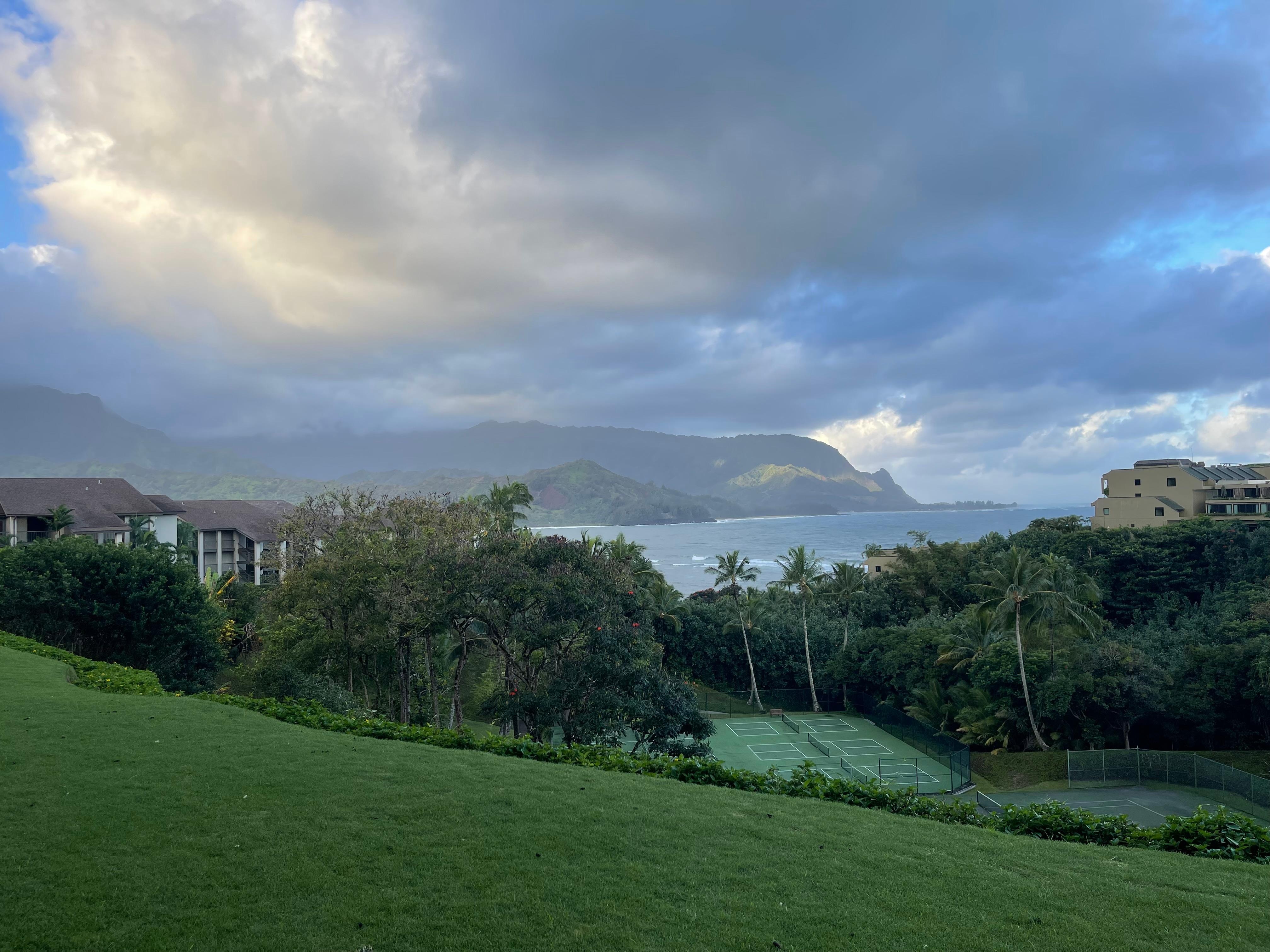 One-of-a-kind studio unit with a stunning view overlooking Hanalei Bay and beautiful Bali Hai. Located at Hanalei Bay Resort - 22 acres of Hawaiian paradise only minutes away from one of Hawaii’s most beautiful white sand beaches, Pua Poa. Our ground floor condo is fully air-conditioned and only steps from parking and the gorgeous resort pool.