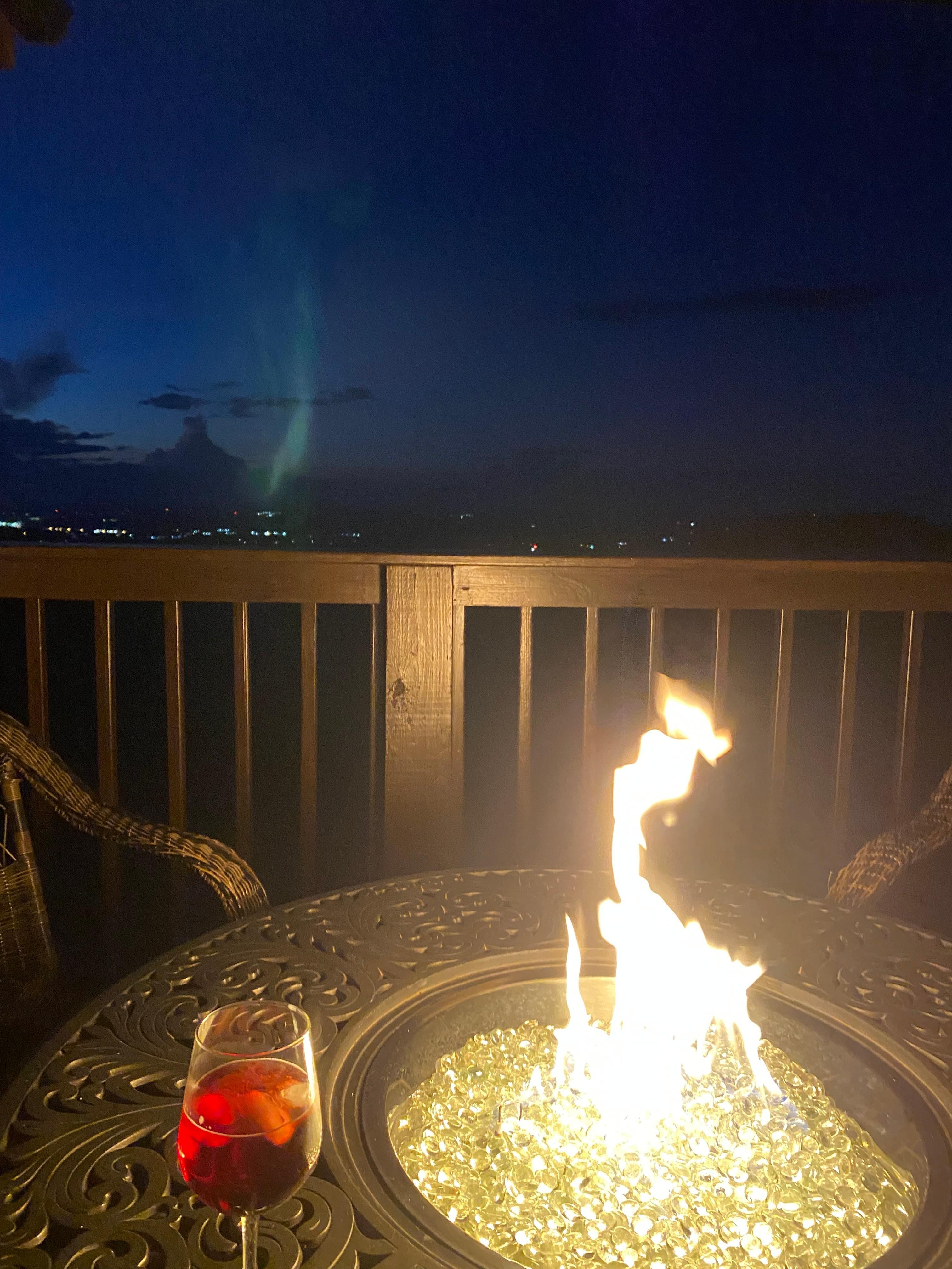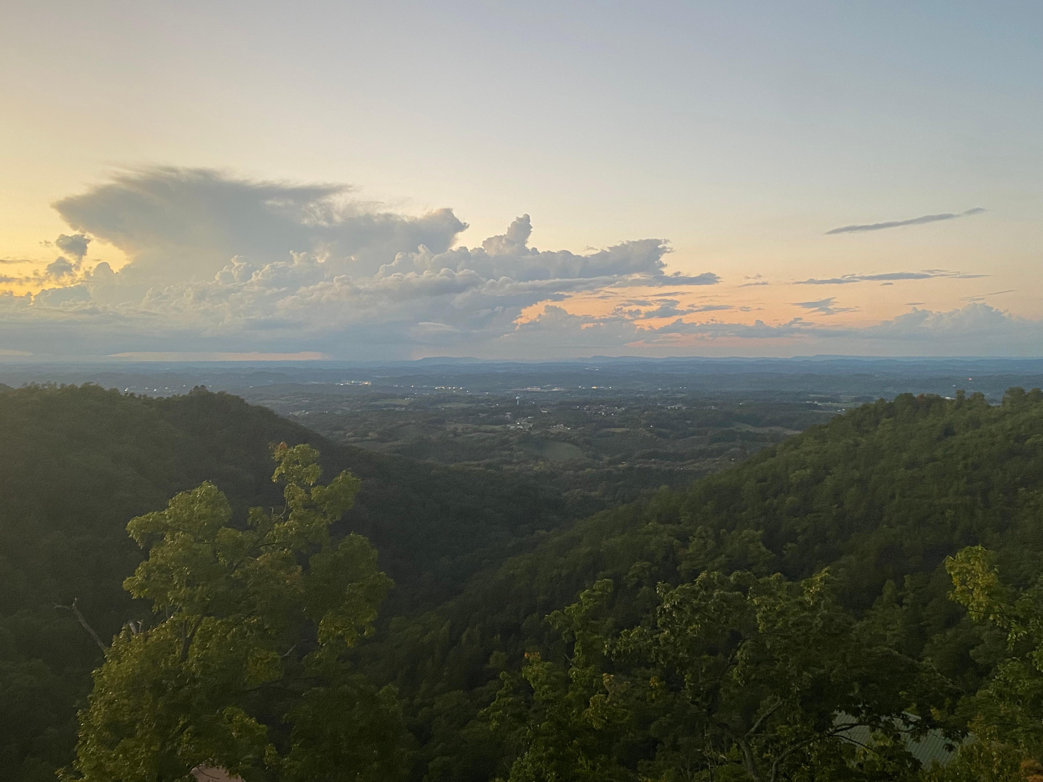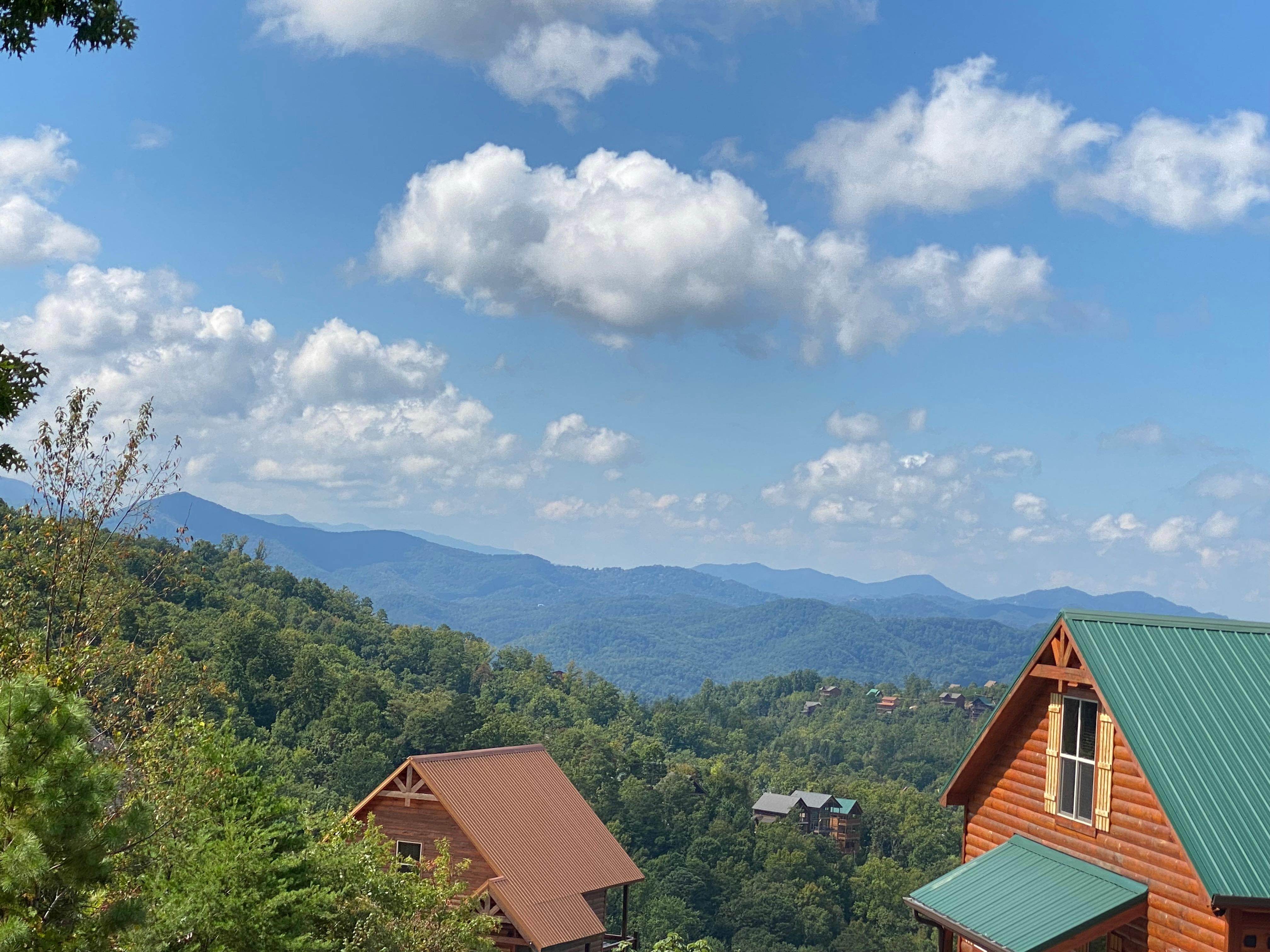 While the inside of the cabin is a wonderful place to relax- the back deck is even better! Of course, there is that amazing view with plenty of seating to just sit and do nothing. There is a brand new hot tub on one end of the deck and a gas fire pit with four chairs on the other end. (There are also skewers hanging on the wall for toasting marshmallows!) Enjoy views of downtown Sevierville and Pigeon Forge. At night, you can see the LED Ferris Wheel at The Islands. On clear days, you can see over 60 miles and the Jellico Mountains at the Kentucky/Tennessee boarder is in view. Sit on the deck and enjoy the sunset over Bluff Mountain to your left. During the summer you can see the fireworks from Dollywood to your left.