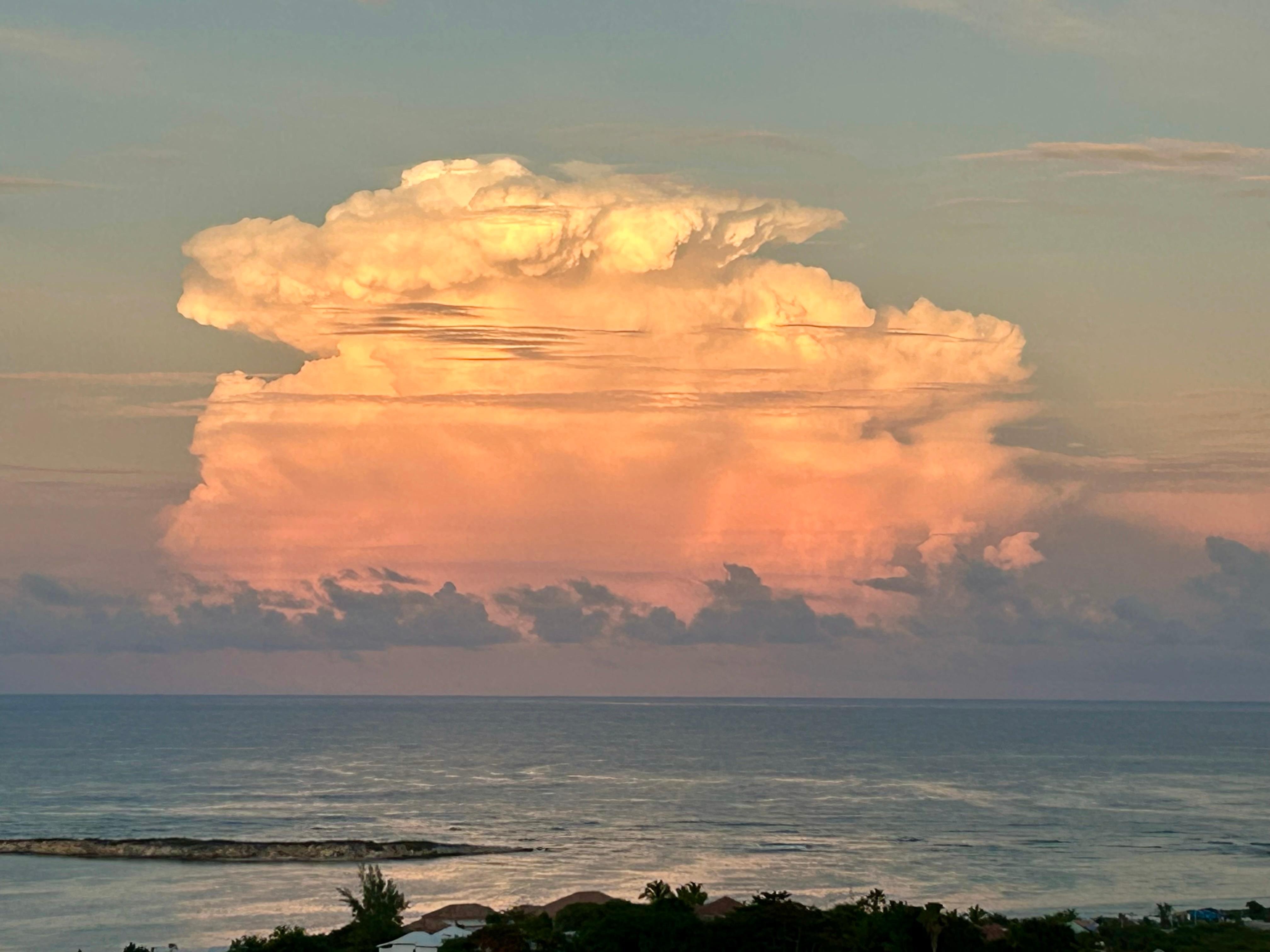 The views to the west, to the north, and to the east are all different, and are all simply breathtaking. The sunrise over that ocean, morning after morning, is a gift to the early riser. Morning coffee never tasted so good anywhere else. The different kinds of sunrises, some misty, some golden, some with a brief gentle rainfall, some with mysterious low-lying clouds, well - it feels like every sunrise is different, each one a masterpiece! Watching sunrise reflected upon those 30 miles of ocean is a gentle two-coffee event, and is like beholding the slow-motion opening of a magnificent flower.