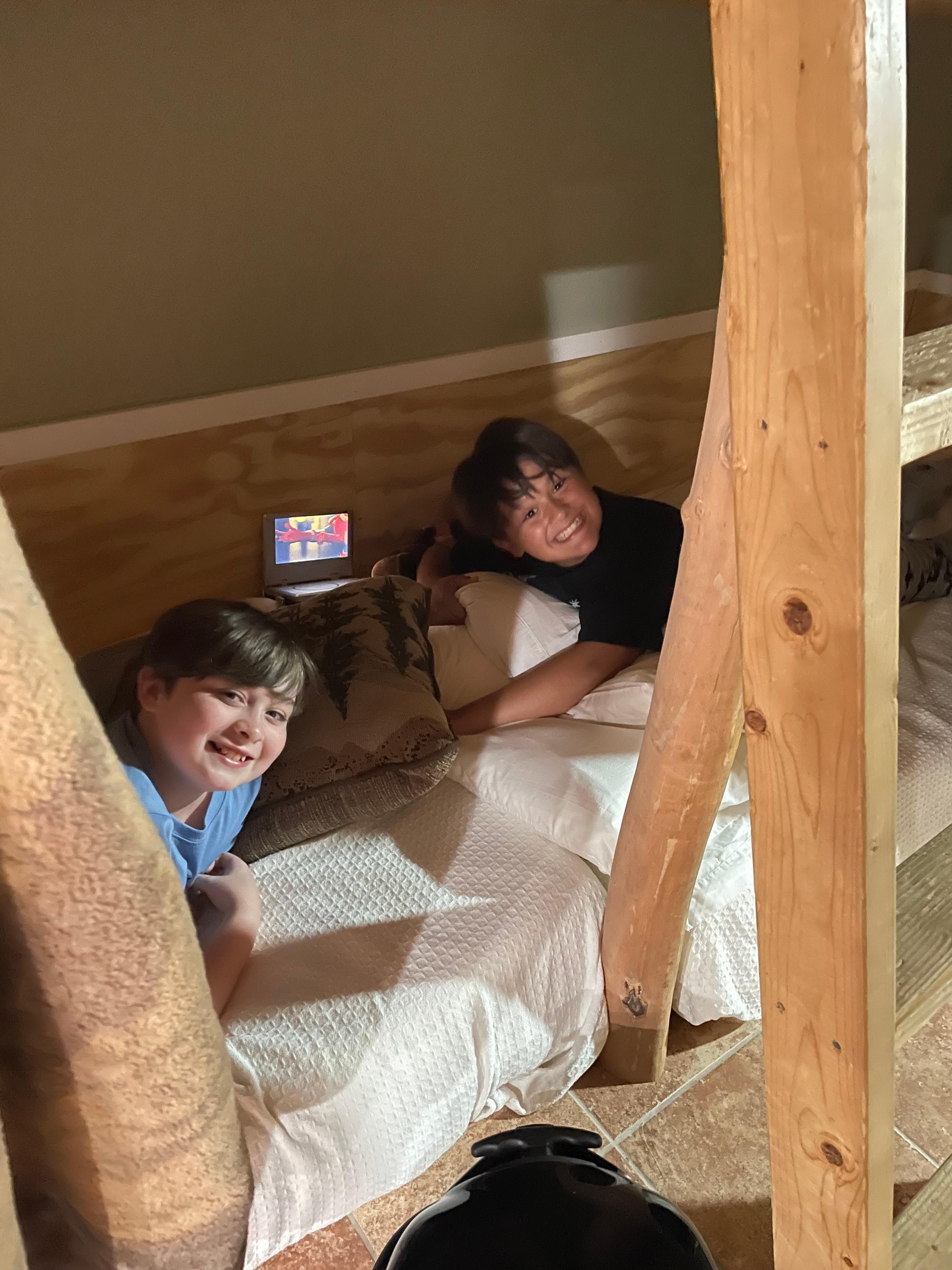 We brought our kids and six grandkids (ages 3-13). They loved the pool! It was a perfect size for our family and deep enough to play games. The grandkids love when they can all sleep together, so the bunk beds on the bottom level worked great for them. The weather warmed up enough that we could all get outside and play in the fresh air. Everyone wanted to stay longer!