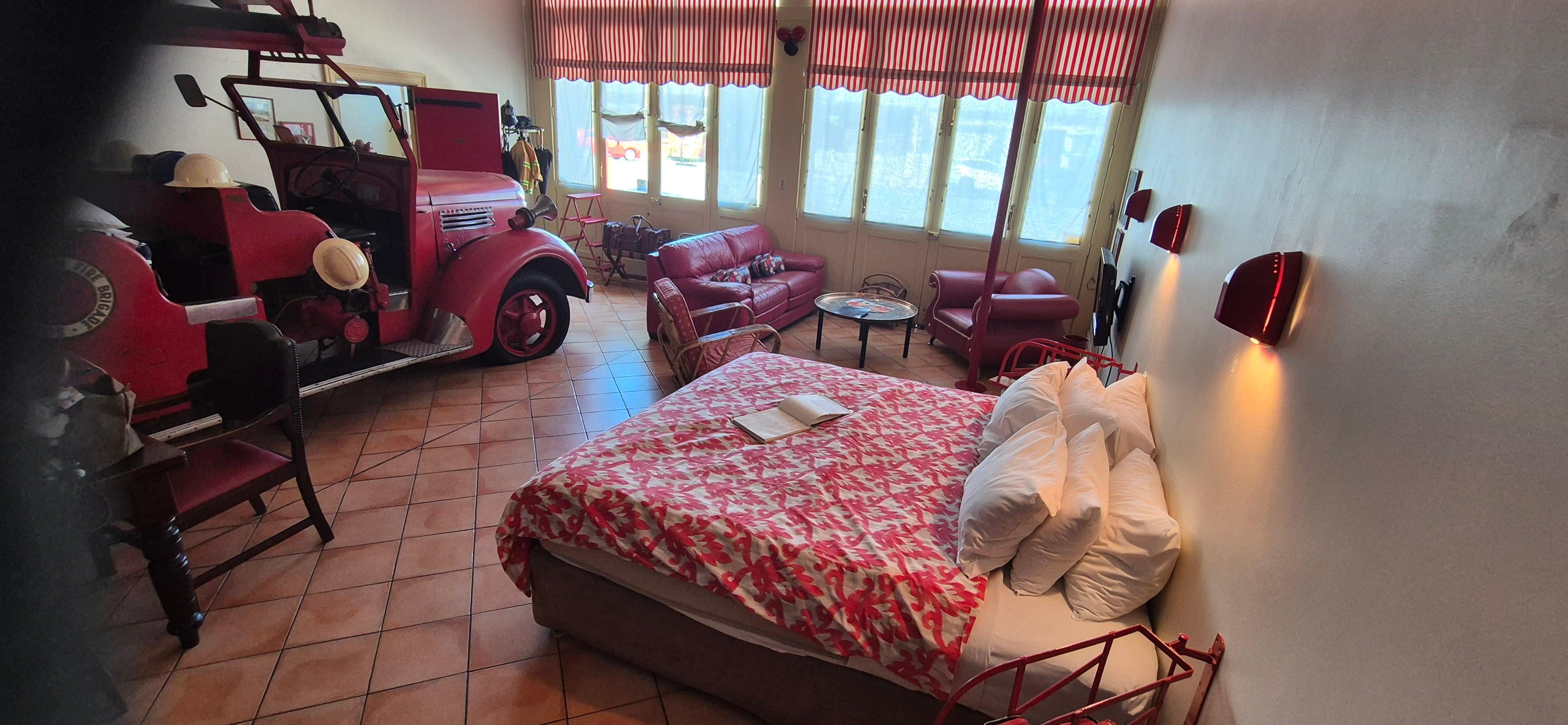 The Fire Engine Suite is a fully self contained, large open plan apartment. It offers a fully equipped kitchen, king bed, king size spa bathroom and his and hers lavatories. However the highlights of the Suite would have to be the life size, antique fire truck and original fire man's pole in the bedroom!