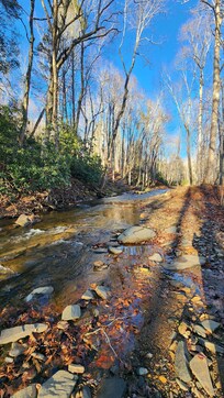 Flat yard, on mountain stream, easy access in winter, close to Boone & shopping.