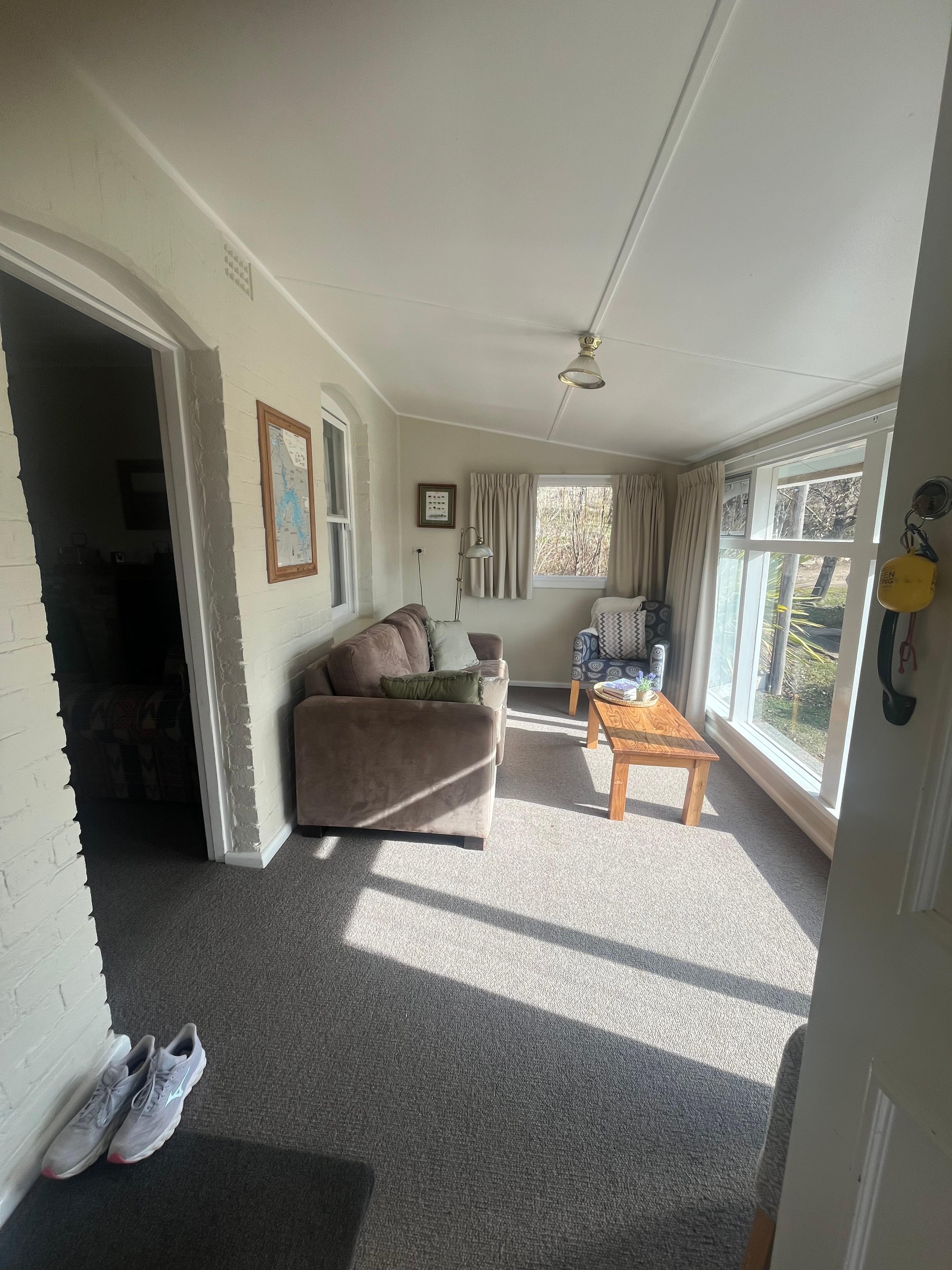 The cottage features kitchen consisting of a electric stove, microwave and standard size fridge, lounge with wood fire, sunroom, 2 bedrooms B1 Queen Size B2 set of SB bunks 1 QS washing machine & dryer, bathroom, toilet, covered verandah and BBQ.