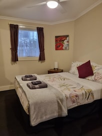 Brilliant location to walk to the river & Courthouse Inn.Such a cute little place, lovely options to sit outside, enjoying the garden or communal area.Loved Bob's commitment to his ball .Thanks Carl & Donna.