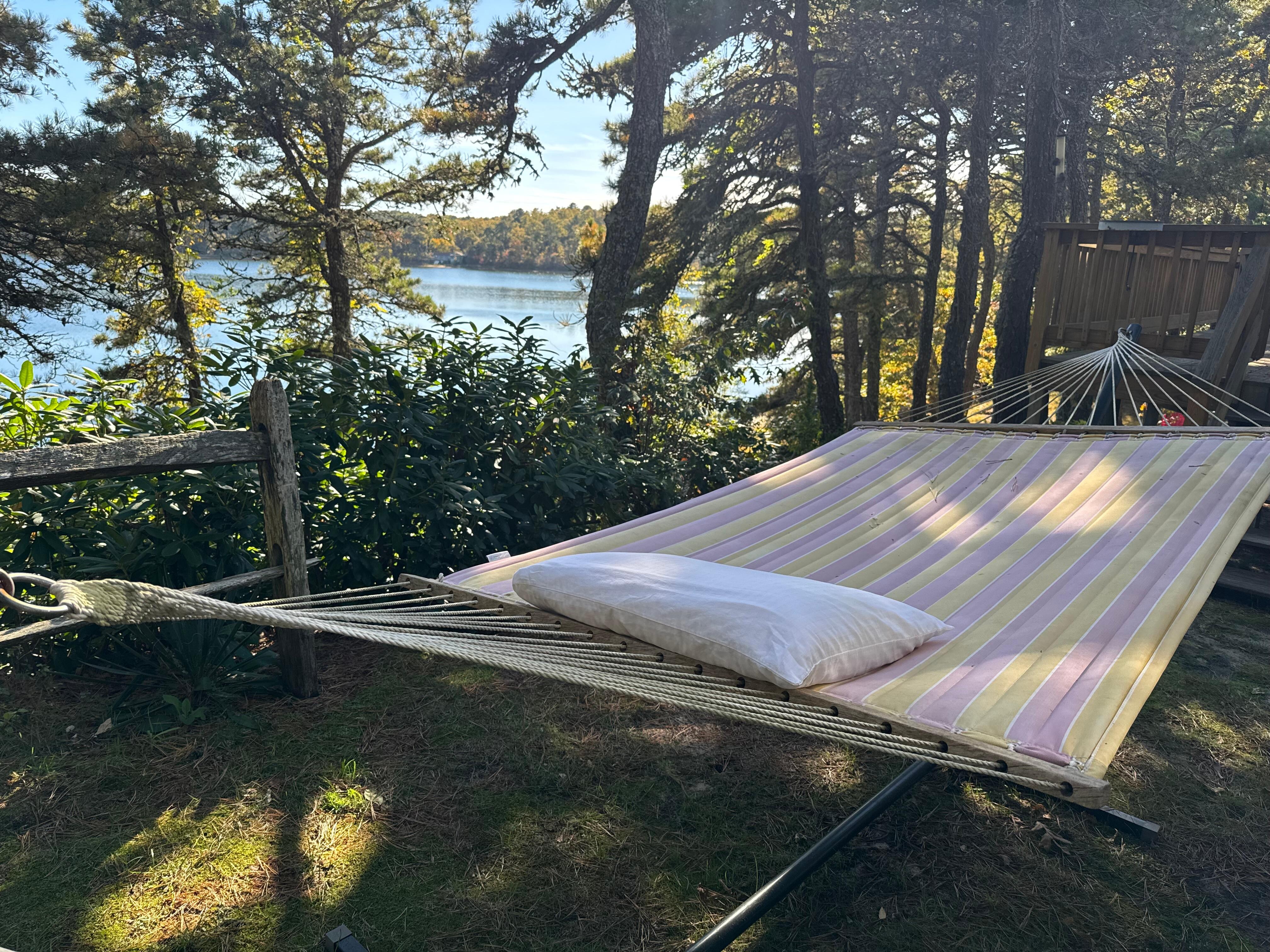 Get ready for a week of rafting, canoeing, kayaking, paddle boarding and swimming in a huge, clear freshwater lake. Sure, you’re on Cape Cod, in super desirable Chatham, but you’re also lakefront on a gorgeous body of water, so you’ll truly be able to take advantage of all the fun water sports the Cape has to offer. You’ll experience blissful solitude as you sit on the deck of this home, sipping your morning coffee and watching the warm summer breeze or crisp autumn air sway the surrounding salt pines. Whipping up meals will be a cinch in the spacious and well-equipped kitchen, and those not on cooking or clean-up duty can relax in the huge living room, overlooking the lake or swing peacefully in the outdoor hammock. There’s really no need to leave this home, but should you choose to, downtown Chatham, a variety of saltwater beaches, restaurants, boutiques, mini golf, seal tours and beach yoga are all a short drive away. All beds will be made up with fresh linens at no extra charge, and the home comes equipped with WiFi, Cable, window A/C units in the bedrooms, and a washer/dryer. Come to this waterfront oasis for a week of fun, restoration and memory-making!
