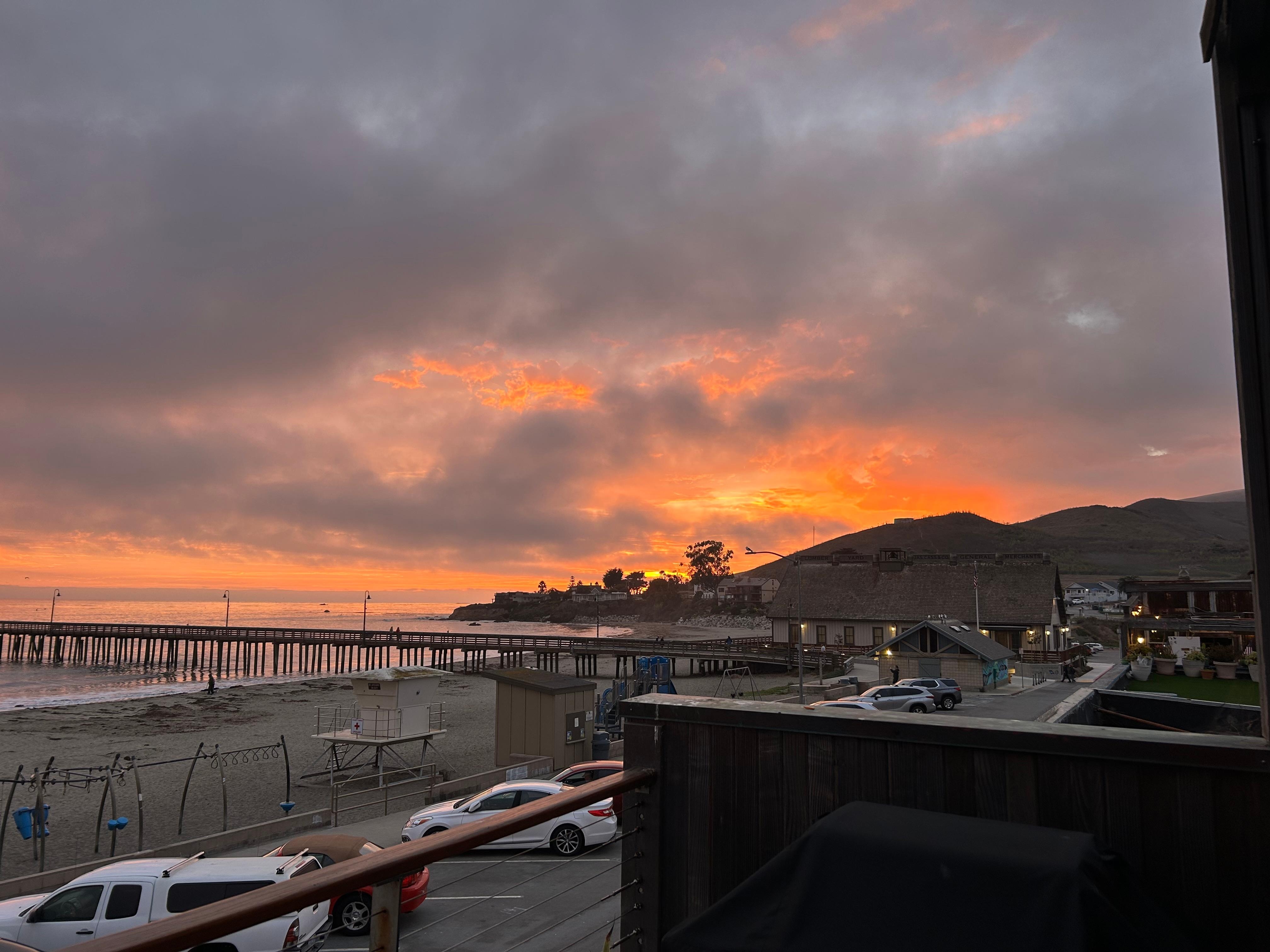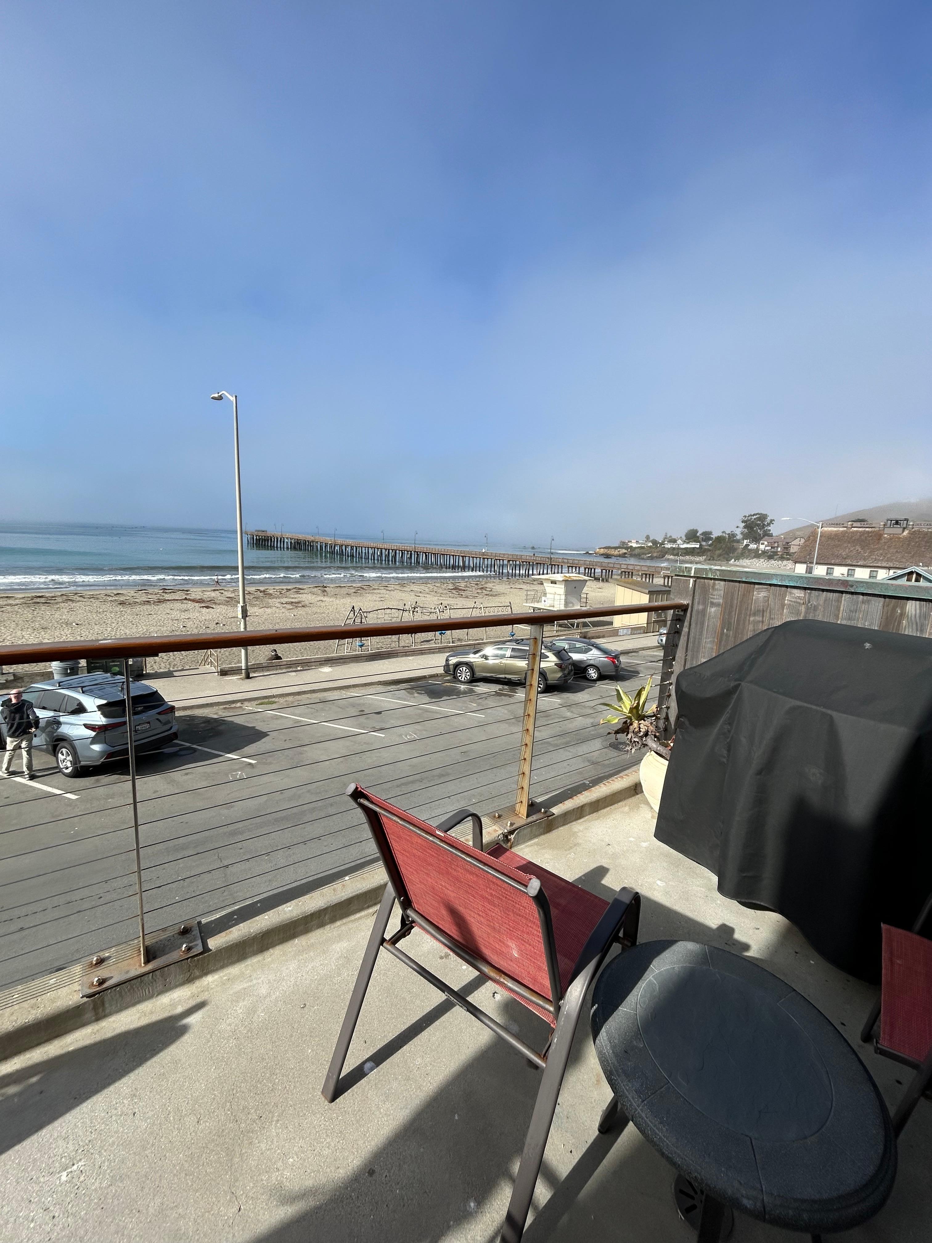 ~Rear balcony facing downtown Cayucos with a front row seat to any parades, including the famous 4th of July parade!
