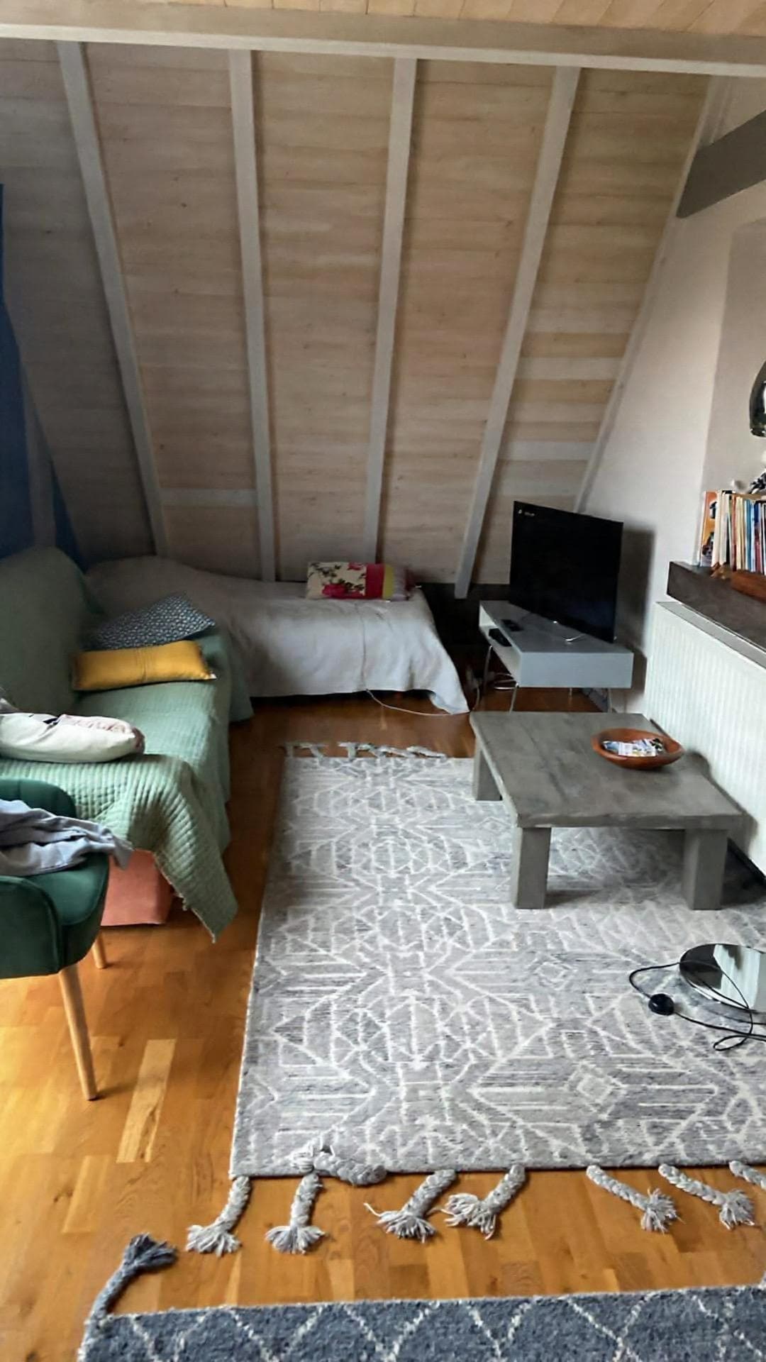 Living room with comfortable chair, mezzanine with a bed 90, a bed 90x200 used as a sofa to watch TV, Wifi available