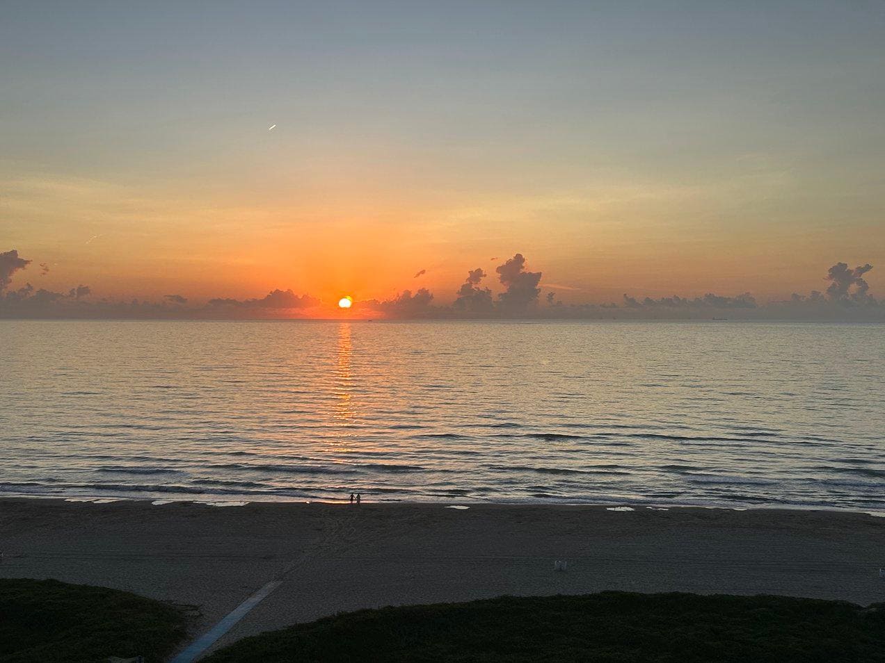 Morning sunrise over the beach and evening sunset over the bay!! These two views are yours to enjoy while being our guest at our beach front home located in sunny South Padre Island. Our condo is located on the 10th floor of the pristine ocean front tower named Ocean Vista Tower. Let the blue waters of the Gulf of Mexico greet you as you open the door to our condo. Relax and admire the wall to wall ocean views from the open concept living room or from the king size bed in the master bedroom. Enjoy the ocean breeze and the soothing sounds of ocean waves from the private ocean front 12 foot balcony. Relax in our newly remodeled condo featuring a modern beach chic style. The master bedroom suite features a king size bed and a flat screen television. Enjoy an attached private master bathroom suite featuring double door entry, double sink vanity with quartz counter, spacious closet and edge-less glass shower doors. The second bedroom has two queen size beds, a flat screen television and plantation wood window shutters to provide privacy or to open up and enjoy views of the Laguna Madre Bay. The second bedroom has private access to the guest bathroom. Our condo features a spacious and fully supplied kitchen with stainless steal appliances, quartz counter tops, farmhouse sink, and pantry. We also have a full-size washer and dryer and flat screen television in the living room. Numerous in room amenities are included such as free wireless internet and cable tv with HBO. Included property amenities include a hot tub, 2 pools, boardwalk to the beach, exercise room, palapa area, children's playscape, tennis court, basketball ring and gated private parking have been provided for your enjoyment.