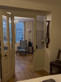 This beautiful 1-bed flat is on the lower ground floor in a historic early 18th century house. It provides an oasis of calm in the centre of the city. It is spacious for two people sharing a double bed.