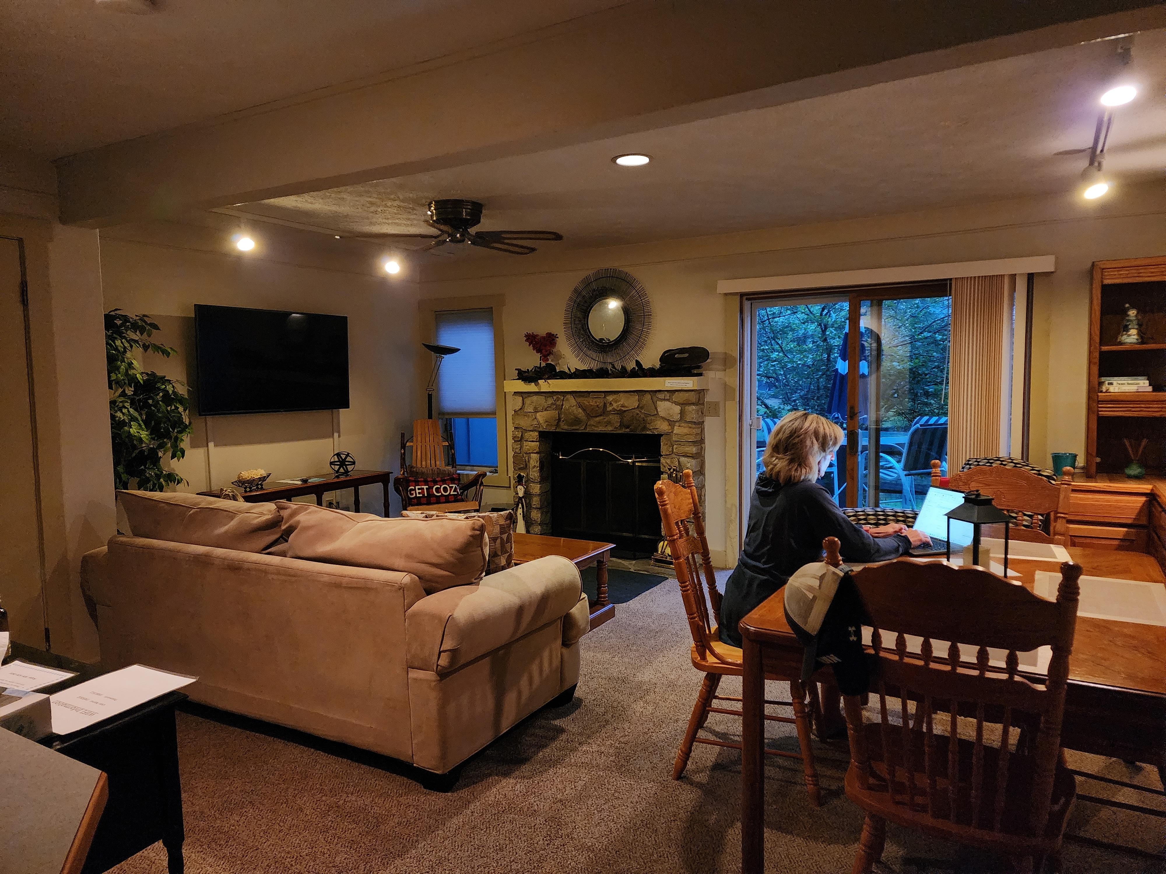 INDOOR LIVING: 3 flat-screen TVs, fireplace, 6-person dining table