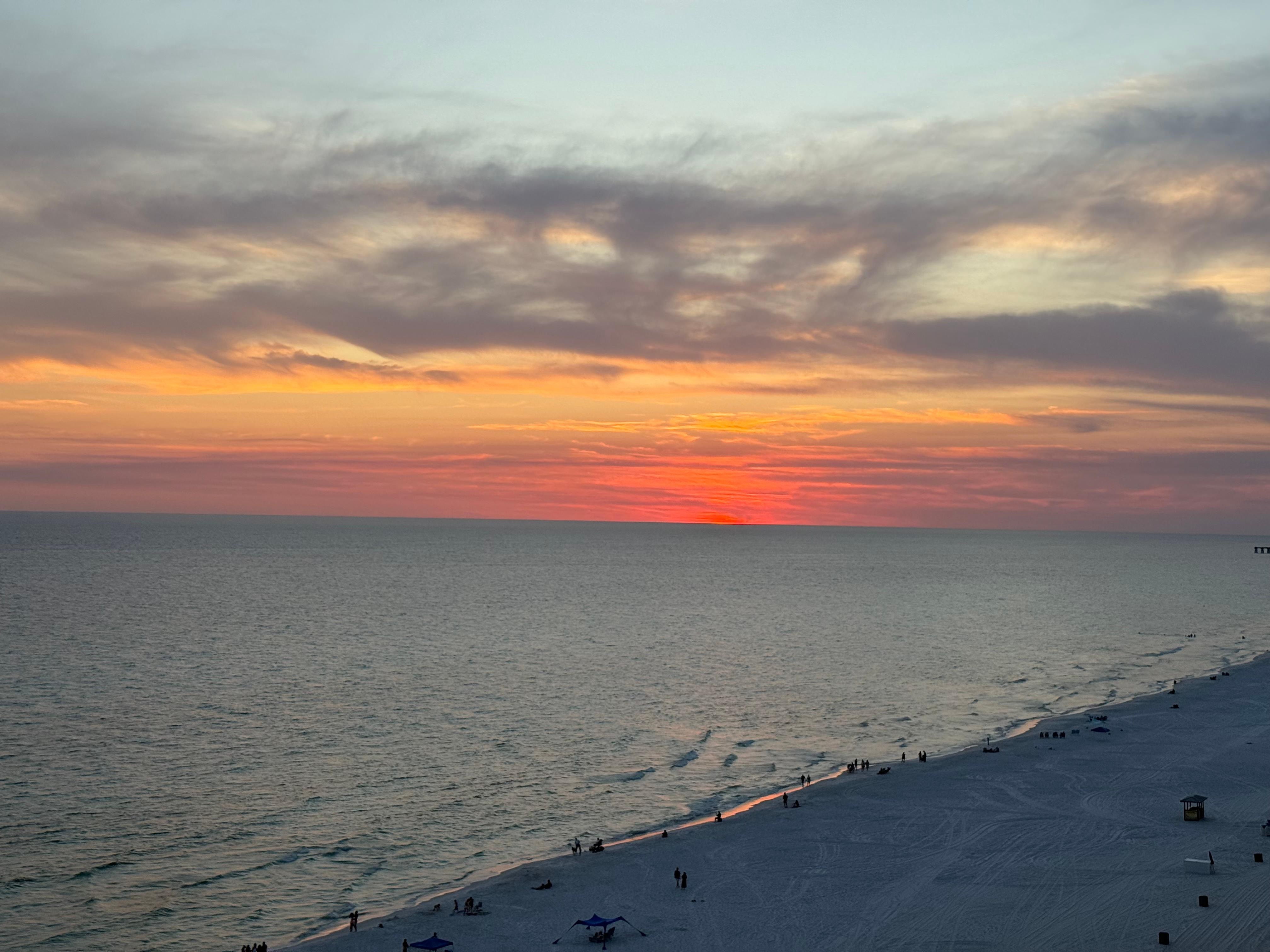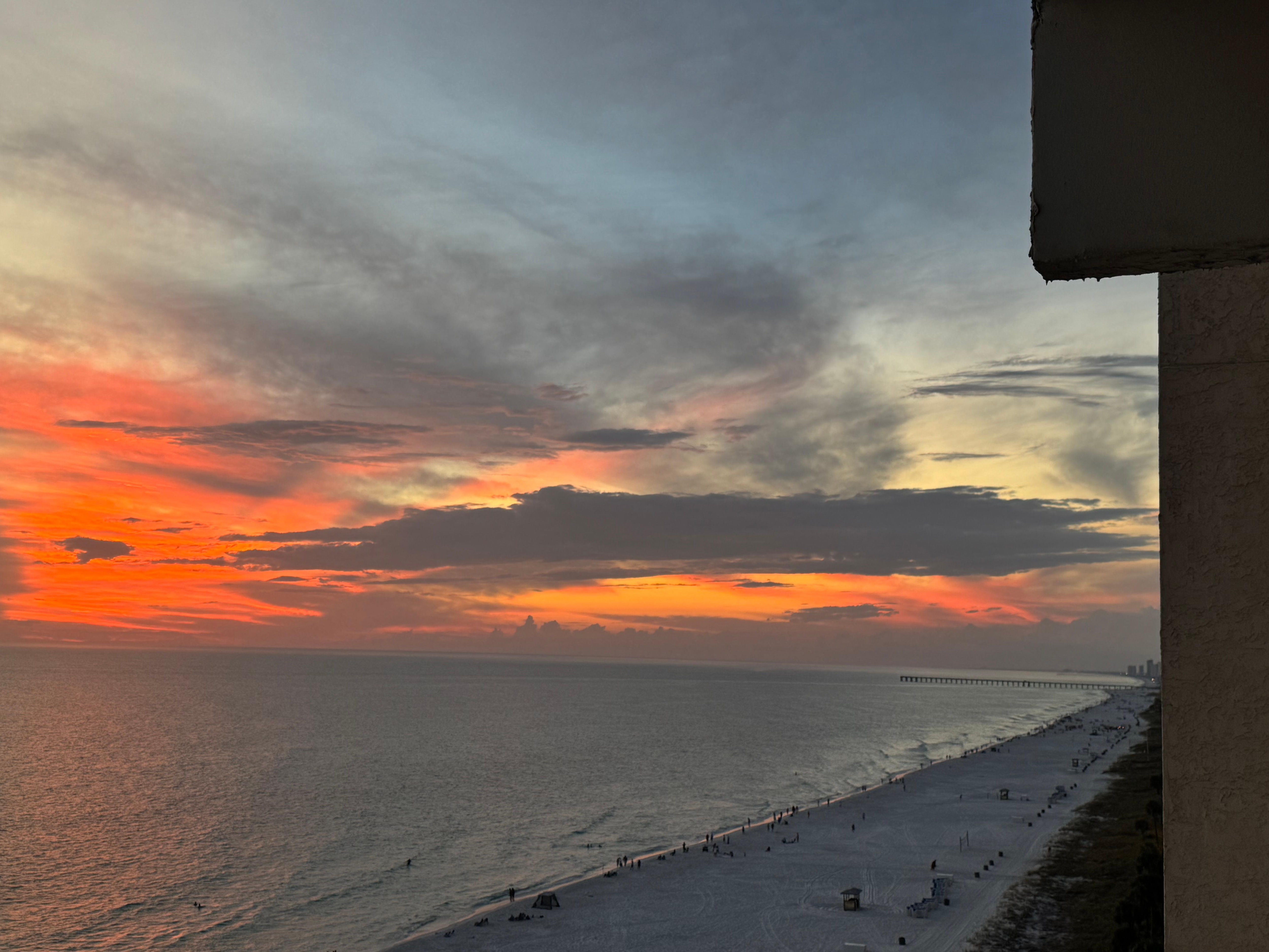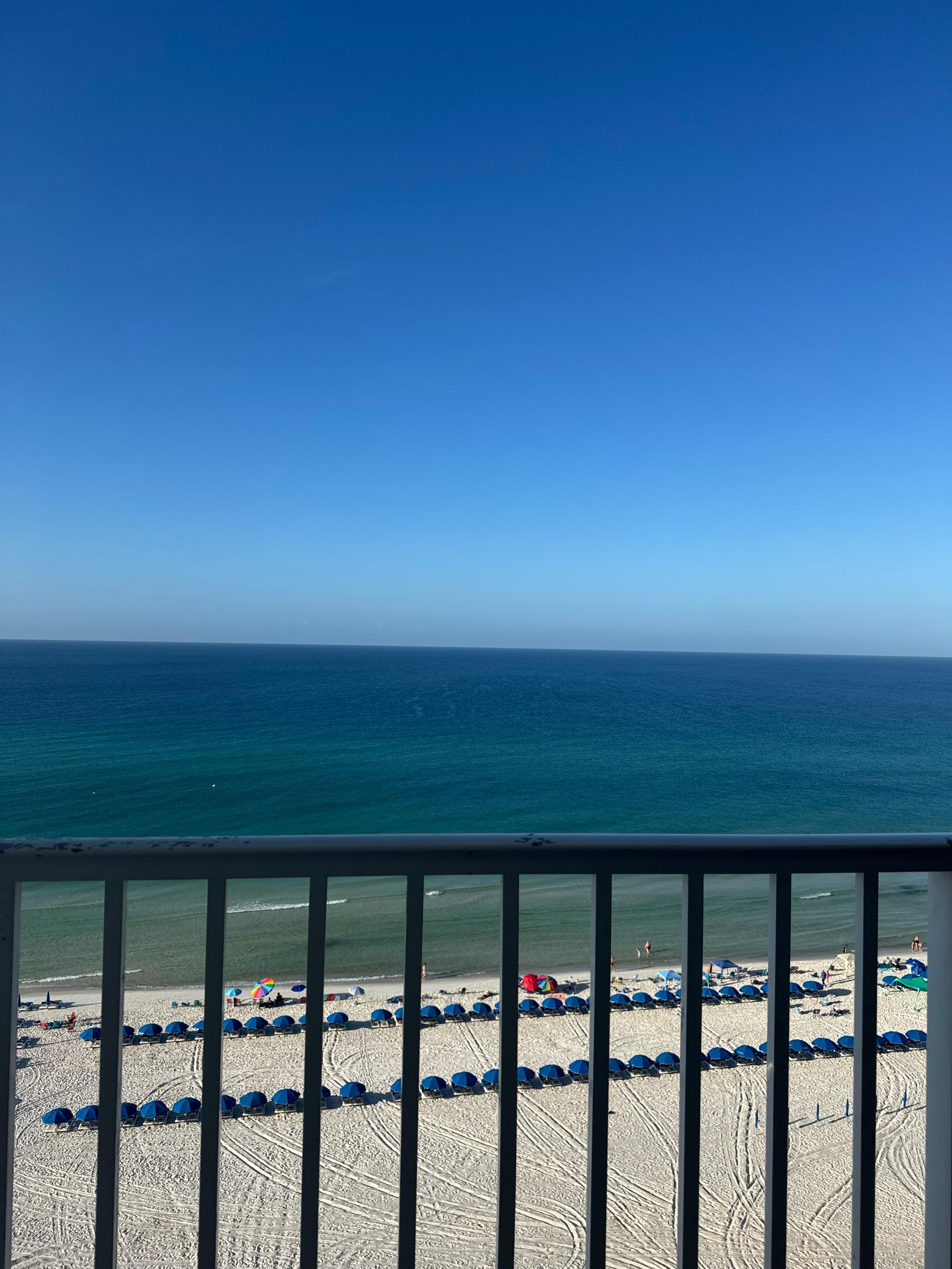 Perched on the 11th floor, our condo delivers spectacular panoramic views of the Gulf of Mexico from your private balcony. This is the ideal spot to sip your morning coffee, watch playful dolphins, or capture breathtaking Panama City Beach sunsets. You'll love people-watching on the beach below and enjoying the vibrant resort atmosphere. Being on the 11th floor means quick access to the beach and the resort's iconic lagoon pool. Please note for guests with fear of heights: the walkway to the condo wraps around the exterior of the building, offering stunning open-air views.