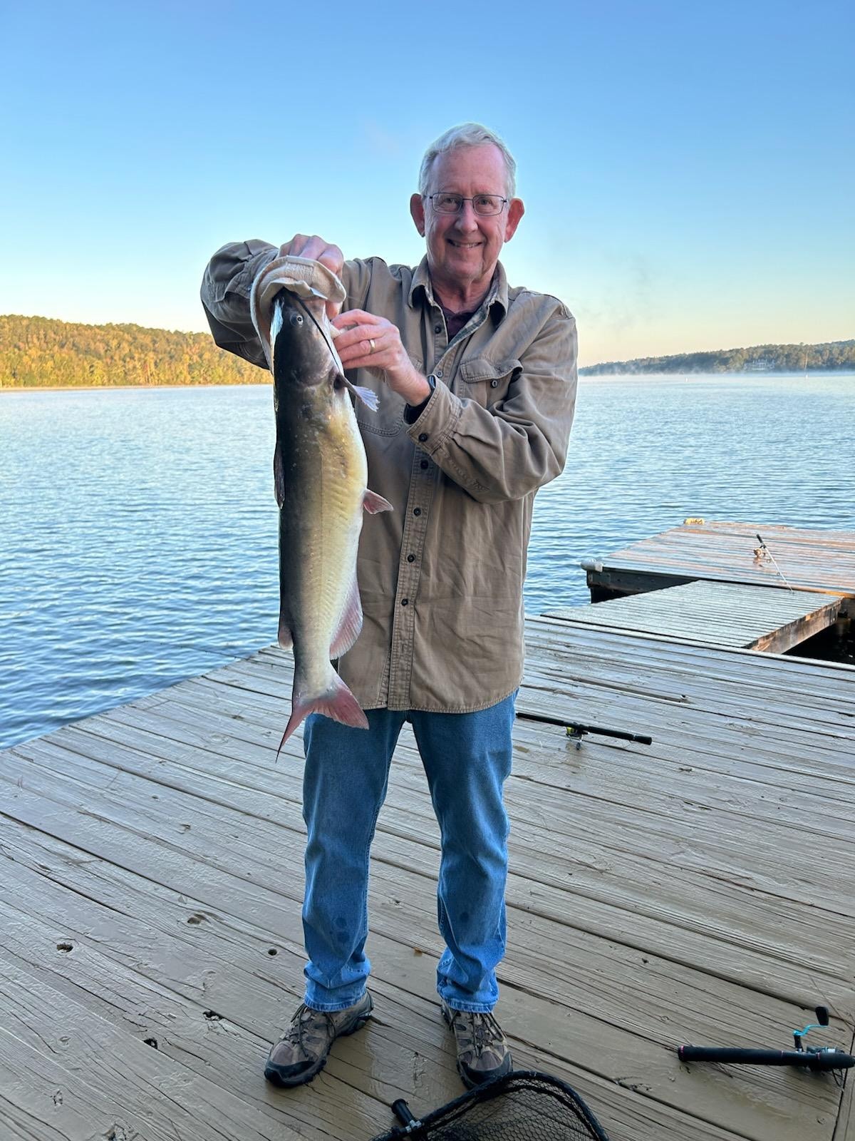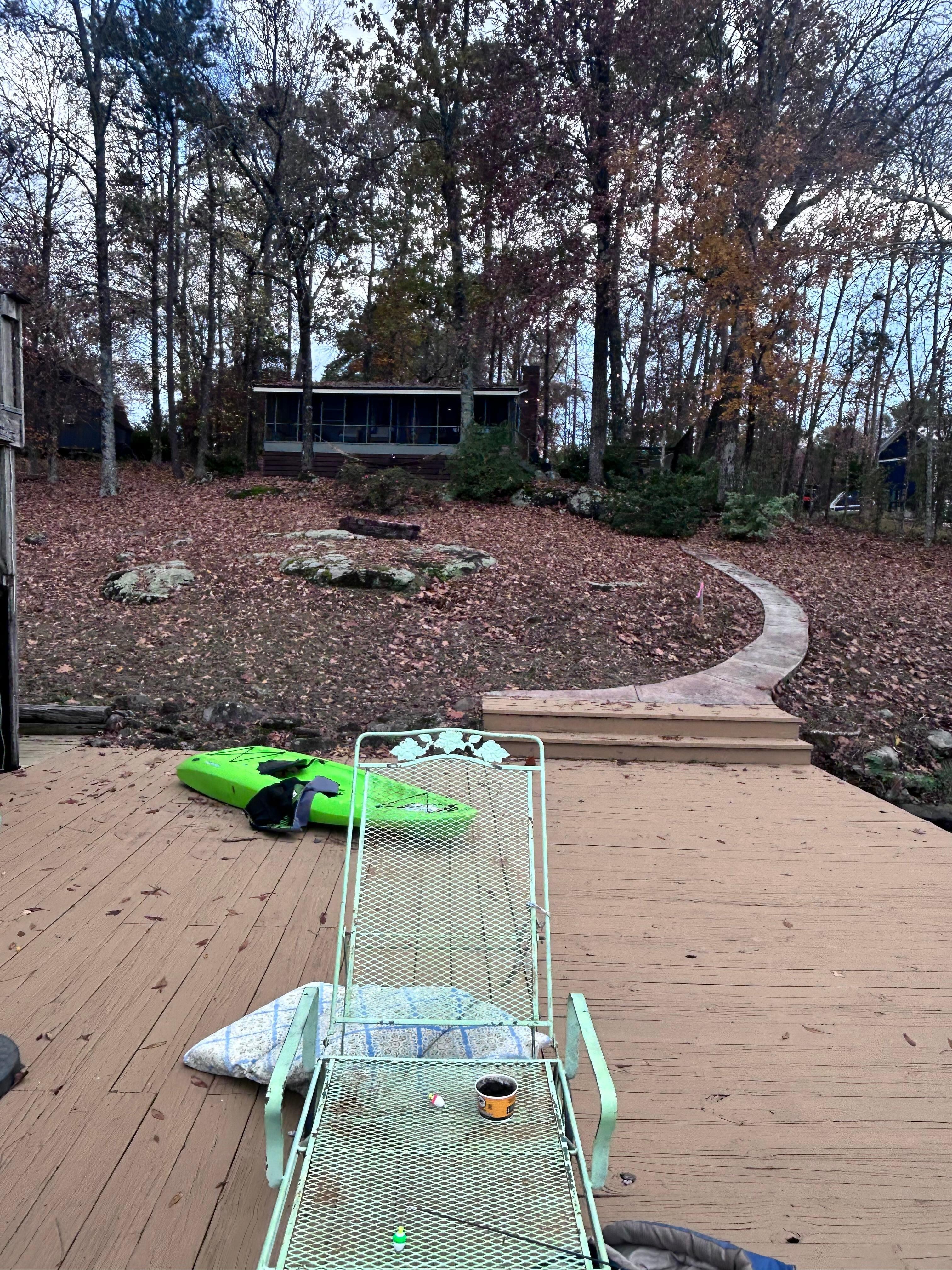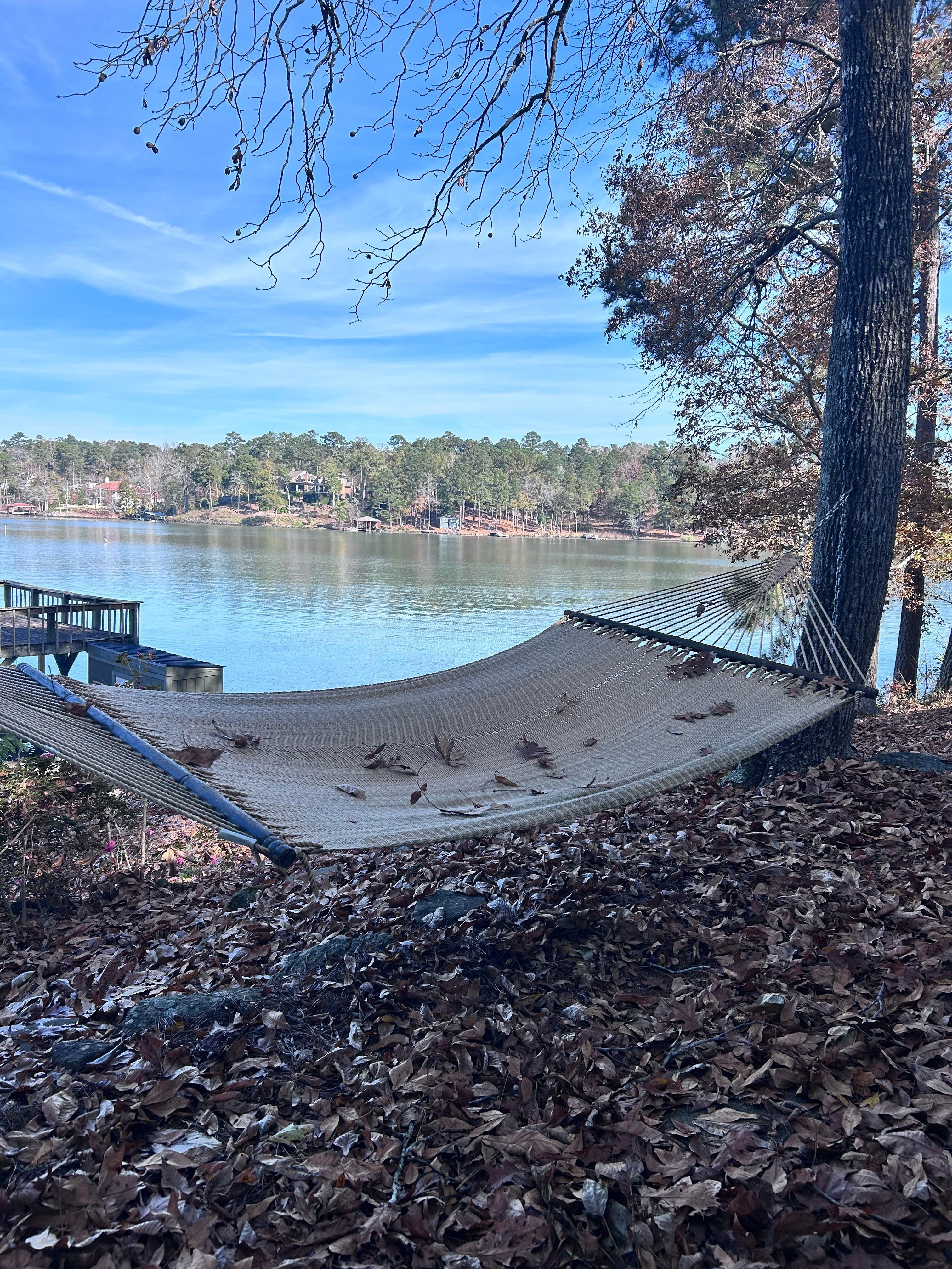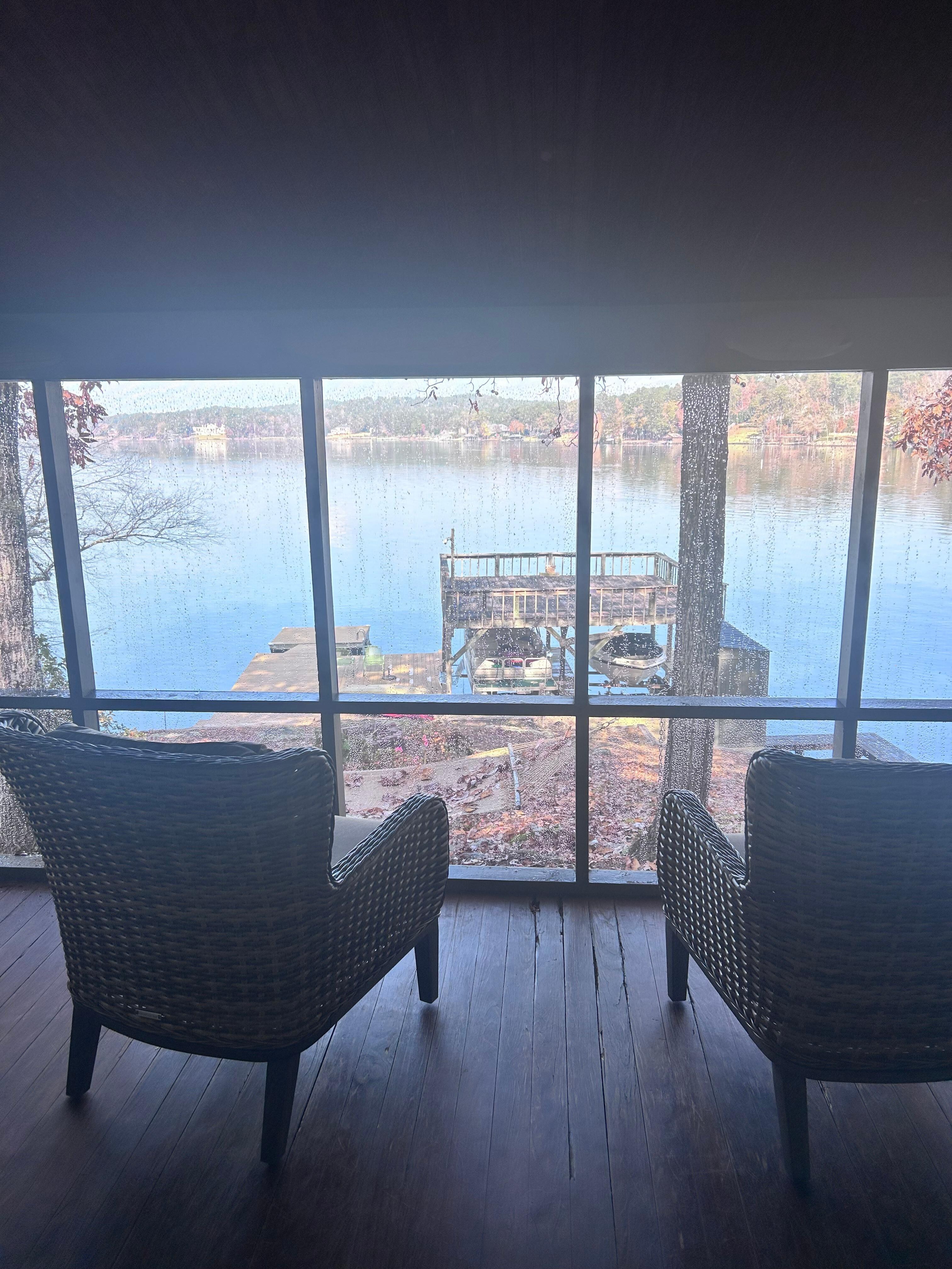 The location of the property was amazing! Gorgeous view and location on a beautiful lake in the woods. The porch and rocking chairs were so nice, tho a bit a dusty. I think it was the nature of the area since our car was covered in red dust after one day. We enjoyed the charcoal grill a few times, which was really nice, but just as an FYI, you to provide your own charcoal and starters if no one else left some behind.