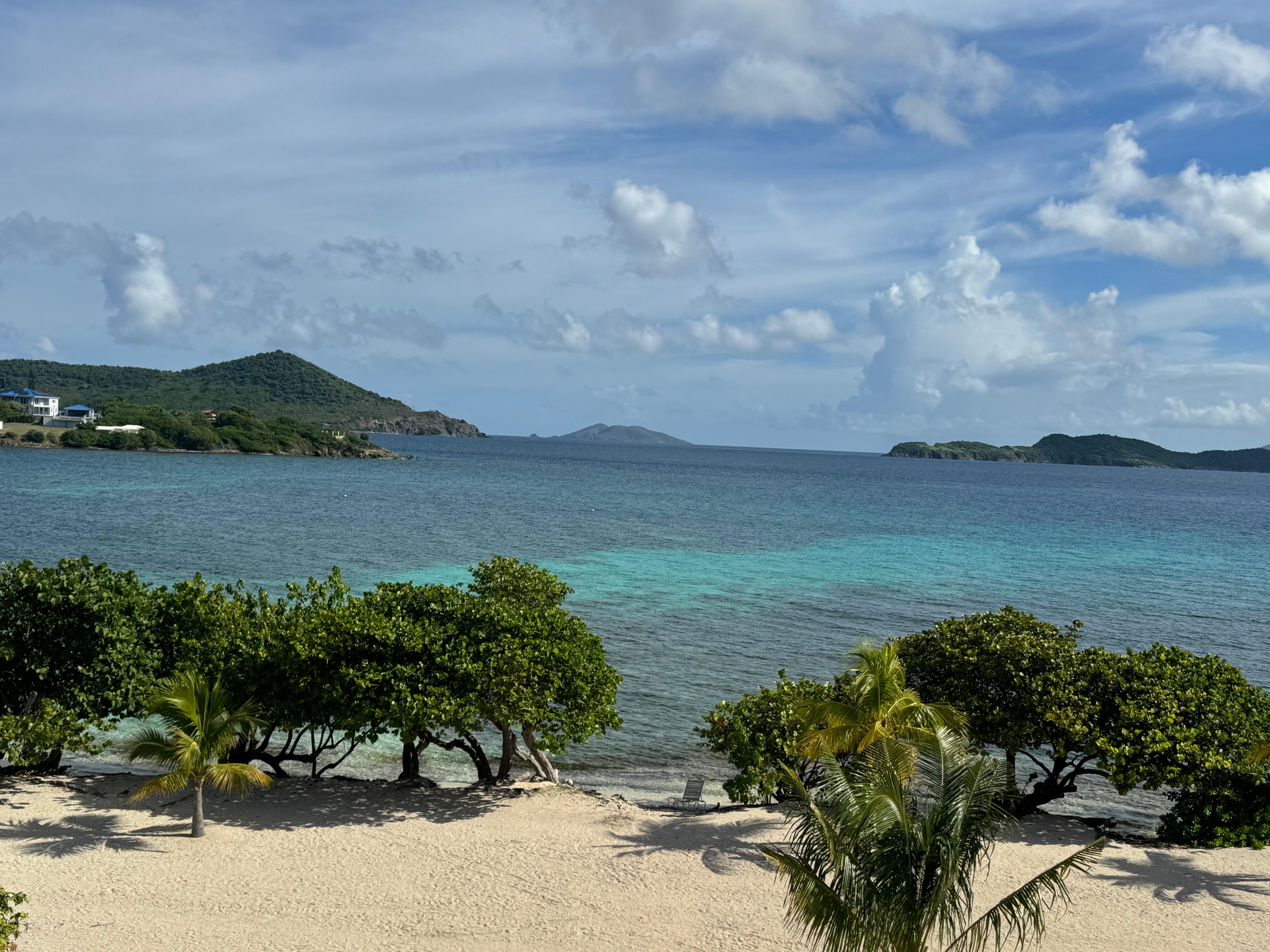 Our villa is situated directly on Sapphire Beach overlooking the crystal clear turquoise waters of the Caribbean Sea. Enjoy panoramic views from both private balconies while overlooking the Caribbean Islands of St. John (USVI) and Tortola, British Virgin Islands (BVI) on the horizon.
