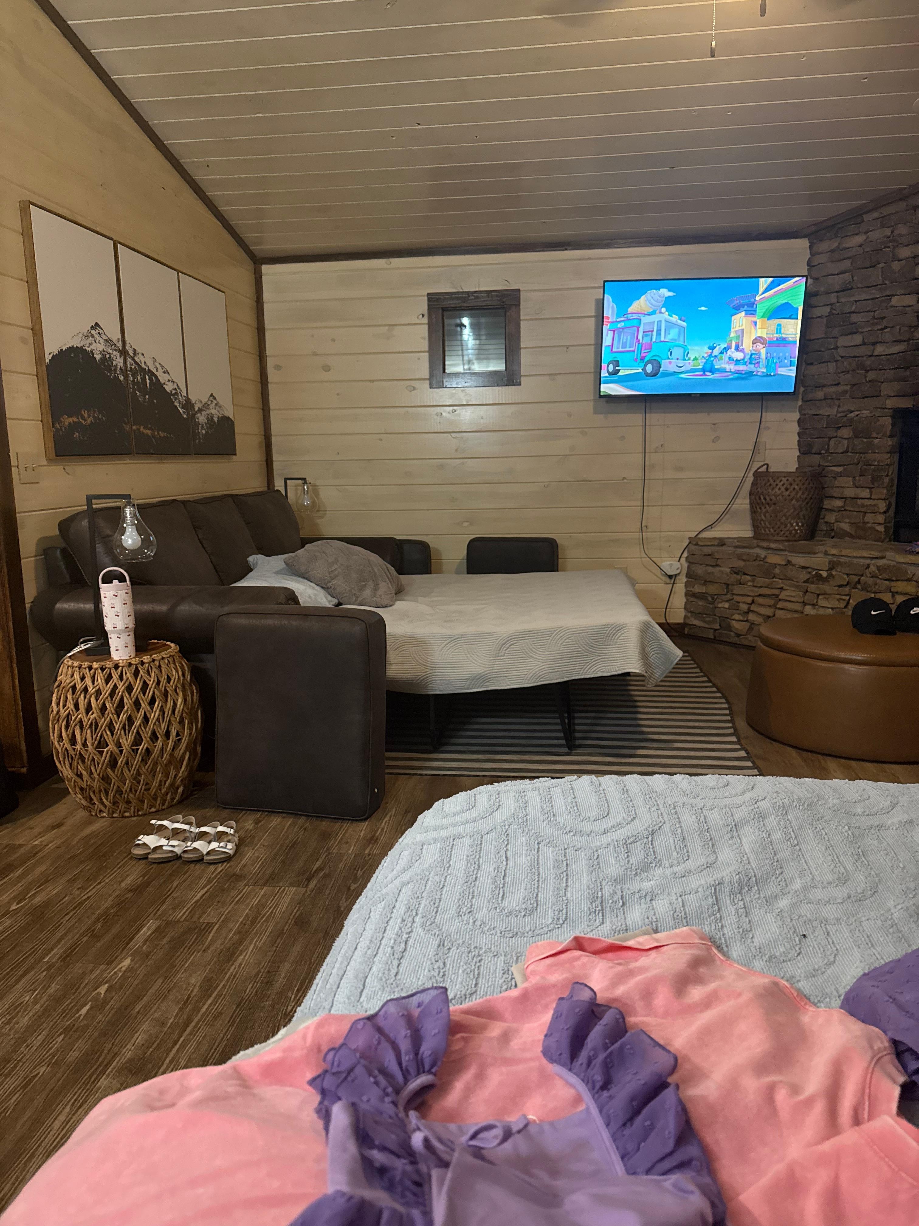 🎈 Whether you’re watching sunrise from the hot tub or taking a quick drive to downtown Gatlinburg, this studio cabin offers big views, small-town charm, and all the cozy comforts of home.