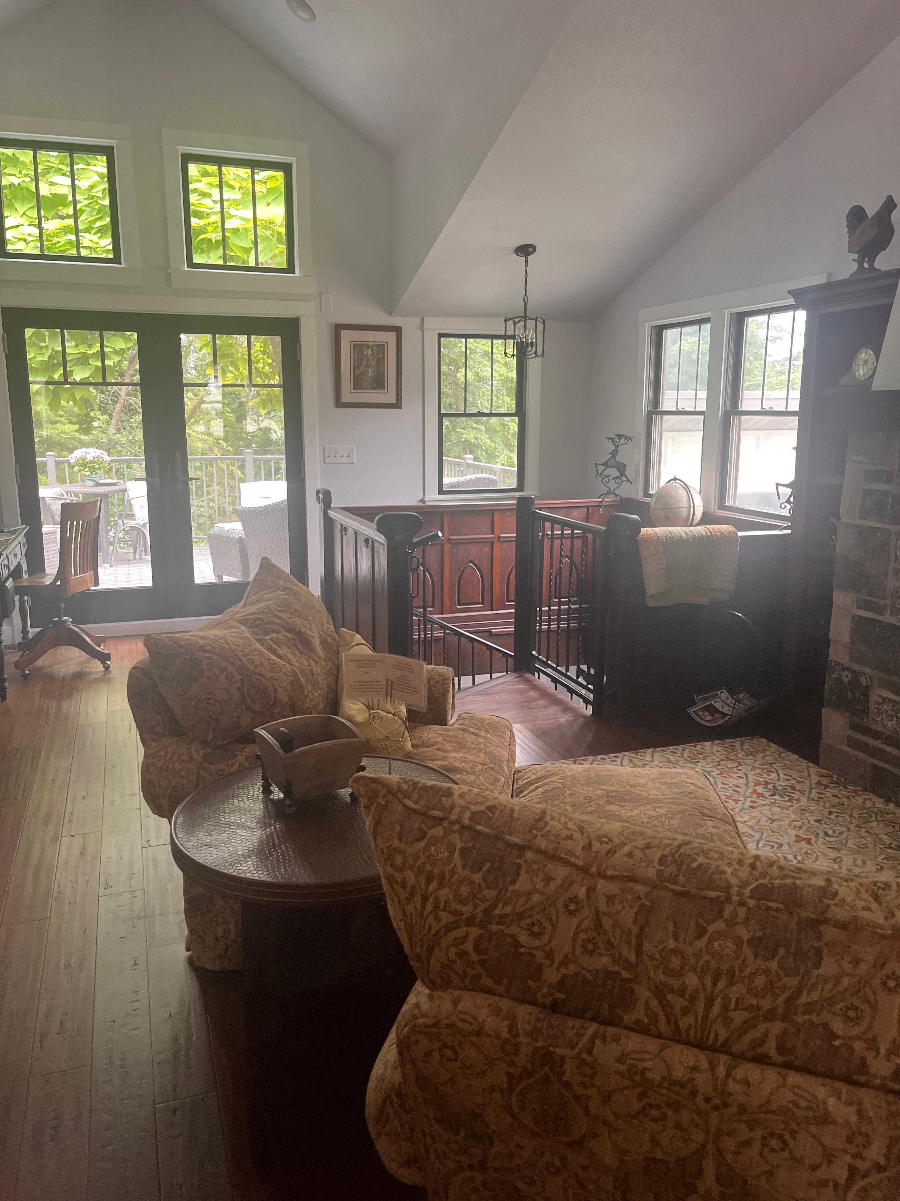 INDOOR LIVING: 2 gas fireplaces, 2 flat-screen TVs w/ Roku devices, dining table, privacy curtains for living room sleeper sofa, open layout upper & lower living rooms, full walkout lower level, clawfoot tub, walk-in shower