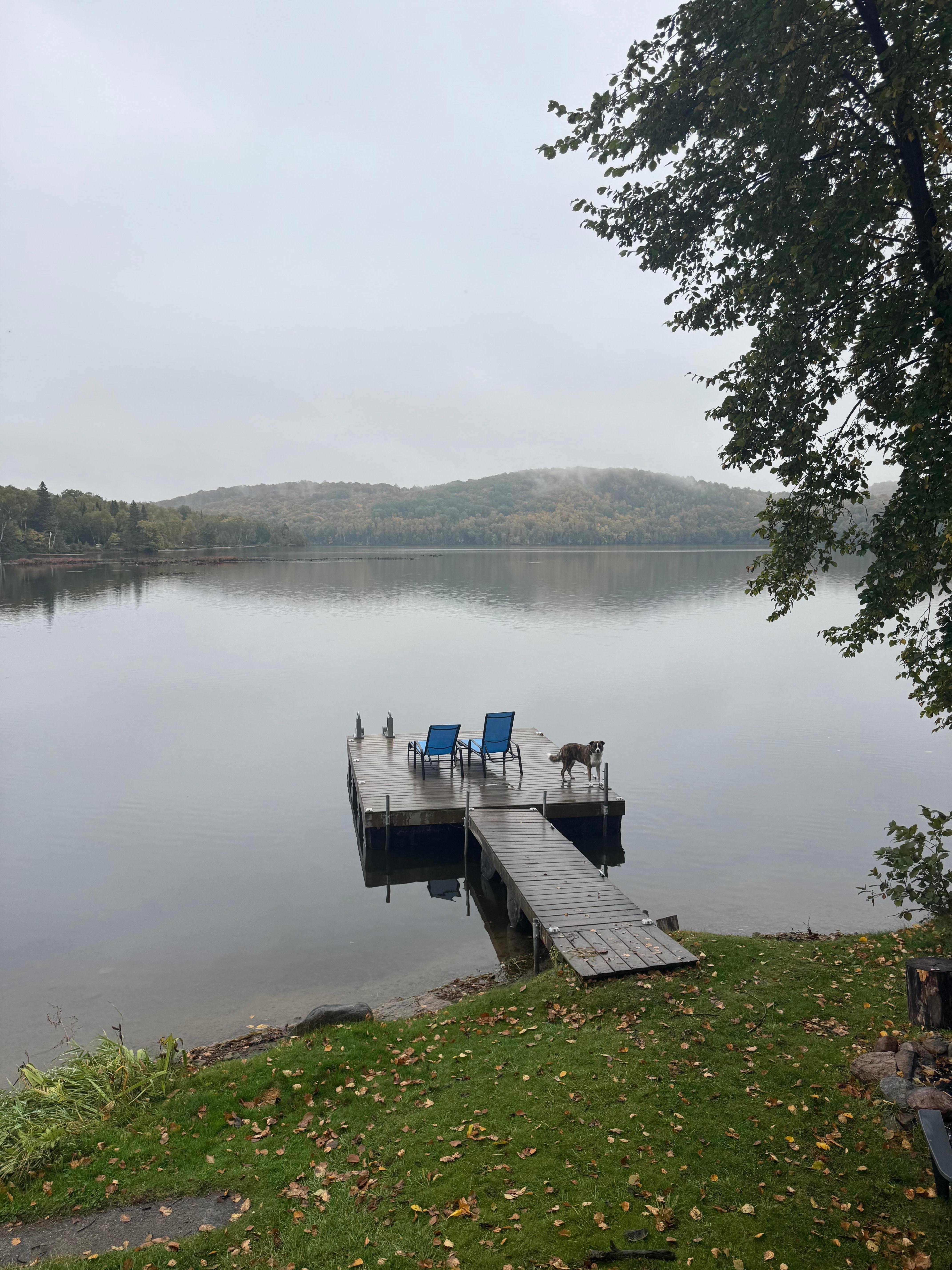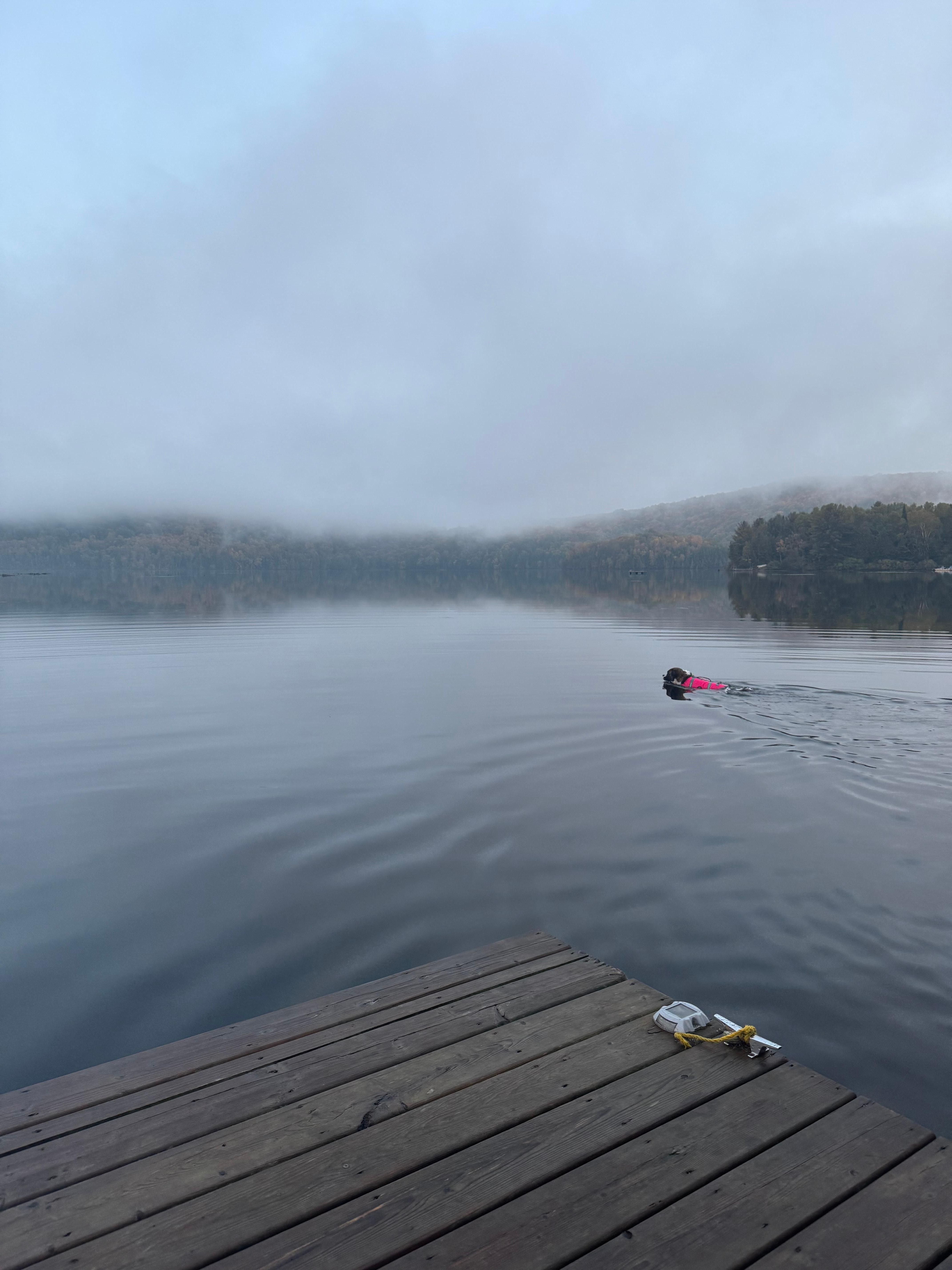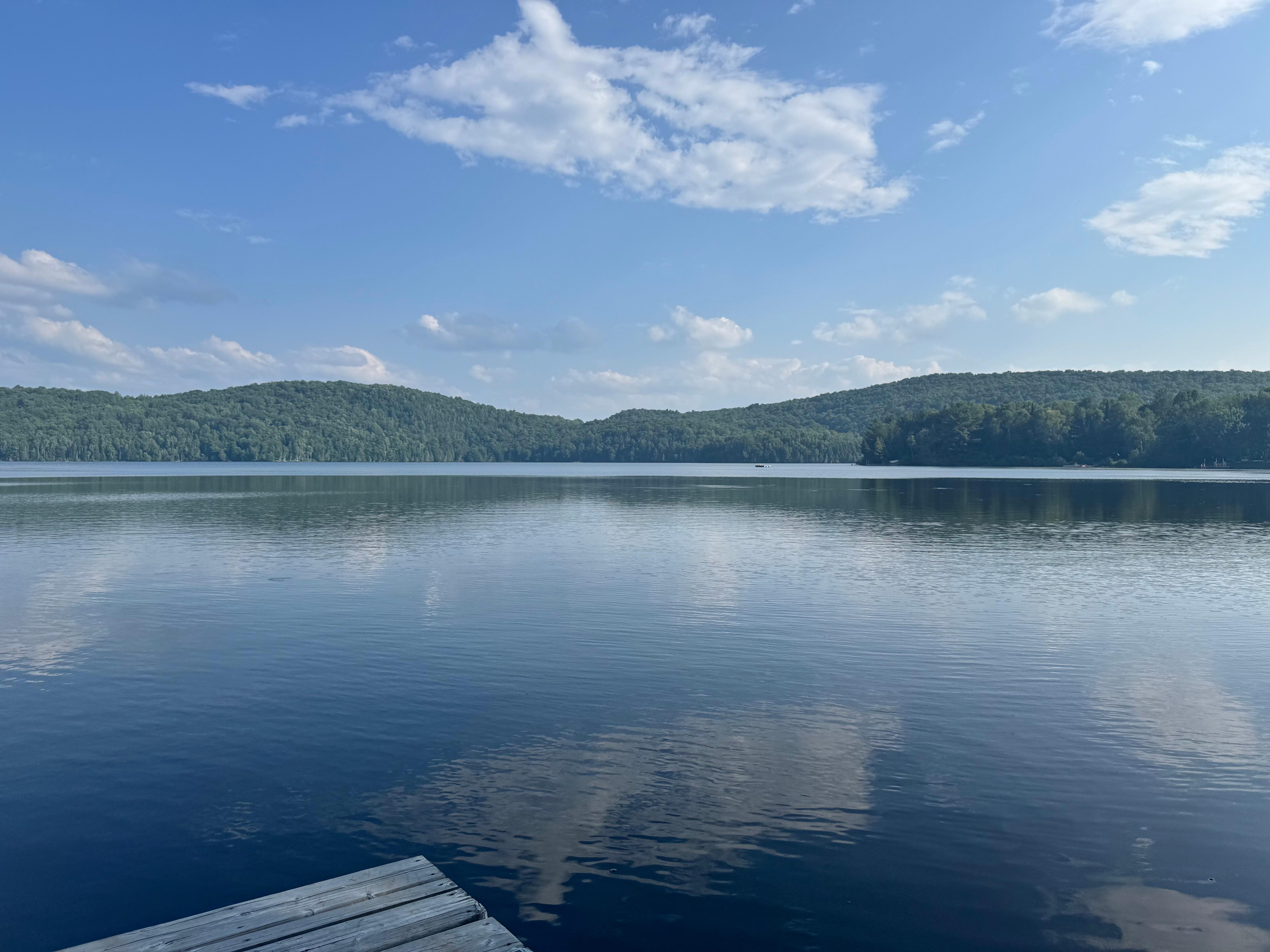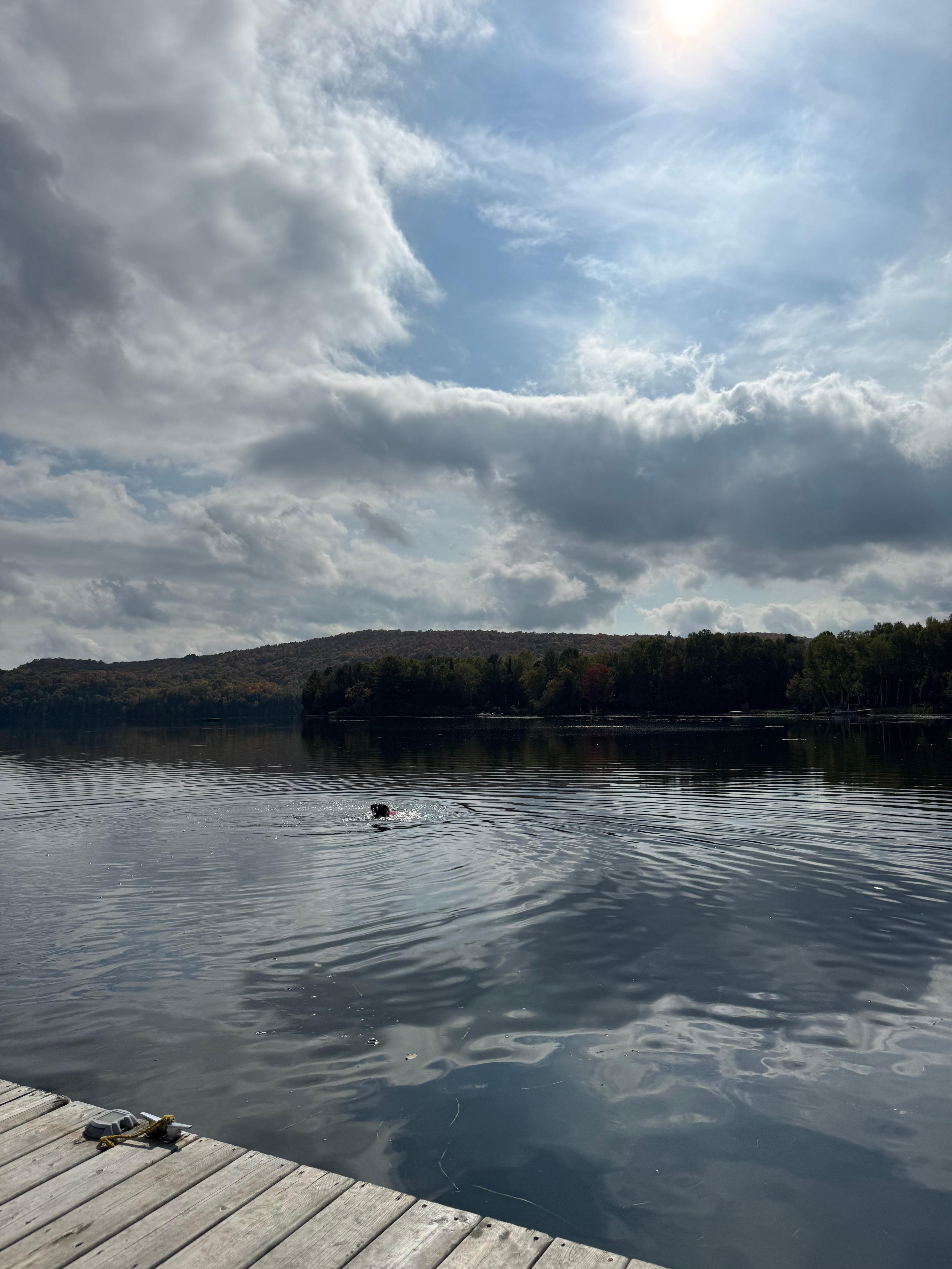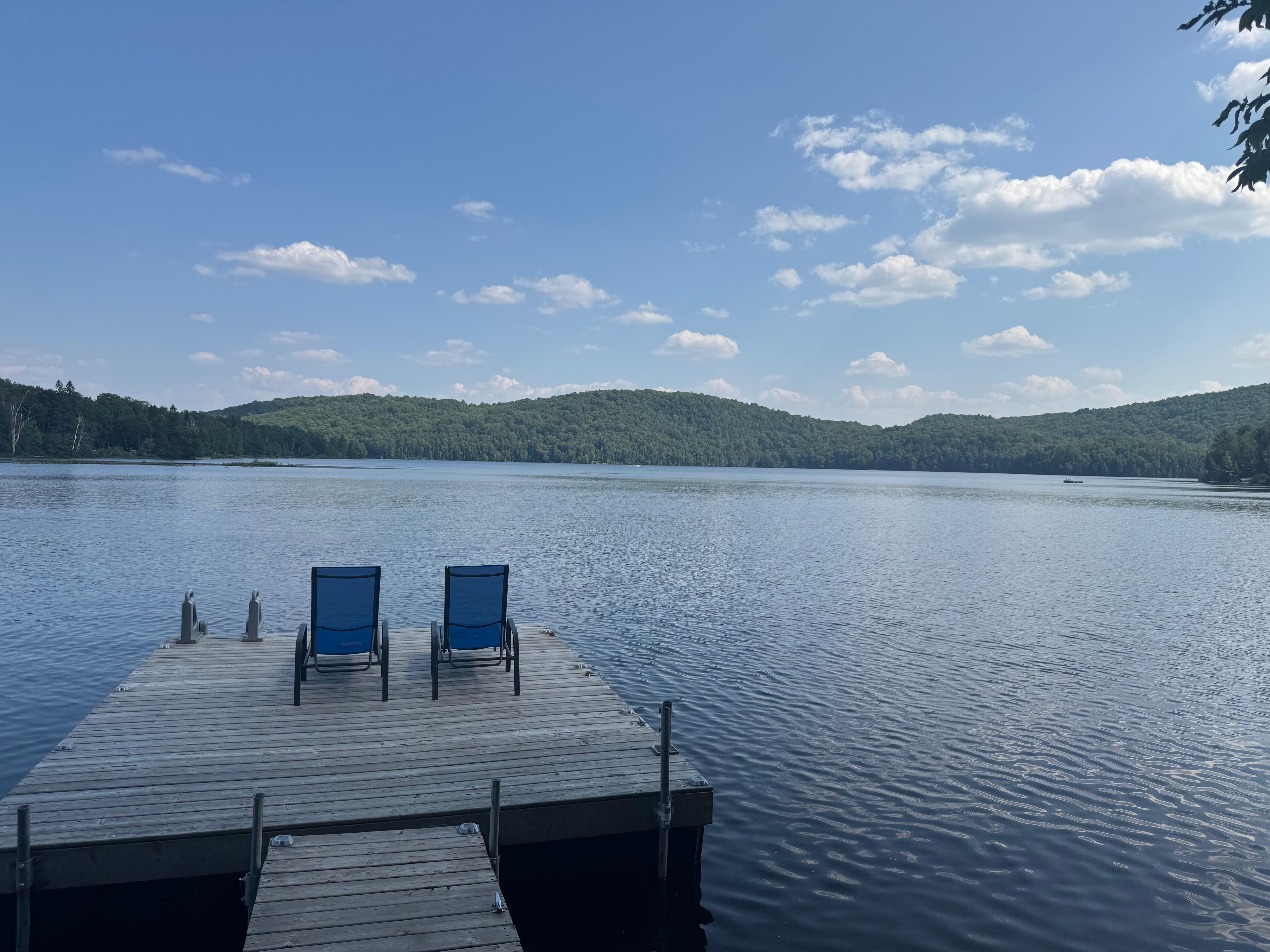 The lake is pristine and full of wildlife but it is shallow (5-6 deep) so please be cautious jumping off the dock. Cannon-balls and shallow dives seem to be just fine. There is a clearing around the dock for weed free swimming.