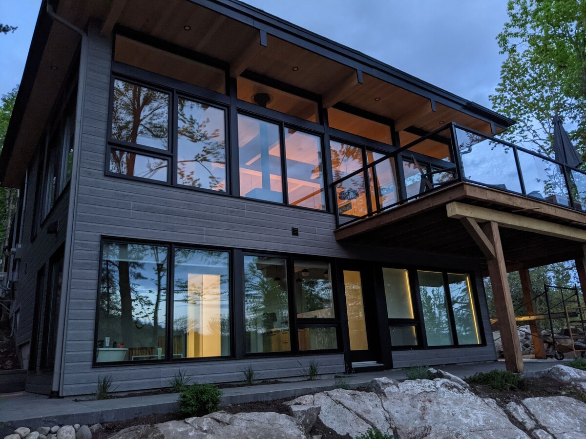 Welcome to Le Riverain, our waterfront cottage nestled in a quiet area of Wakefield on a 2 acre property. The two level 1,800sf cottage has been carefully designed to integrate with nature with large floor-to-ceiling windows throughout. Come relax and recharge in nature. Plenty of activities to do: swim from the dock, canoe/kayak, fish, hike, bike, golf, explore the Gatineau Park, Nordik Spa, etc. Level 2 EV charger on site.