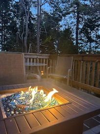The space has flexibility for whatever you desire most in terms of experience. Feel like outdoor living? Then open the glass doors completely & immerse yourself in nature. Feel like doing a Zoom call for work? Then close the glass doors, let everyone else play on the deck open your laptop, and focus on work for an hour. The cathedral ceilings and large windows create lots of light and space. The ceiling fan keeps the air going for a comfortable time inside. The kitchenette with an induction cooktop is a great way to cook your own meal without heating up the entire space. Or, you can do traditional BBQ on the grill and enjoy the solitude of the trees.