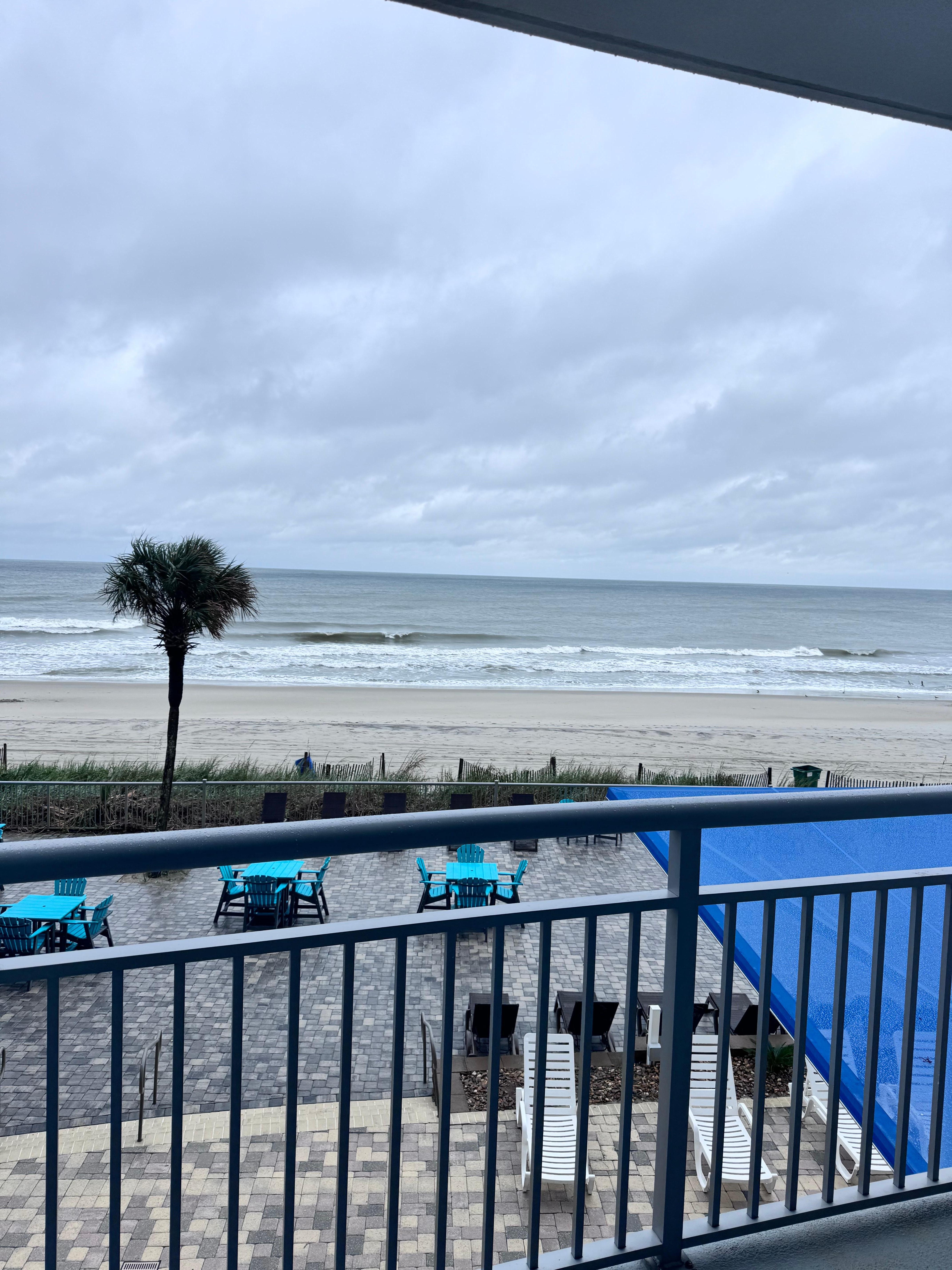 This beautiful 2 bedroom, 2 bath condo is a spacious 1038 sq ft directly on the oceanfront on 2nd floor of the resort. Enjoy beautiful East Coast Sunrises or watch the dolphin play from your large oceanfront balcony while having your morning coffee. The condo will sleep up to 6 people with a king in the large master suite with balcony access, and another king in the second bedroom and a queen sleeper in the living room. Each bedroom is equipped luxury linens, lots of closet space and flat panel tvs. The master bath has a large jetted tub/shower combination, 2nd bath has a tub/shower combination. Plenty of space for everyone to clean up when coming in from a full day at the beach. The large kitchen is fully equipped with beautiful granite countertops, stainless appliances and has everything you would need for those days when you want to just stay at the resort and dine in. You will also have your own private washer/dryer in the condo so that you can keep those beach towels and swimsuits dry and ready for use.