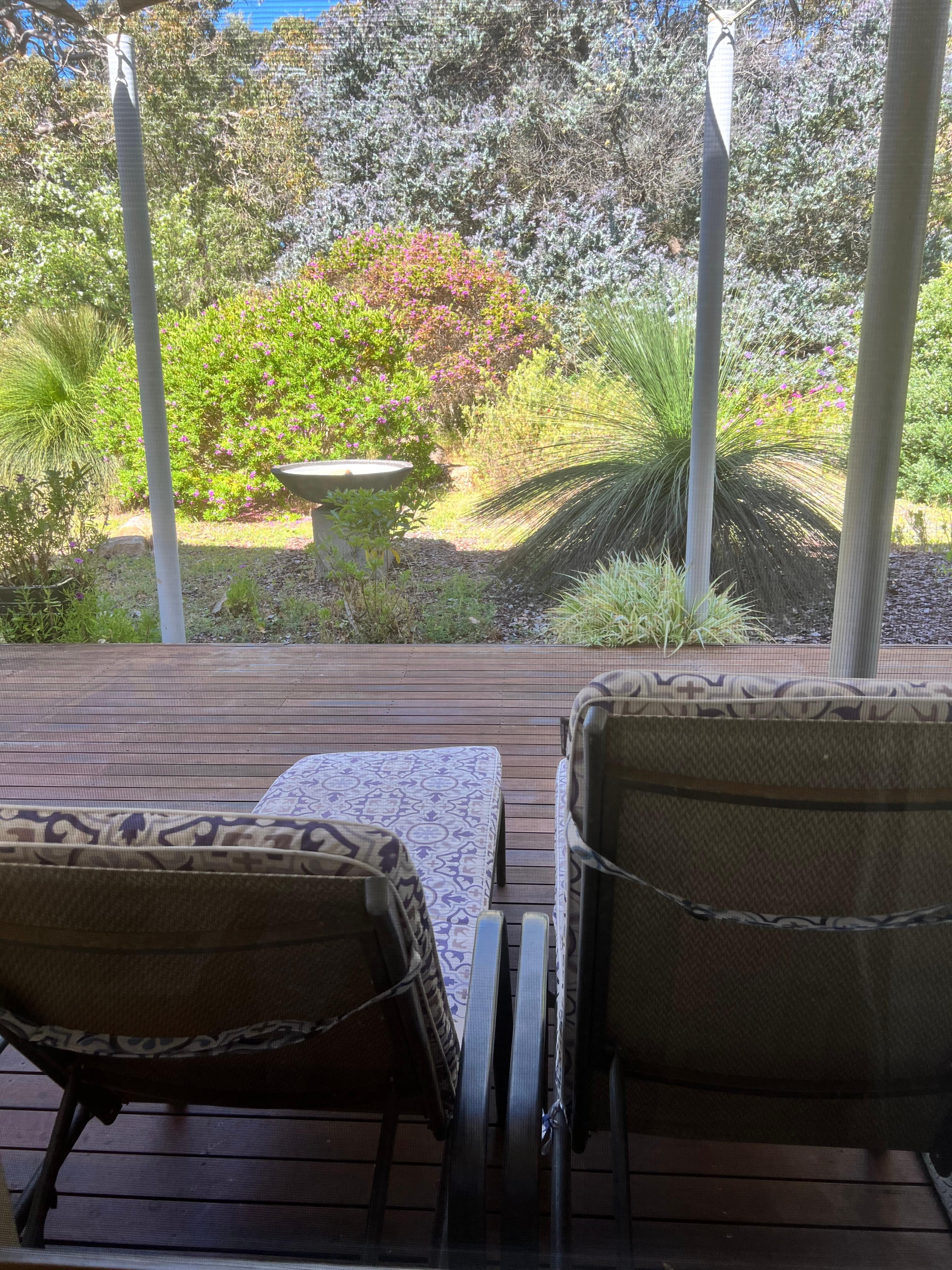 The gardens extend from beyond your deck, away from the house, and you are free to wander the splendid property in this direction (for the owners' privacy, we ask that guests explore only the gardens to the right of the property - there's plenty to enjoy!). The garden is a regular grazing spot for two kangaroos, who have practically become part of the family, and are affectionately named "Daisy" and "Joey" by the owners of this idyllic home.