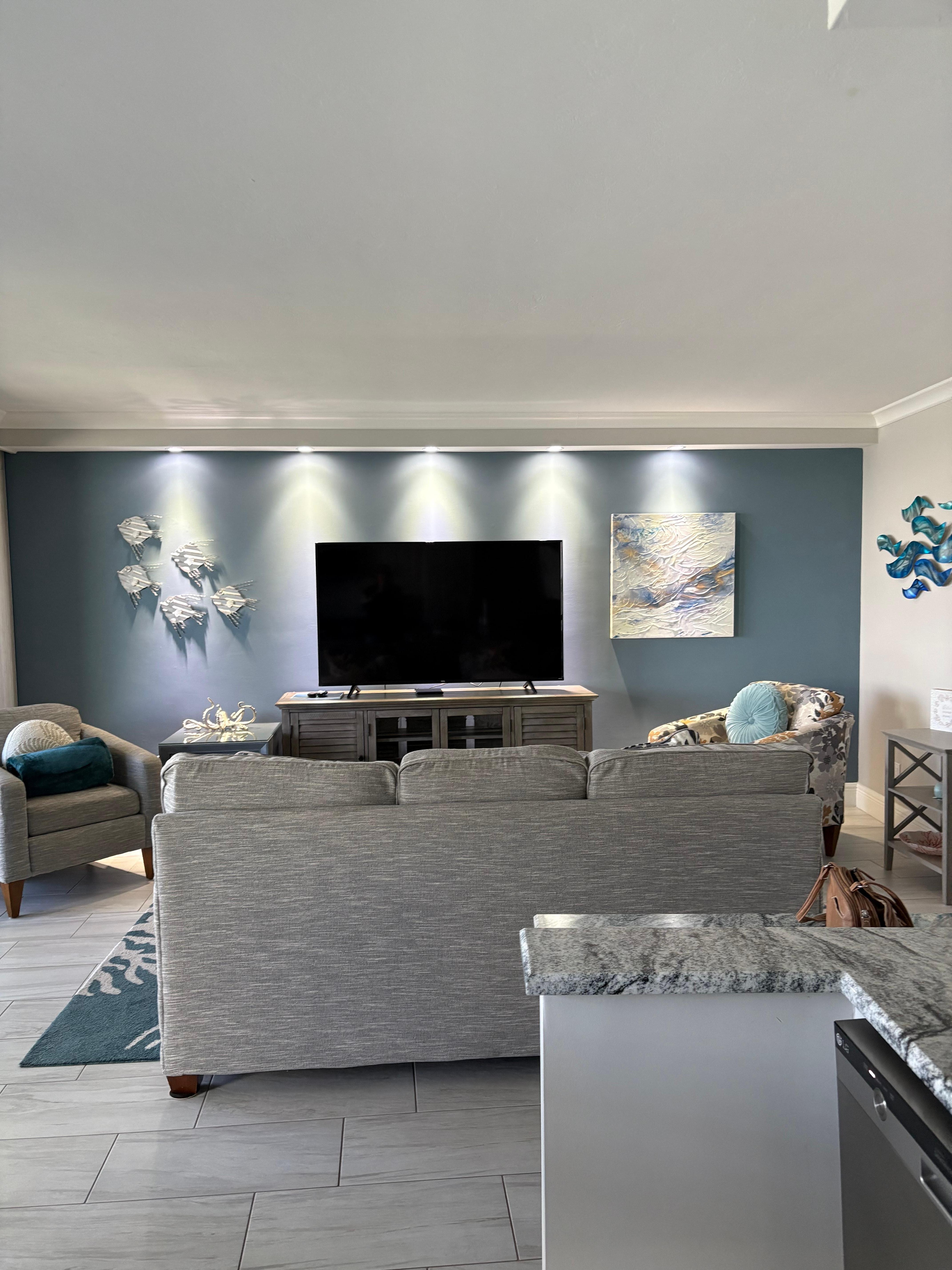 INDOOR LIVING: Smart TVs, cable, dining table, stroller, playpen