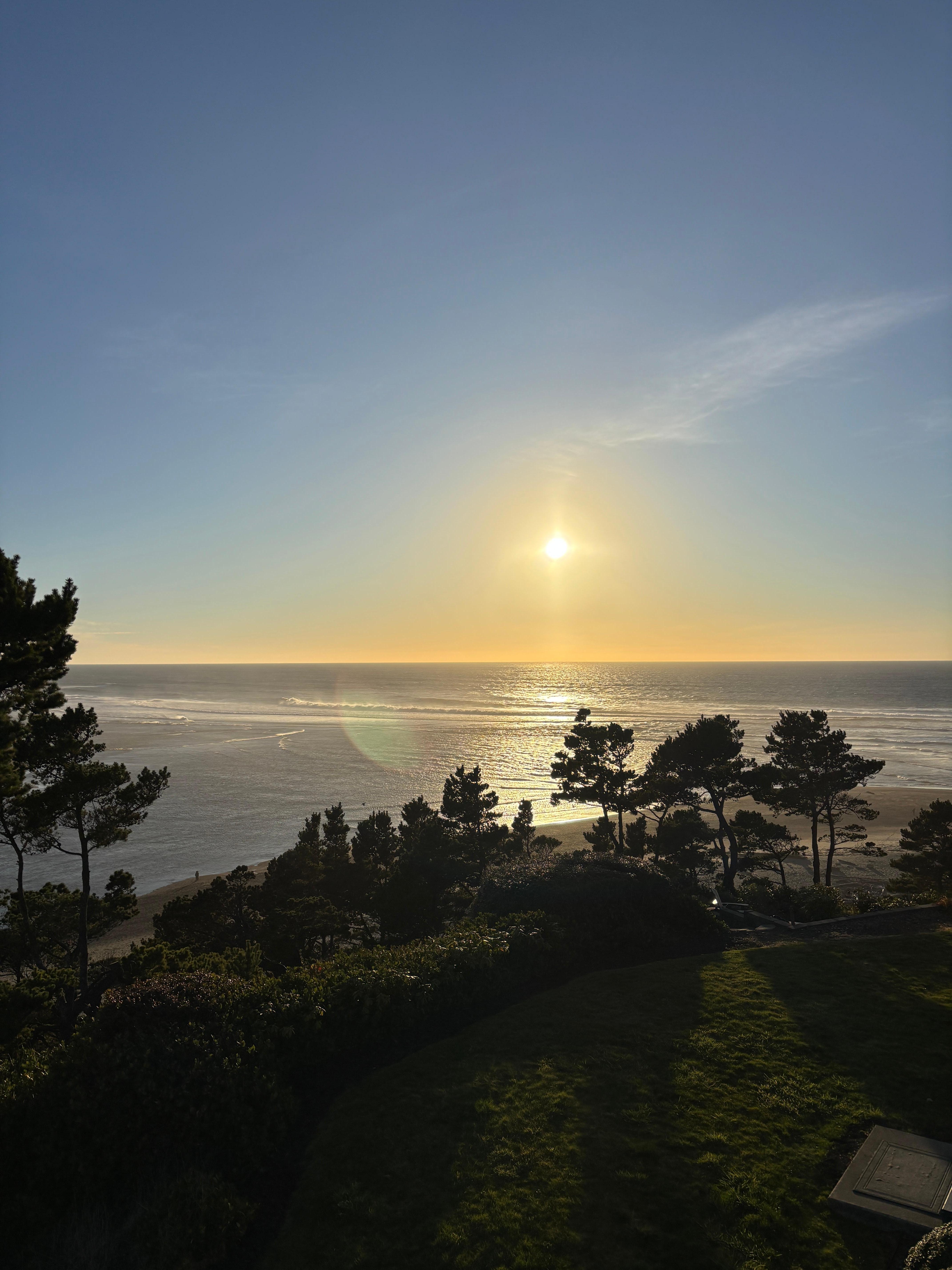 This outstanding home would be a stunner even if it weren’t perched on a promontory with panoramic views of Siletz Bay, the Salishan Spit, and the Pacific at the southwestern tip of the Taft district. But those two things together make it an extraordinary place to spend coastal time. Its luxury appointments, spacious, open rooms, four ensuite bedrooms, and stellar views from nearly every room will impress your guests and lend a relaxing aura to your stay. Our two sky-high decks, span the southern side of the home, inviting you to soak up the sun as you gaze through the tops of rugged shore-pines to bay, beach, sea, and sky.