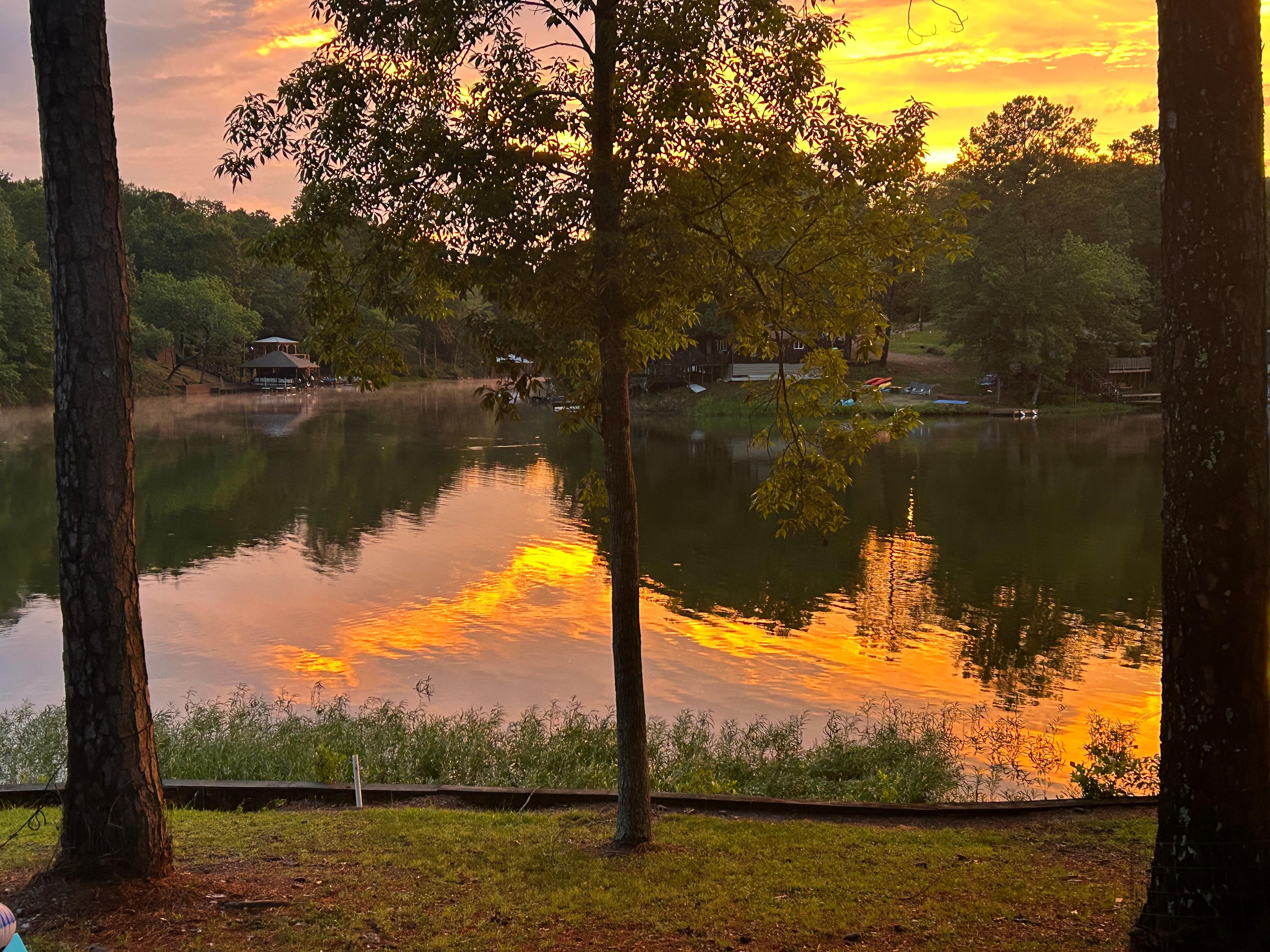 OUTDOOR LIVING: Private boat dock, yard, lake views, beach towels, deck w/ seating, gas grill, gas fire pit, fishing pools