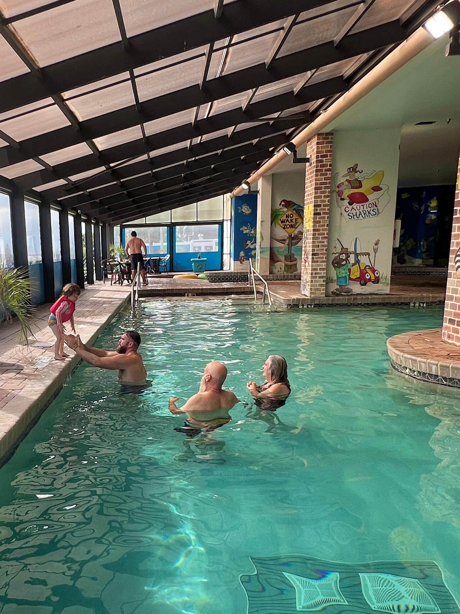 The resort is located in the heart of the Grand Strand in a quiet family oriented section of the beach. Activities on site include the indoor and outdoor pool complex which includes a lazy river, 2 pools, 4 hot tubs and children’s splash pool all overlooking the beach along with a fitness center and tanning lawn. The resort also has a Starbucks and ice cream shop onsite.
